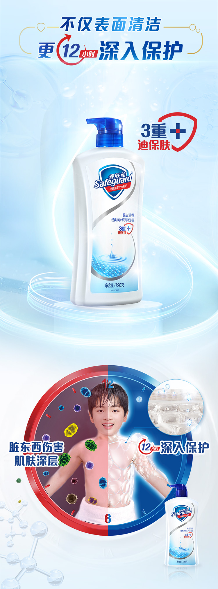 舒肤佳纯白清香沐浴露持久留香纯白清香720g/瓶沐浴乳男女士家庭装