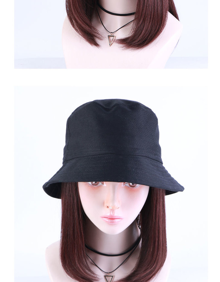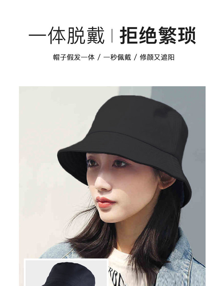 渔夫帽子假发一体女夏天时尚高温丝锁骨长发带帽女士假发全头套