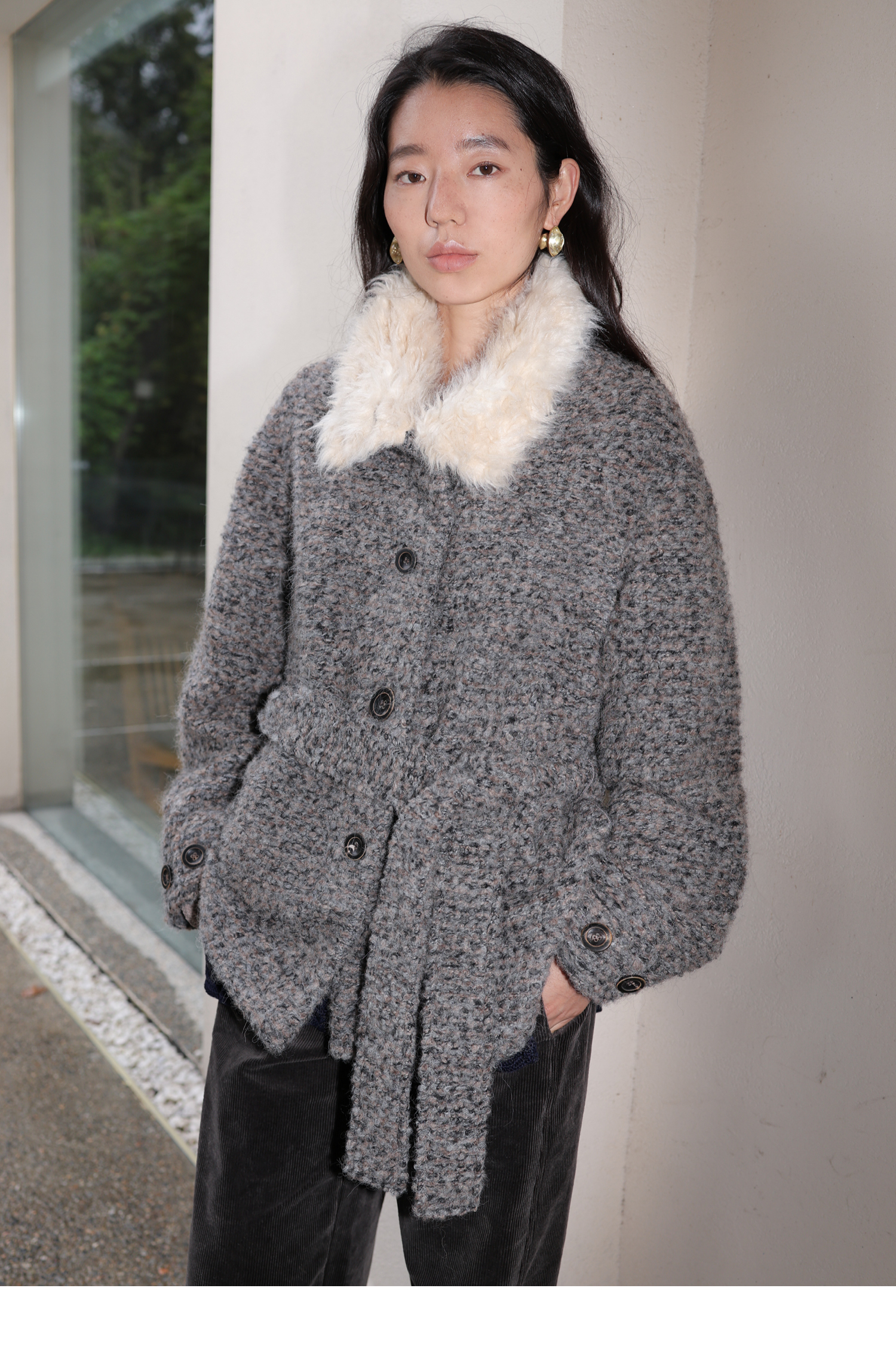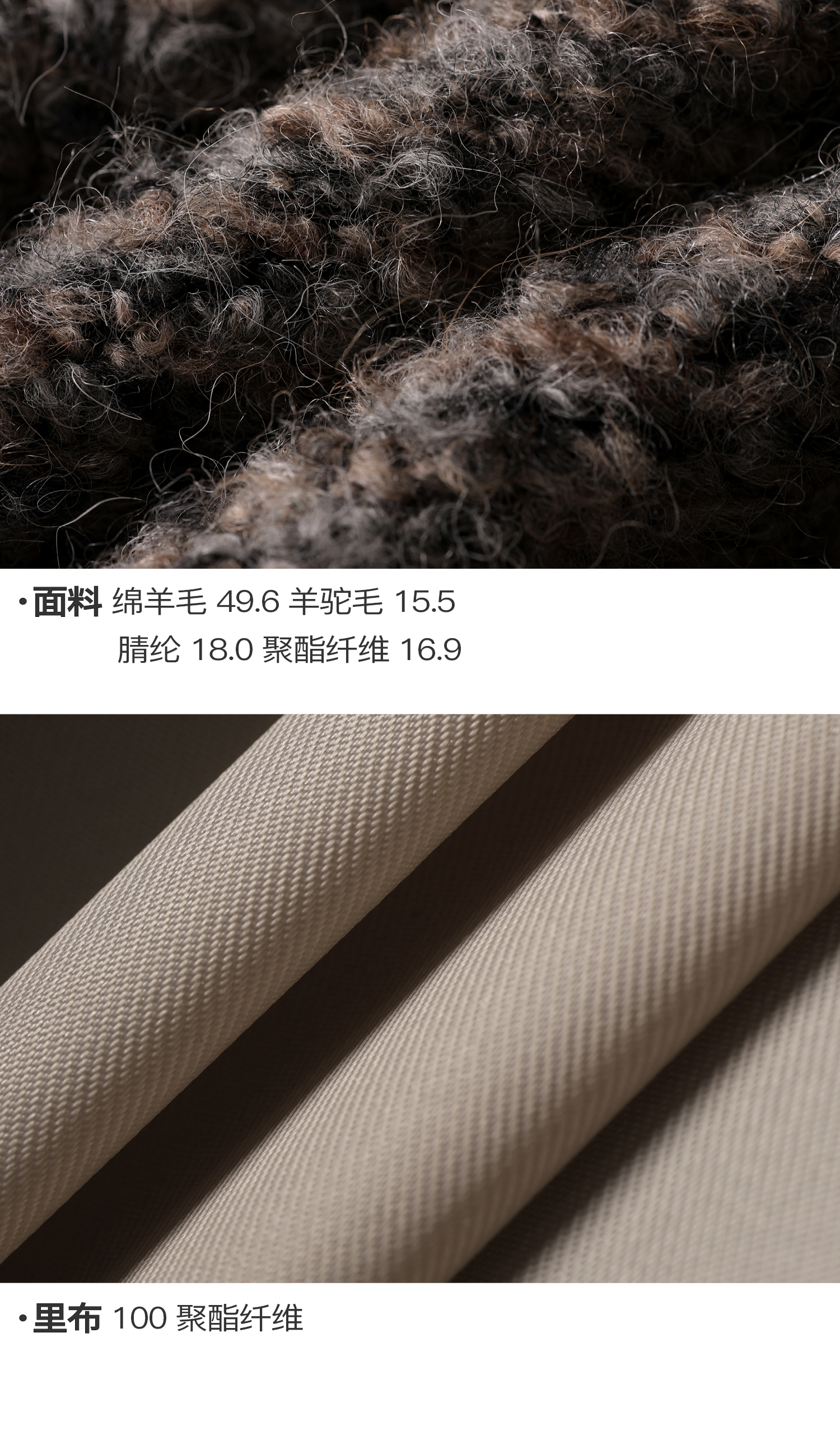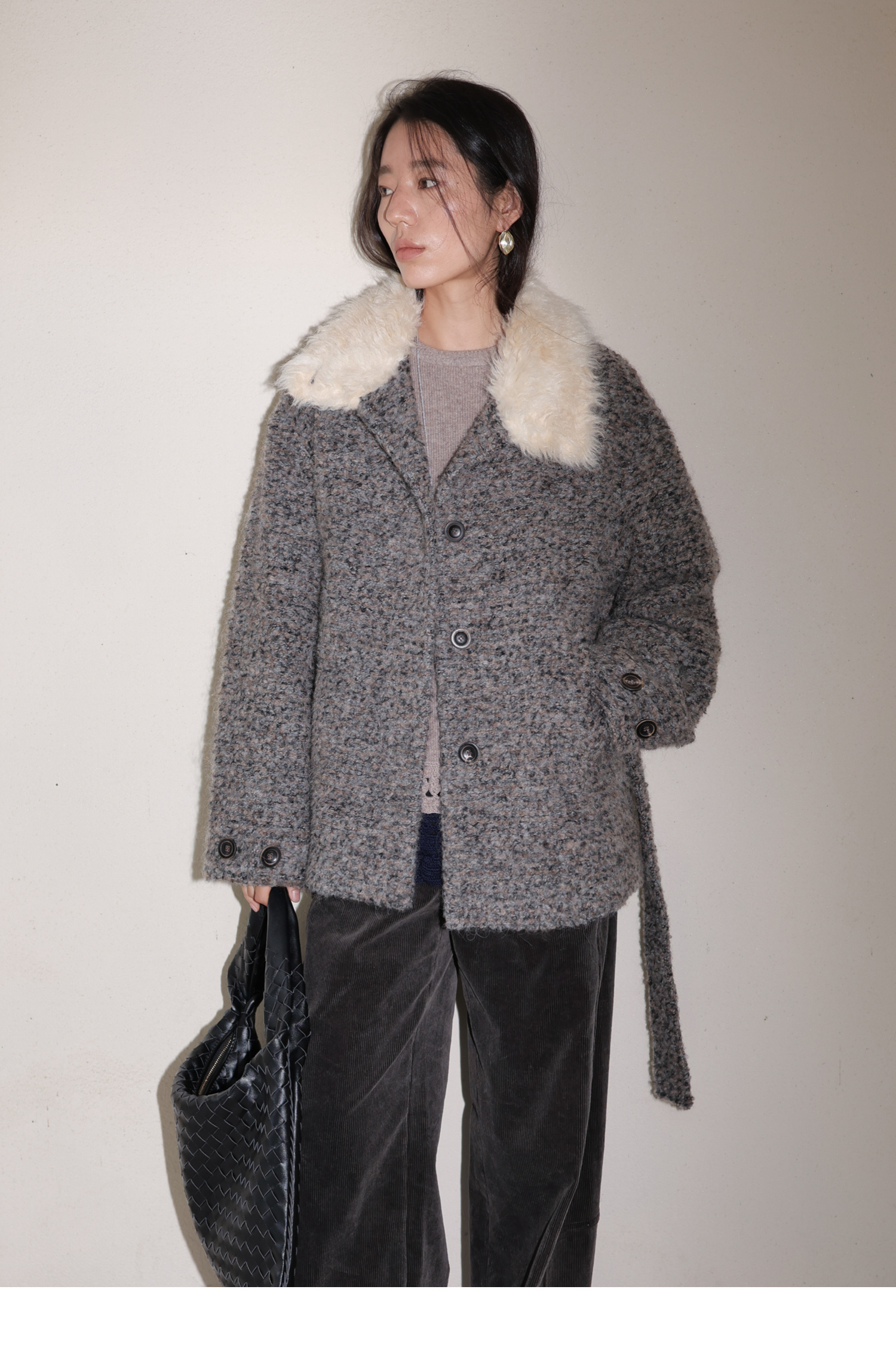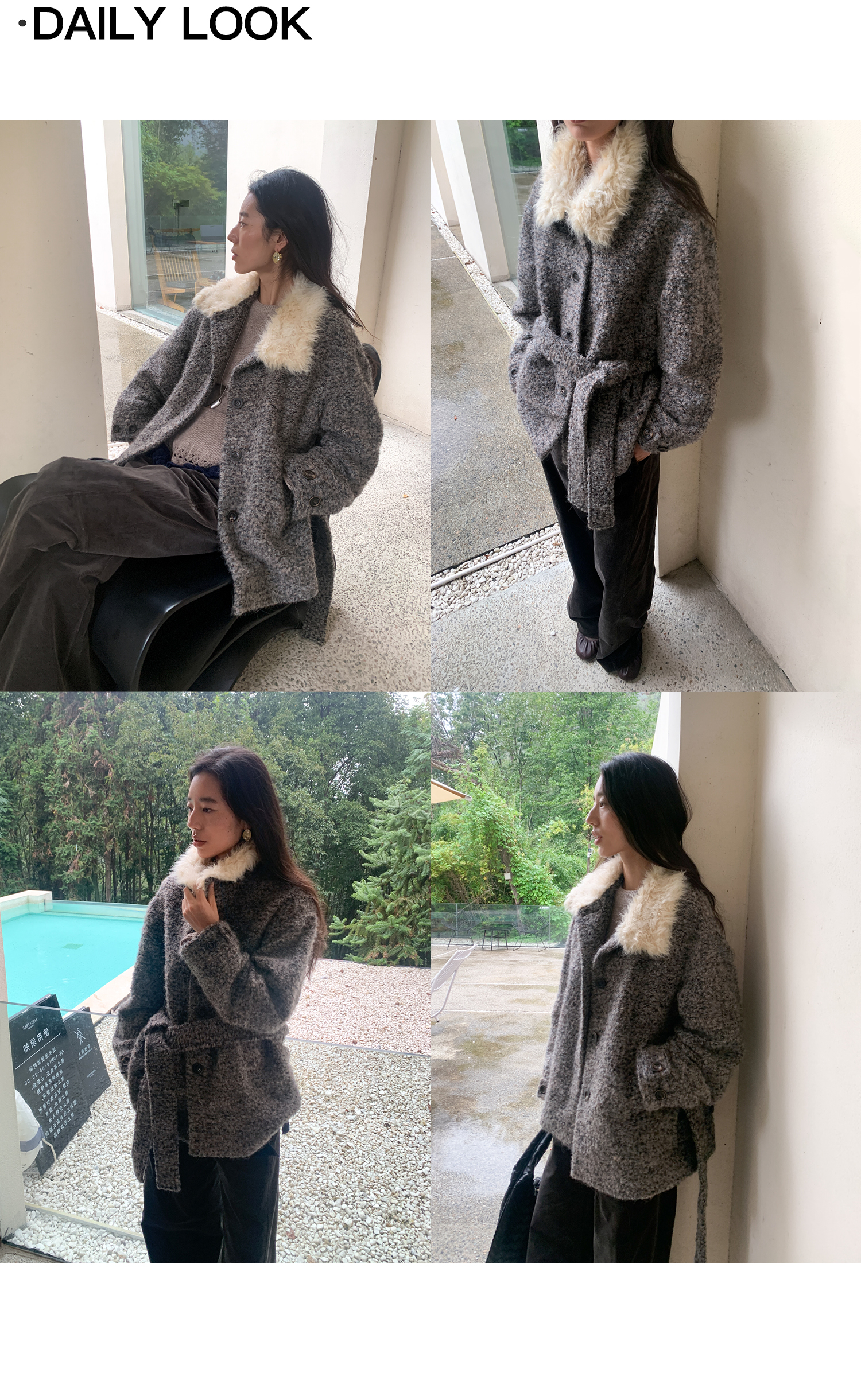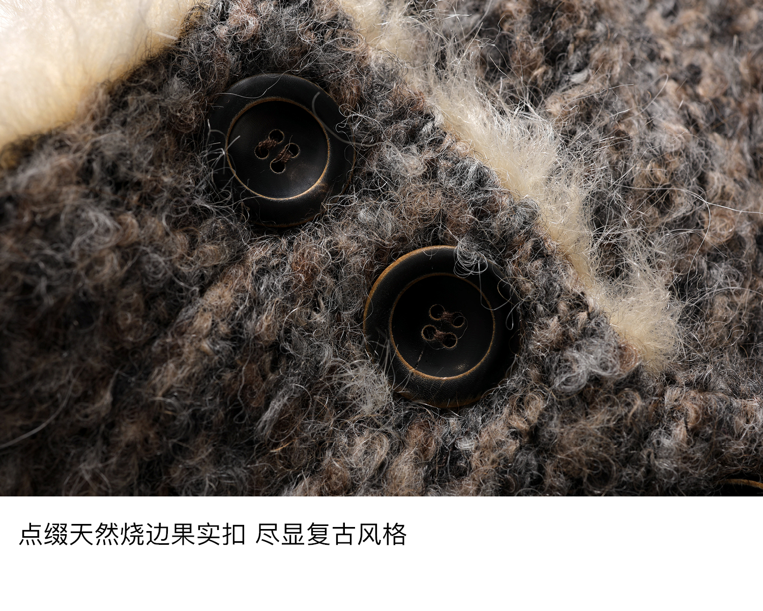 素舶 羊驼毛绵羊毛混纺杂色圈圈毛立领短款系带毛呢外套