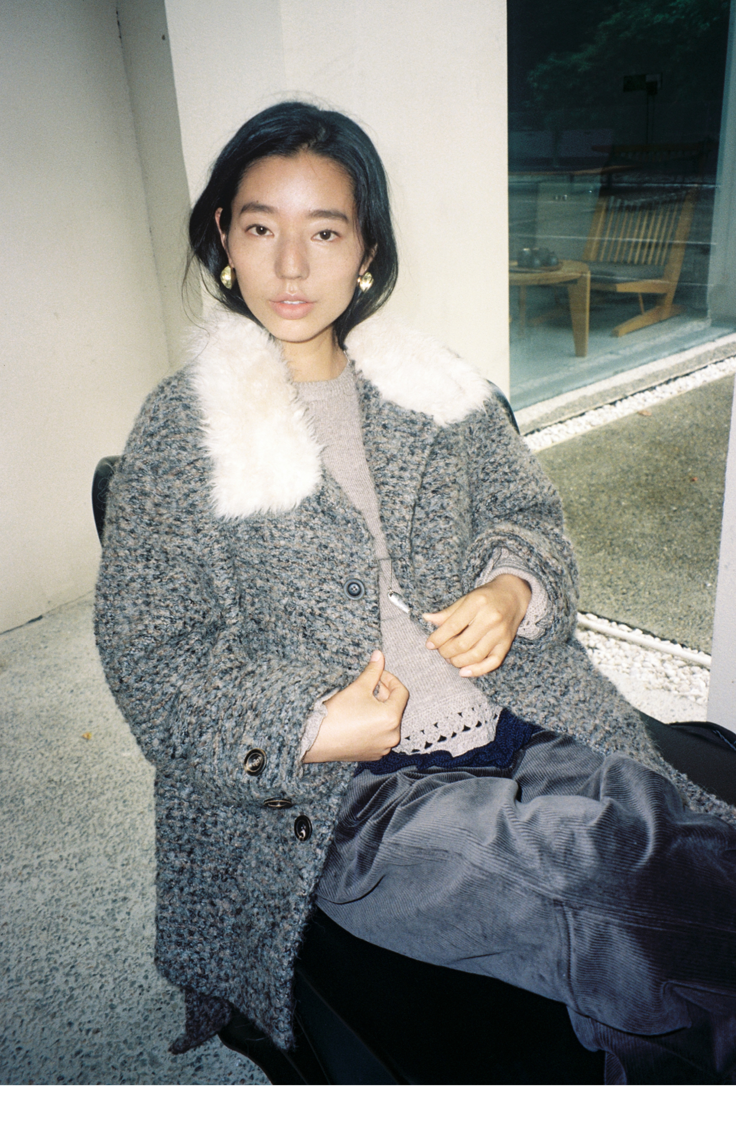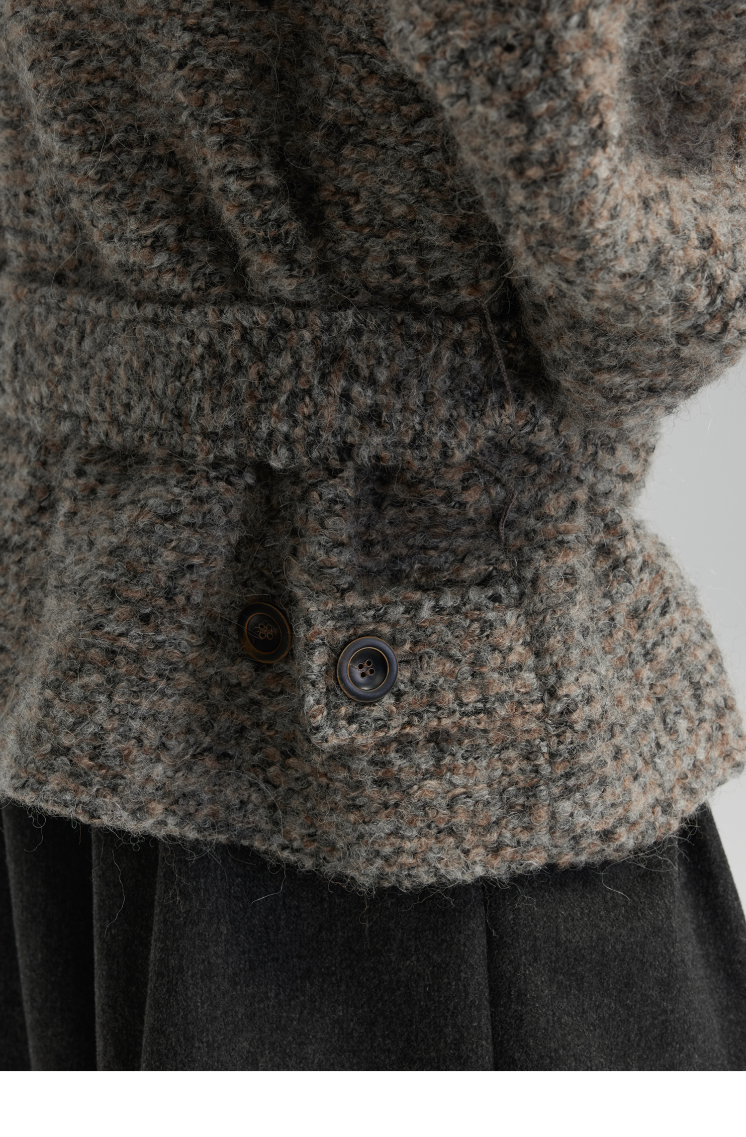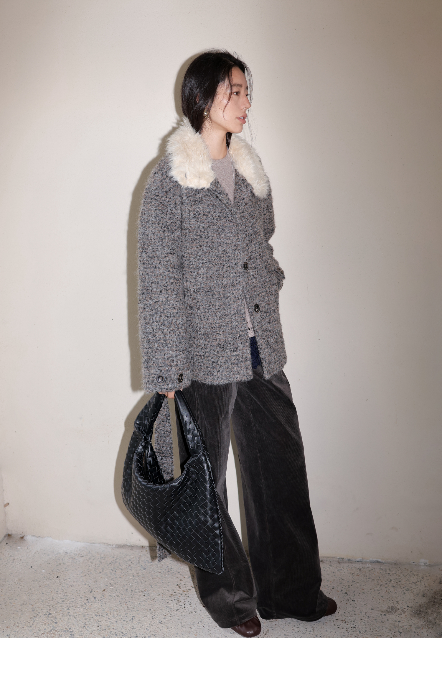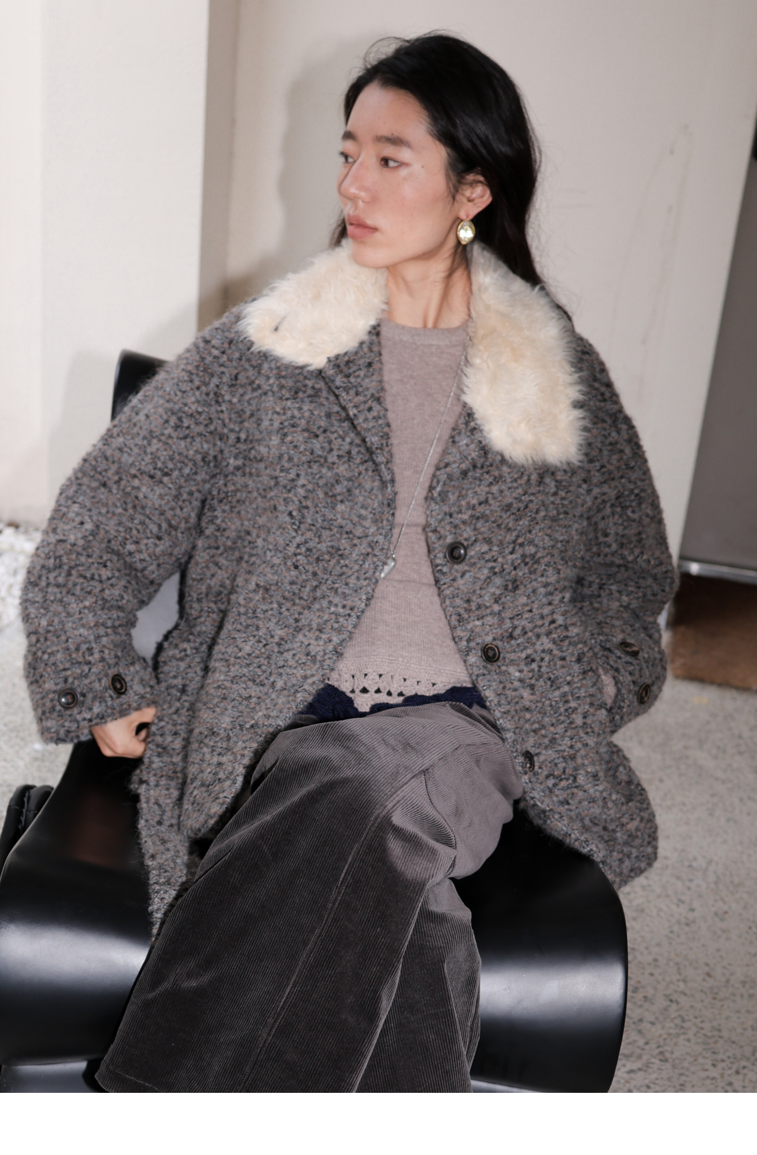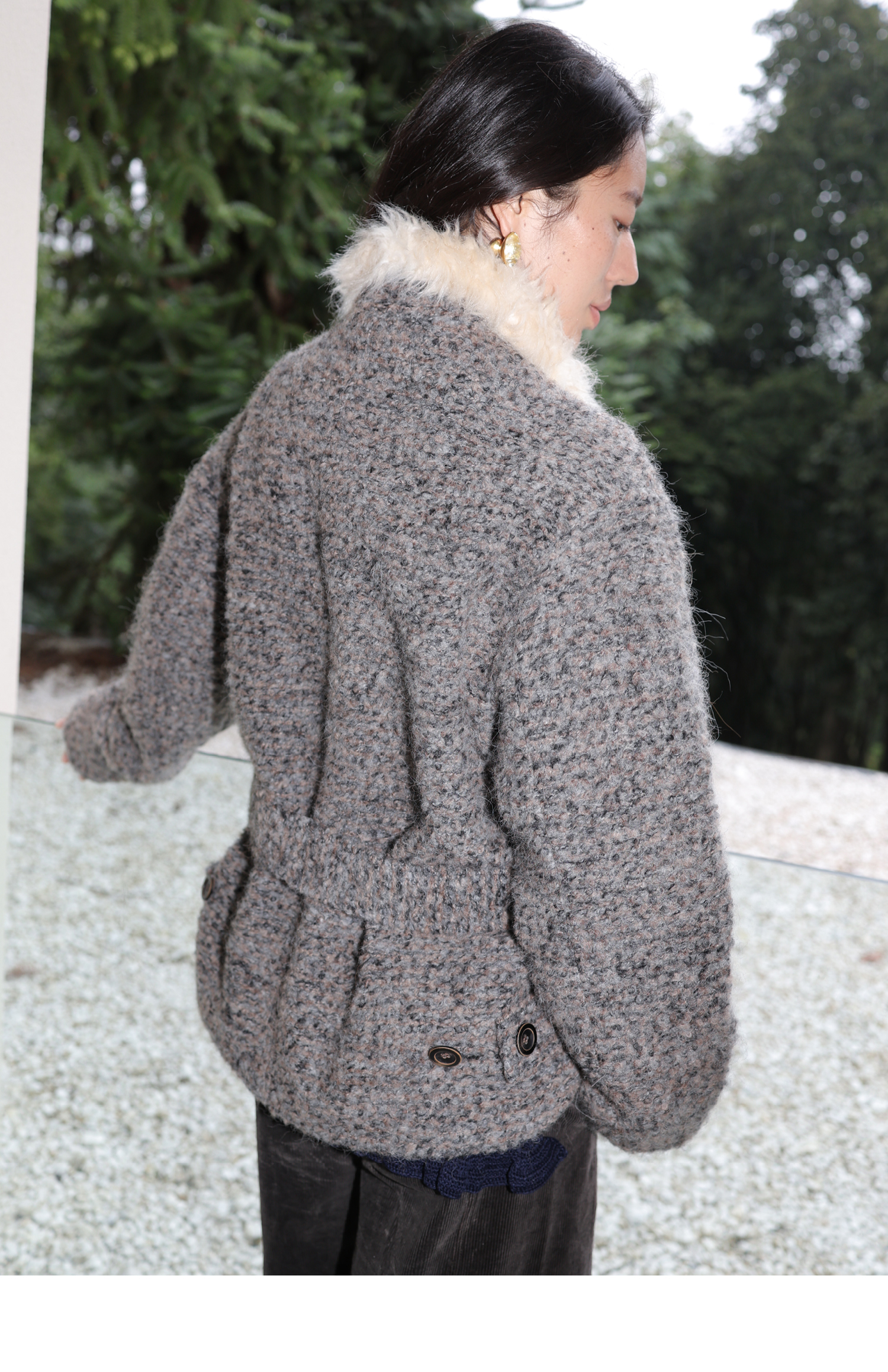 素舶 羊驼毛绵羊毛混纺杂色圈圈毛立领短款系带毛呢外套