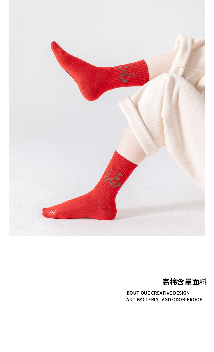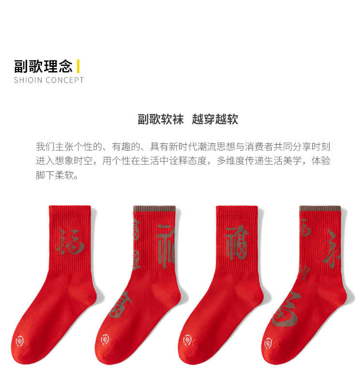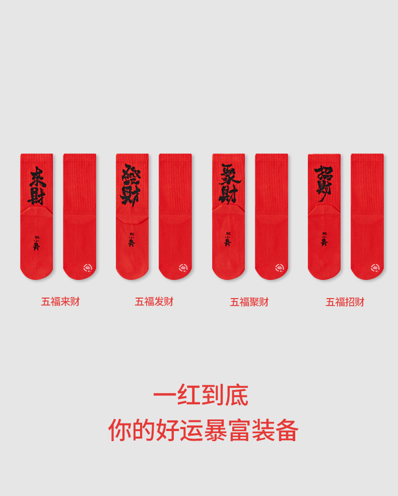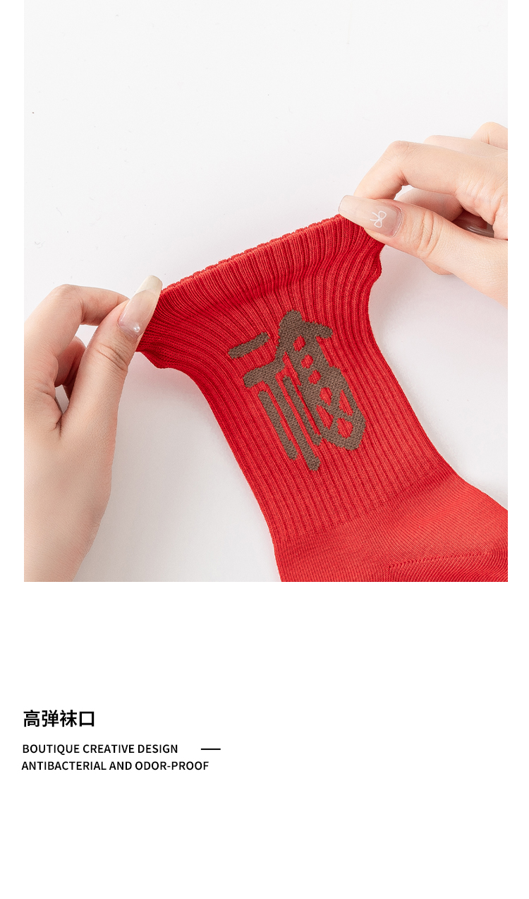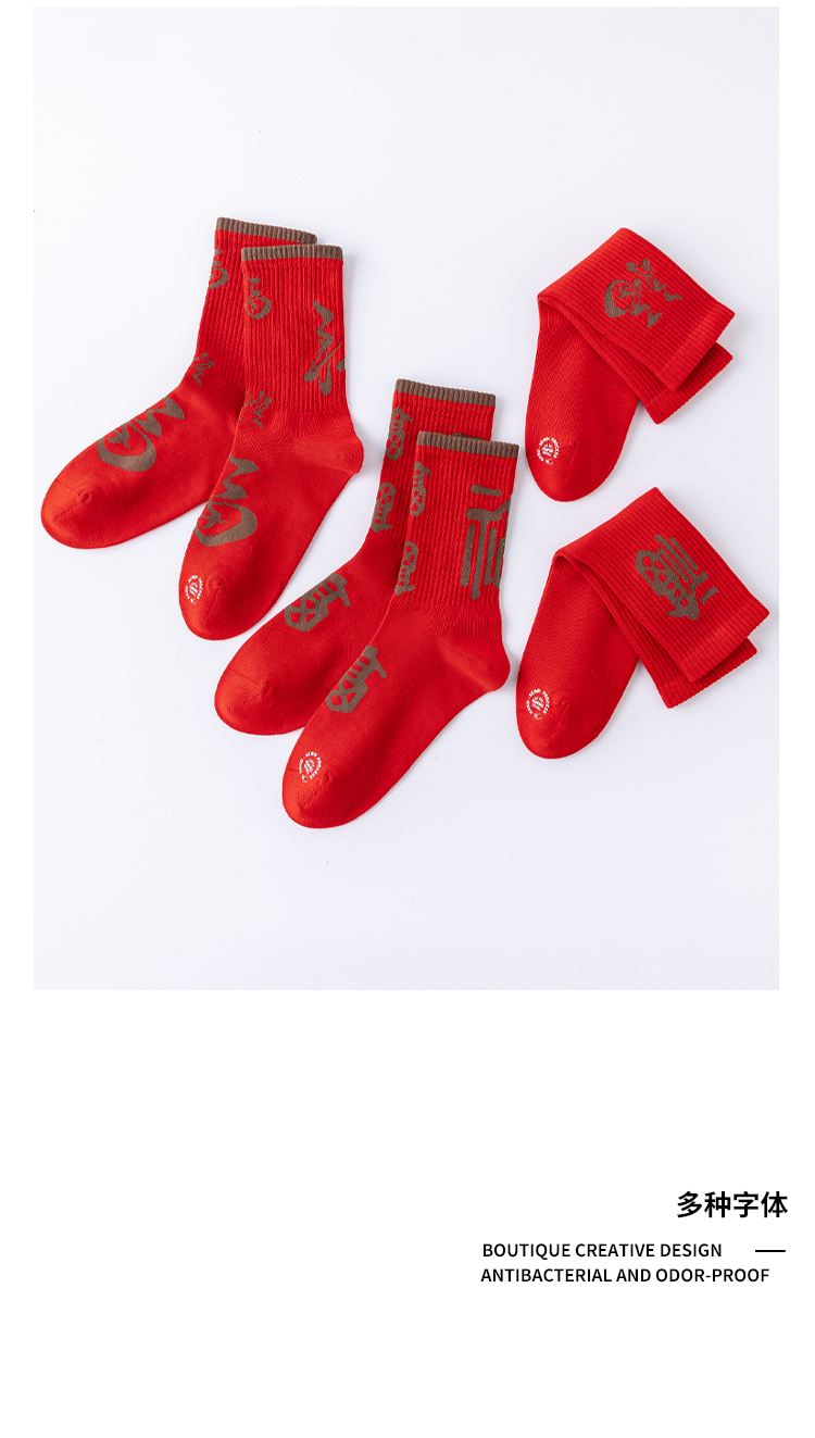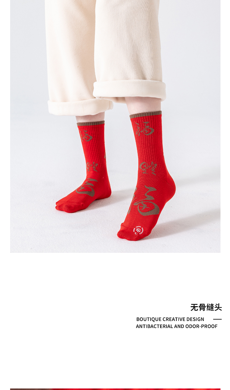 副歌新年鸿运走红袜五福全财系列高棉7A抑菌 男袜女袜4双礼盒装