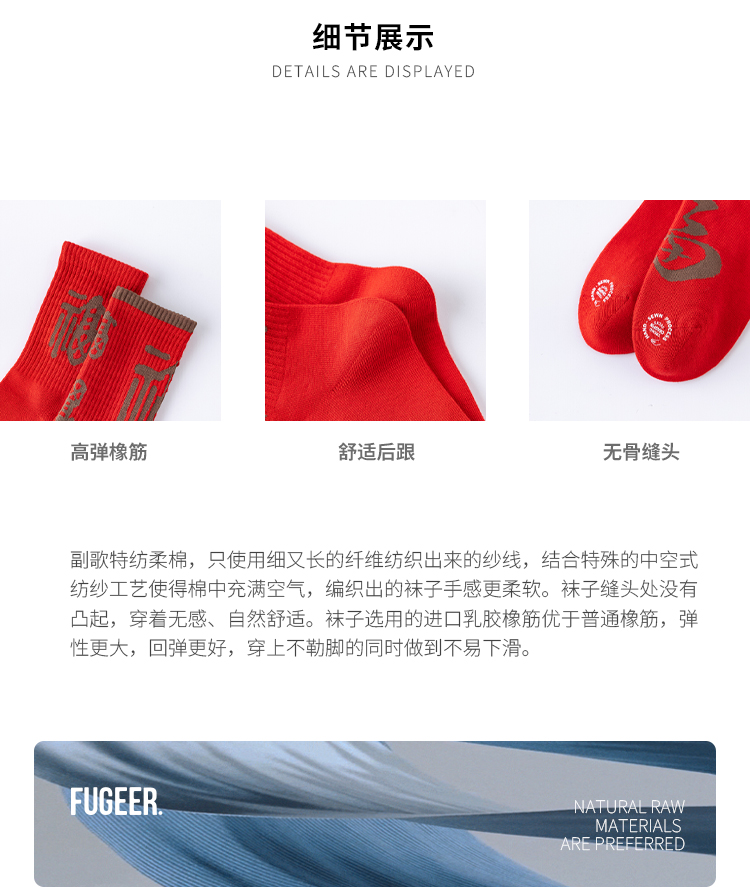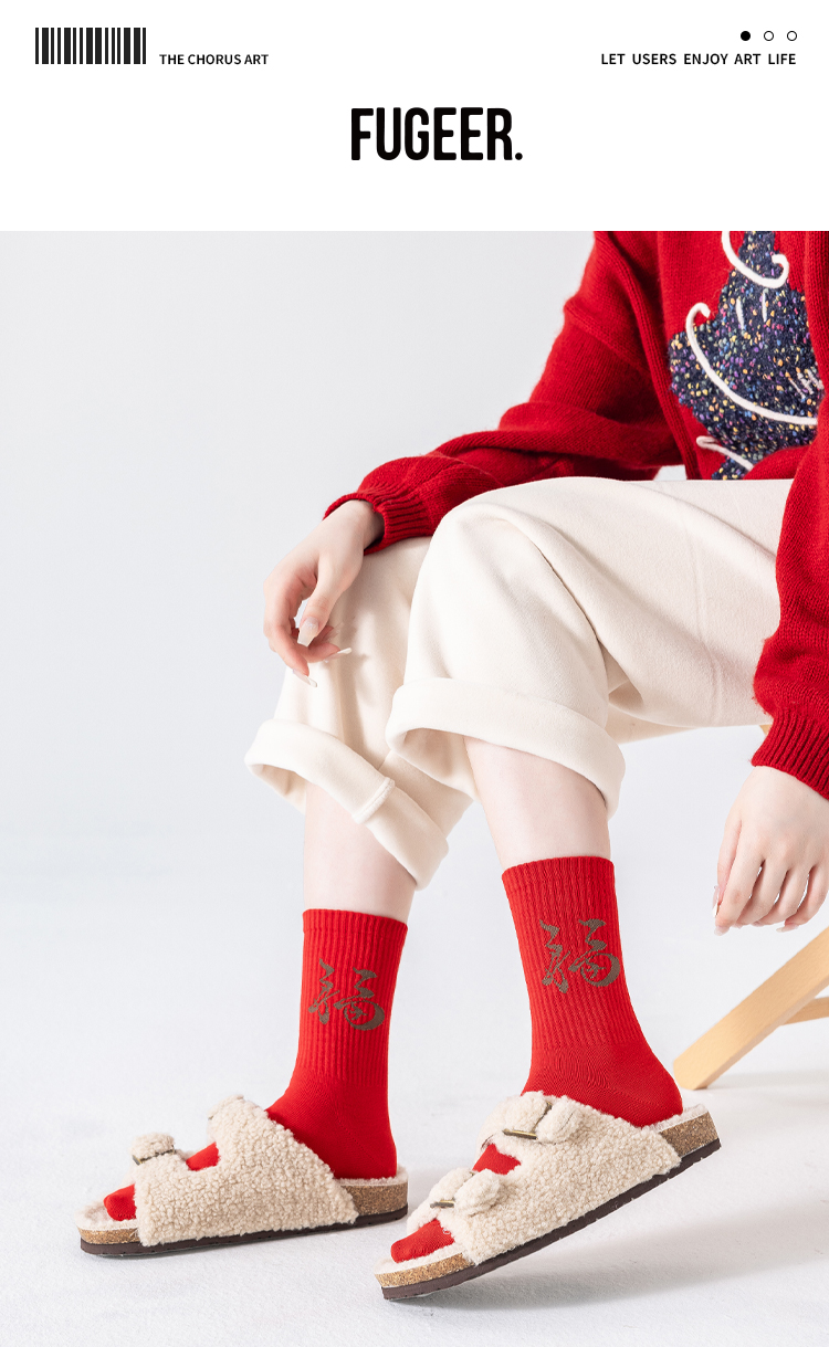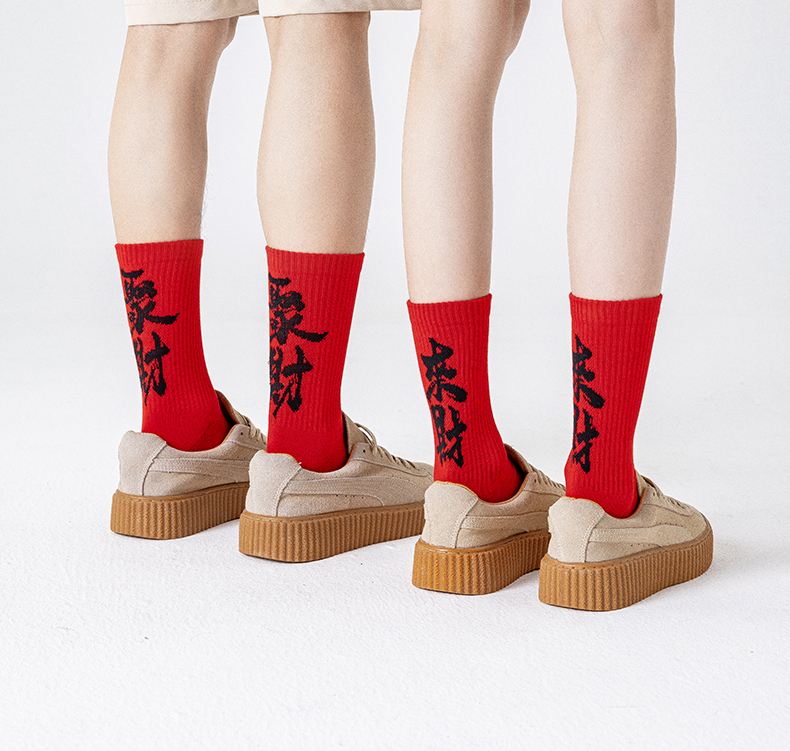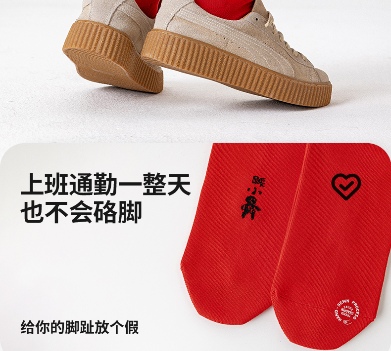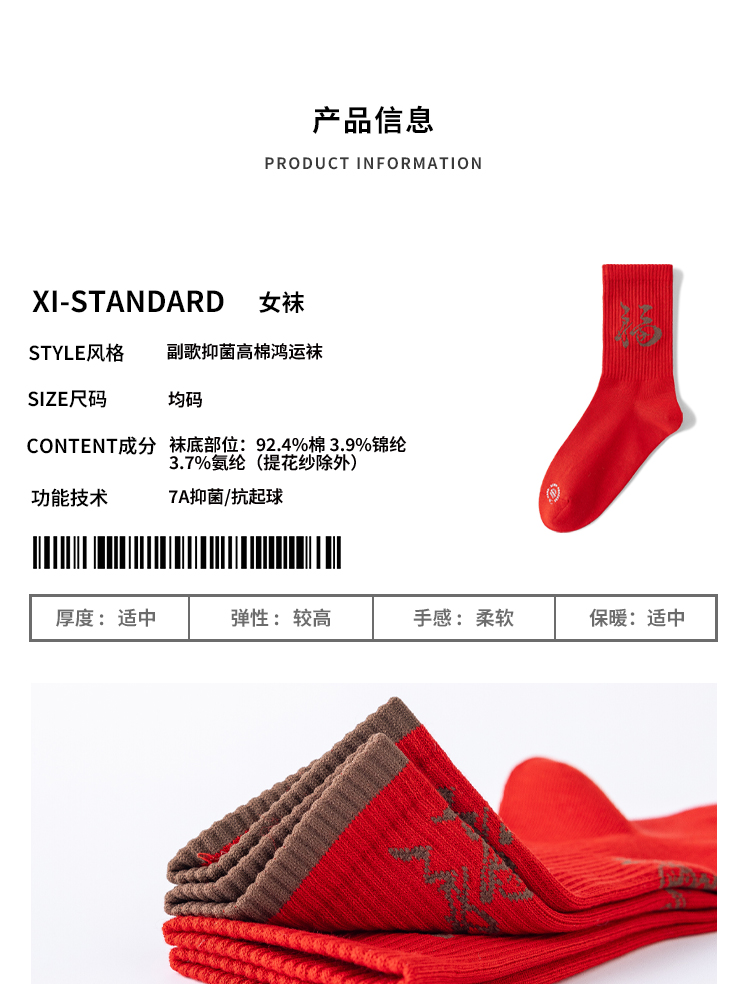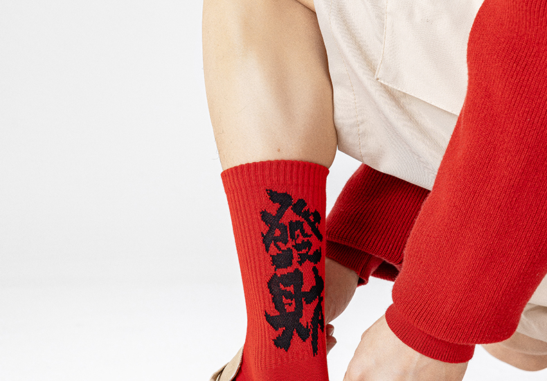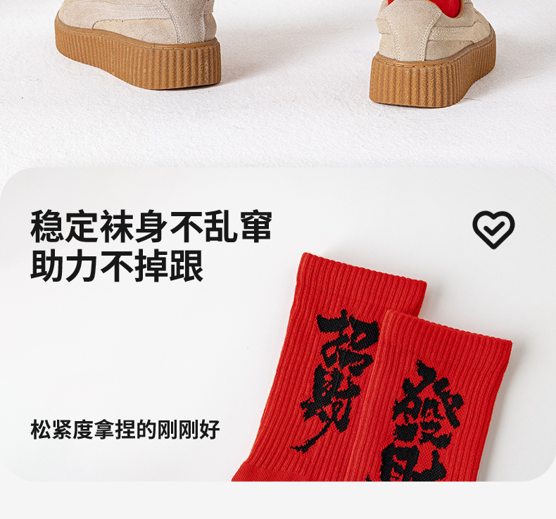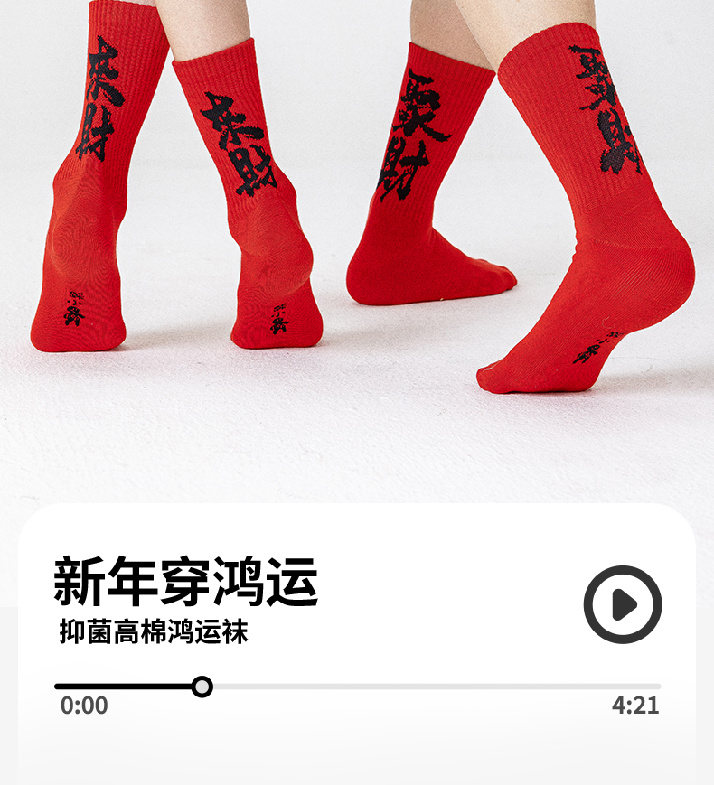 副歌新年鸿运走红袜五福全财系列高棉7A抑菌 男袜女袜4双礼盒装