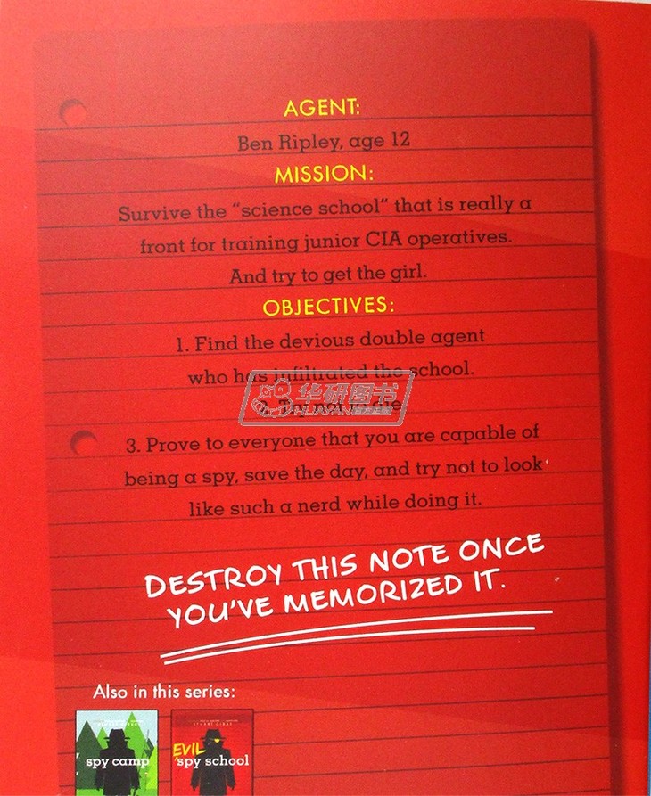 Ben Ripley may only be in middle school, but he's already pegged his dream job: C.I.A. or bust. Unfortunately for him, his personality doesn't exactly scream "secret agent." In fact, Ben is so awkward, he can barely get to school and back without a mishap. Because of his innate nerdiness, Ben is not surprised when he is recruited for a magnet school with a focus on science--but he's entirely shocked to discover that the school is actually a front for a junior C.I.A. academy. Could the C.I.A. really want him?