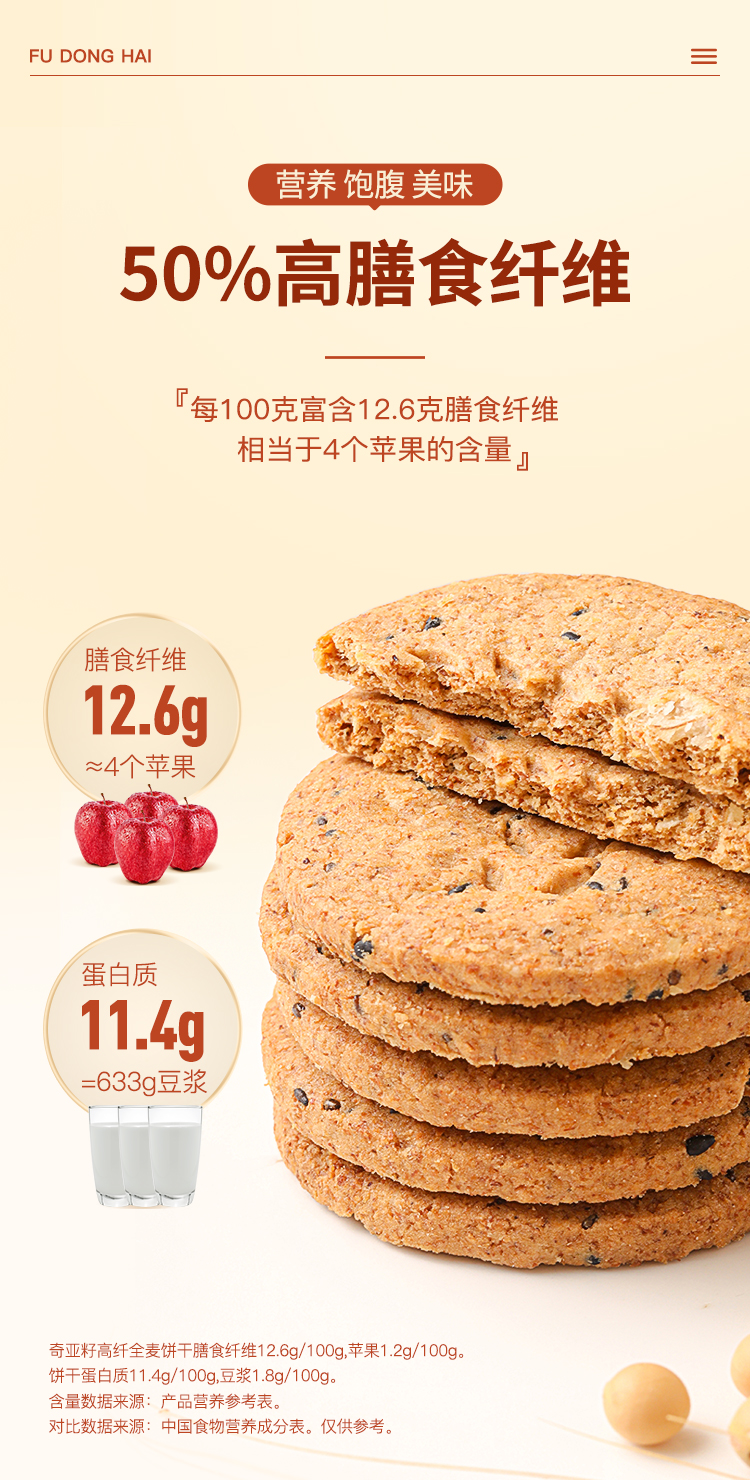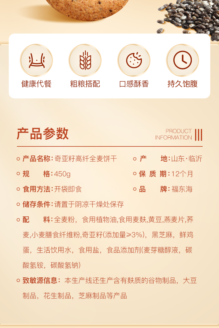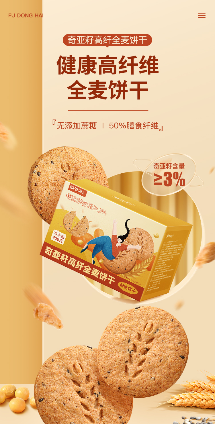 福东海 奇亚籽高纤全麦饼干450克/盒