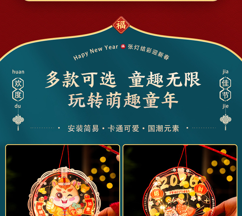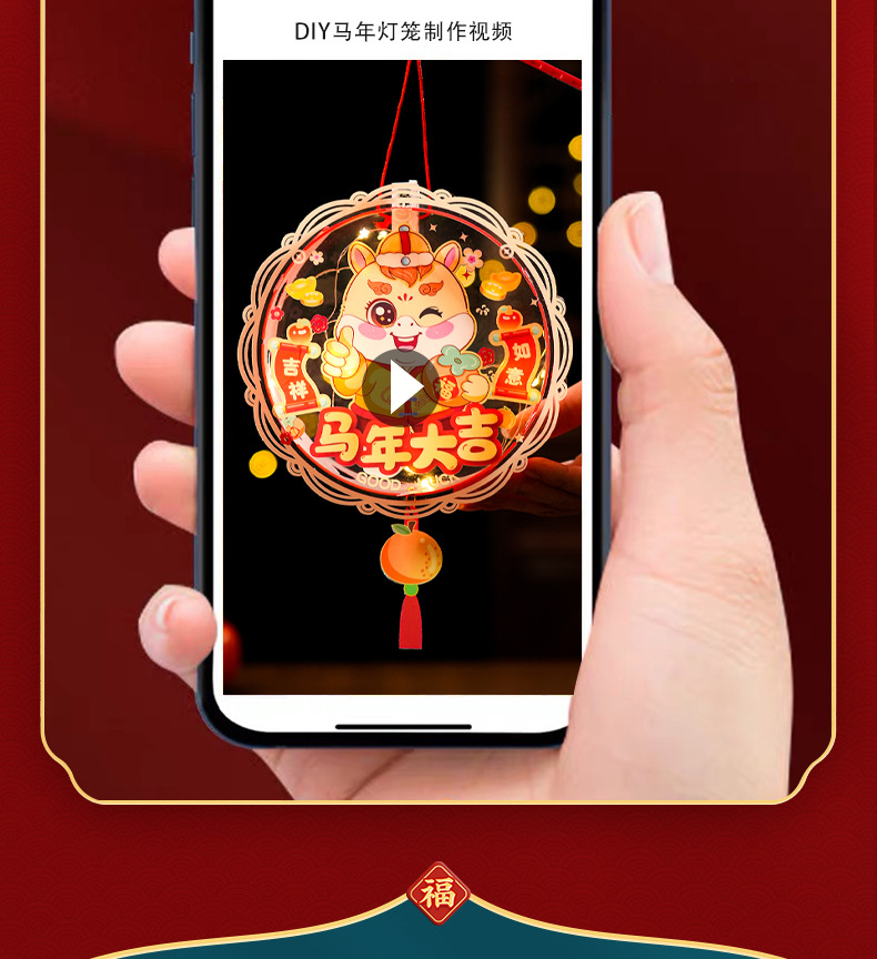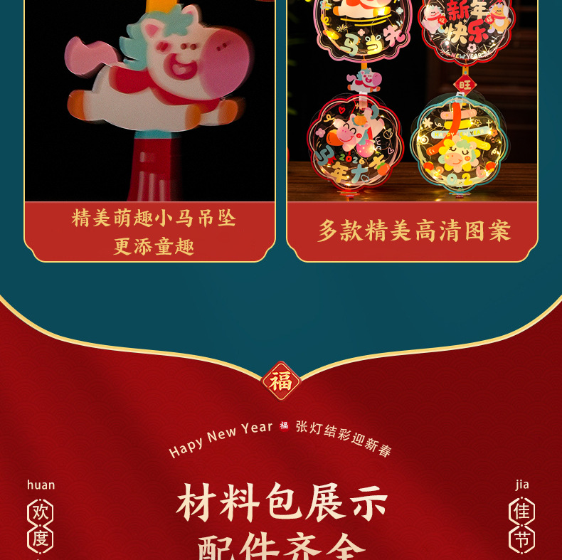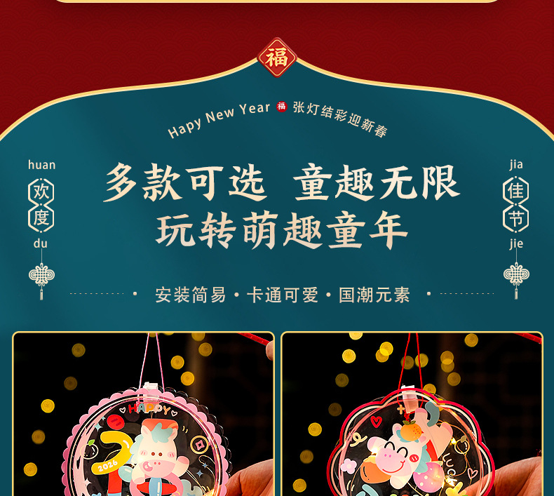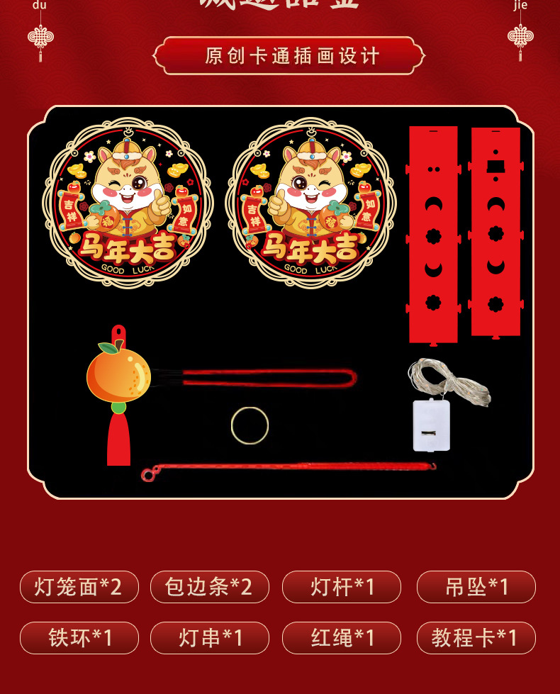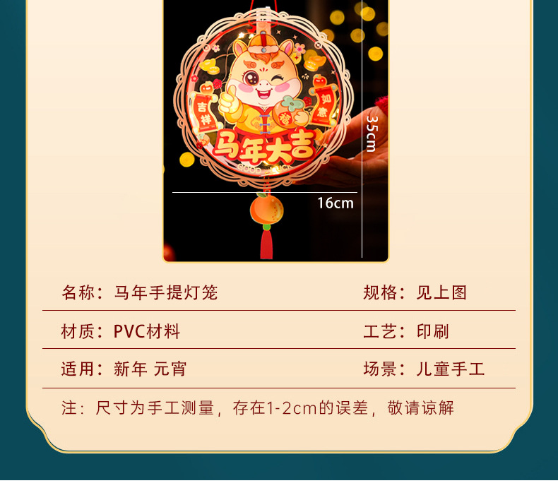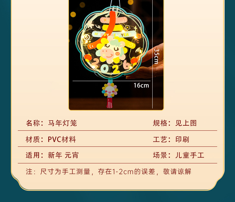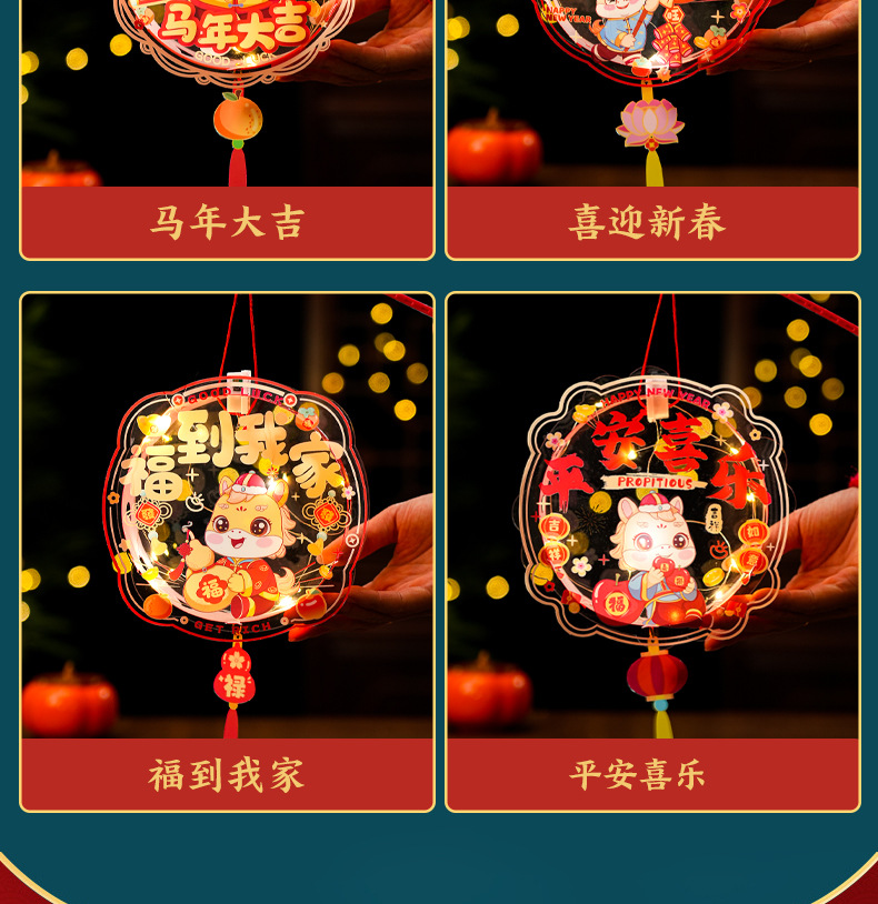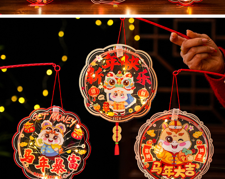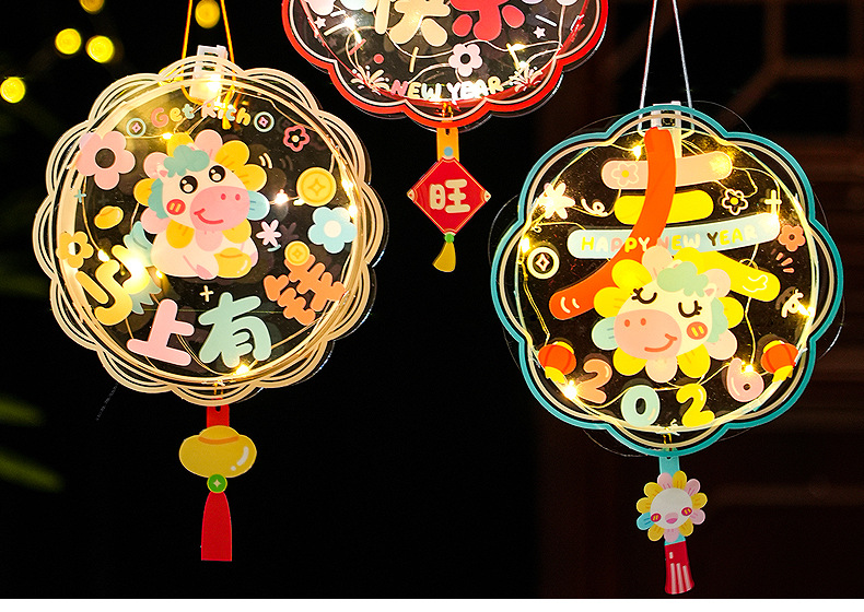 新年灯笼发光儿童手工diy材料马年花灯春节手提灯笼宫灯过年摆摊