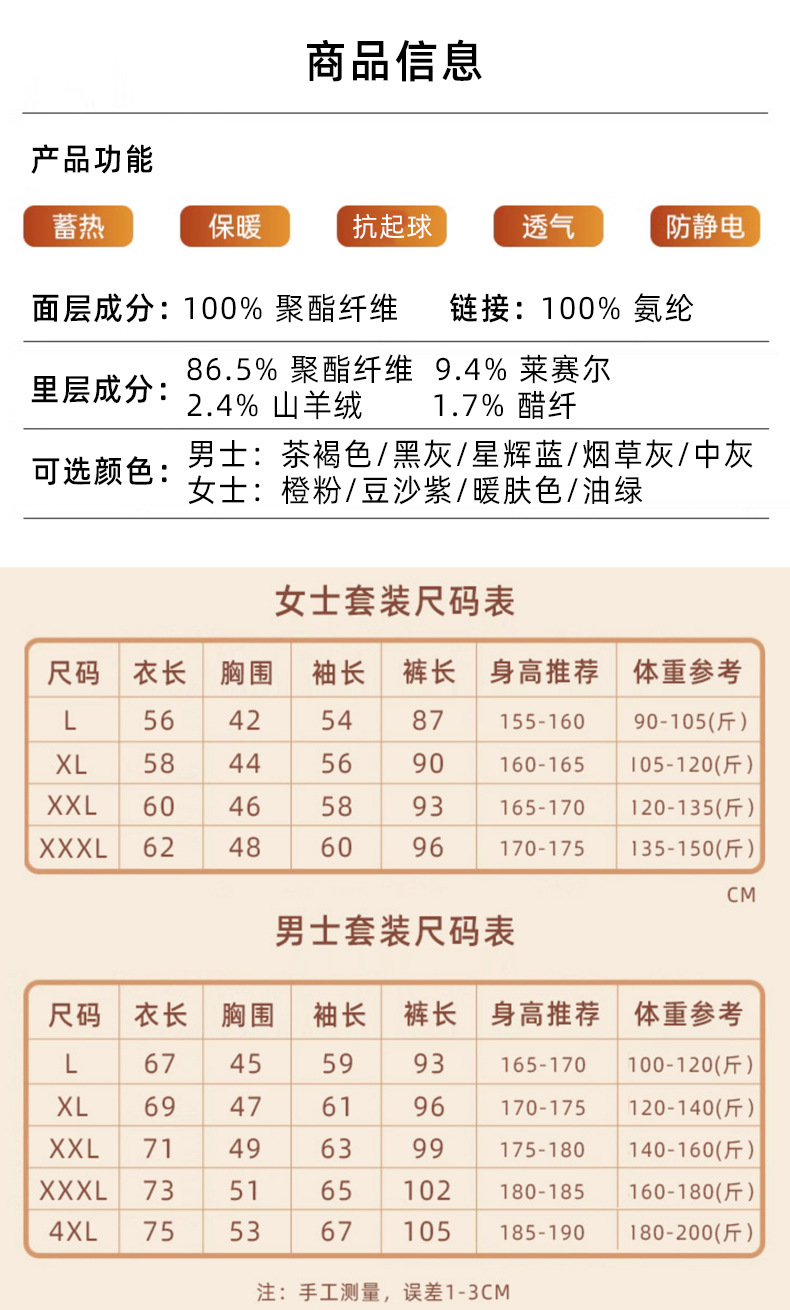 【加厚款男女同款保暖内衣】羊绒+天丝 加绒加厚 加倍保暖 双面绒轻暖无负担 经典圆领