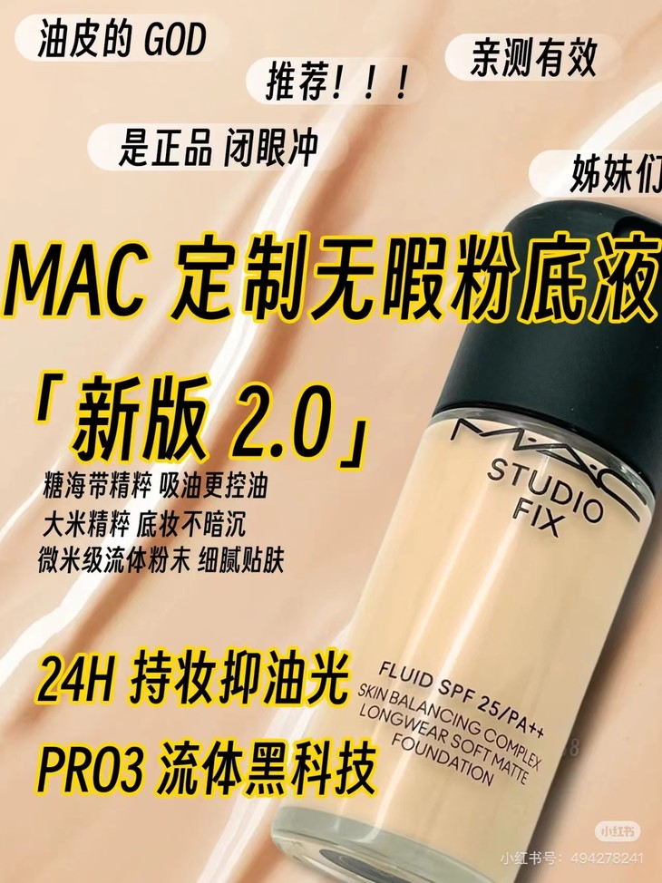 现货▲ MAC魅可 新版定制无暇粉底液 2.0