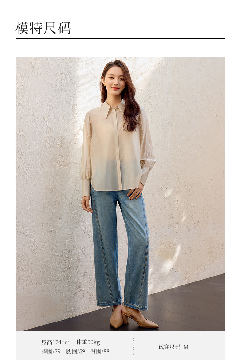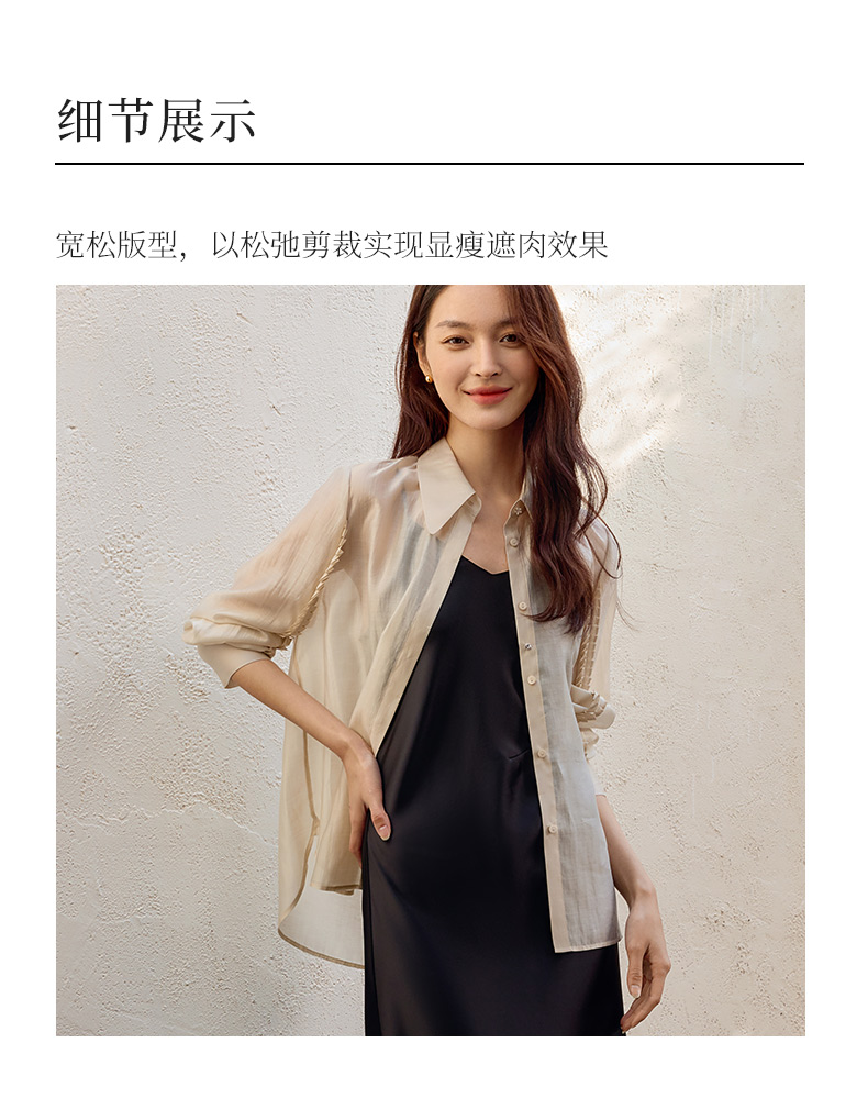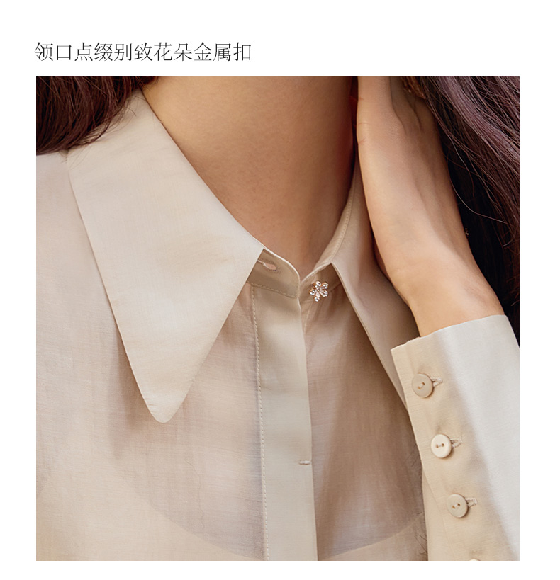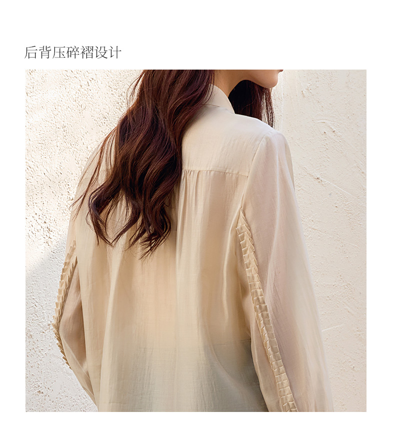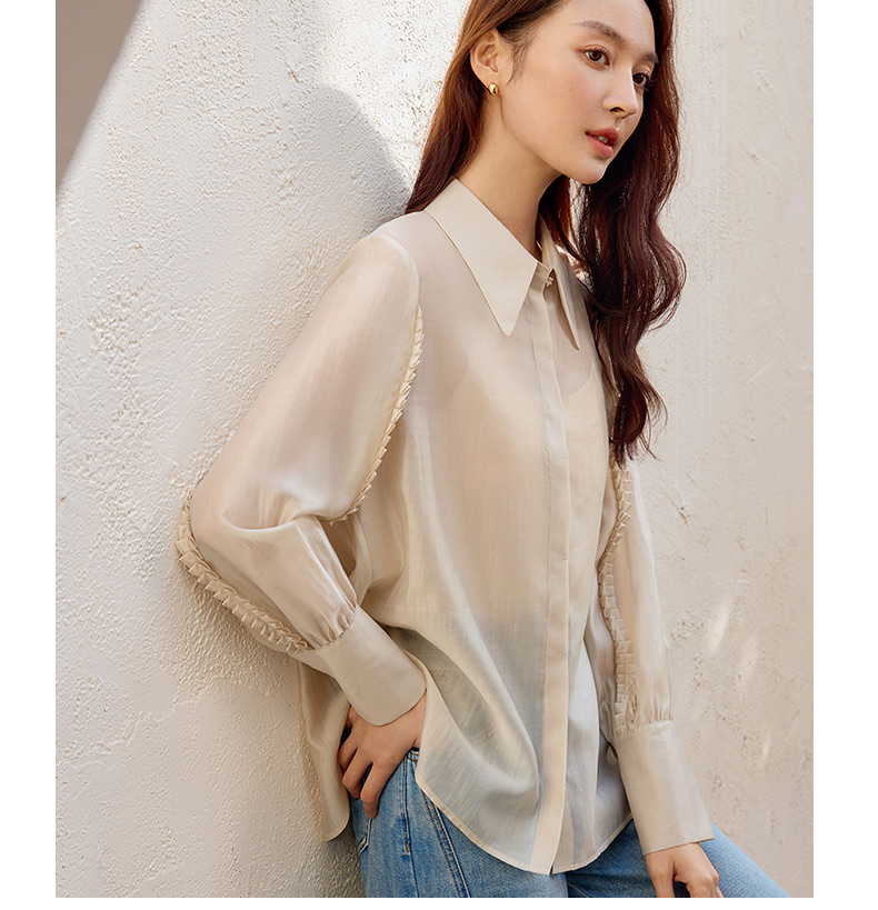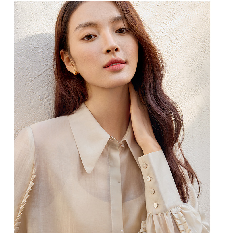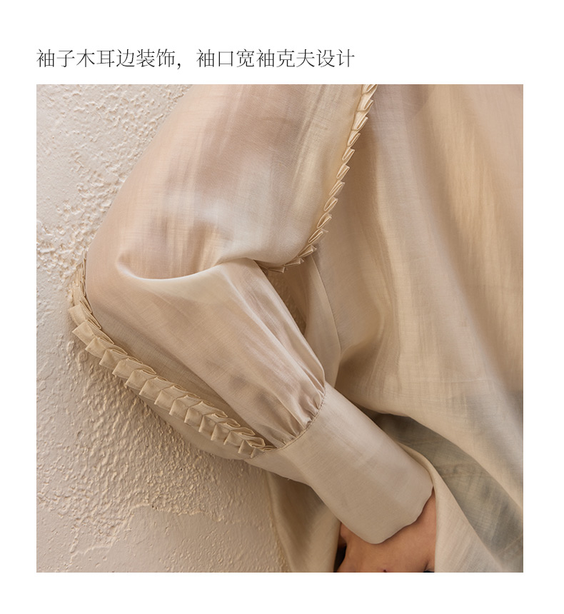 玳莎微透减龄天丝衬衫女2025春季新款木耳边装饰加长袖口宽松上衣 FA31308