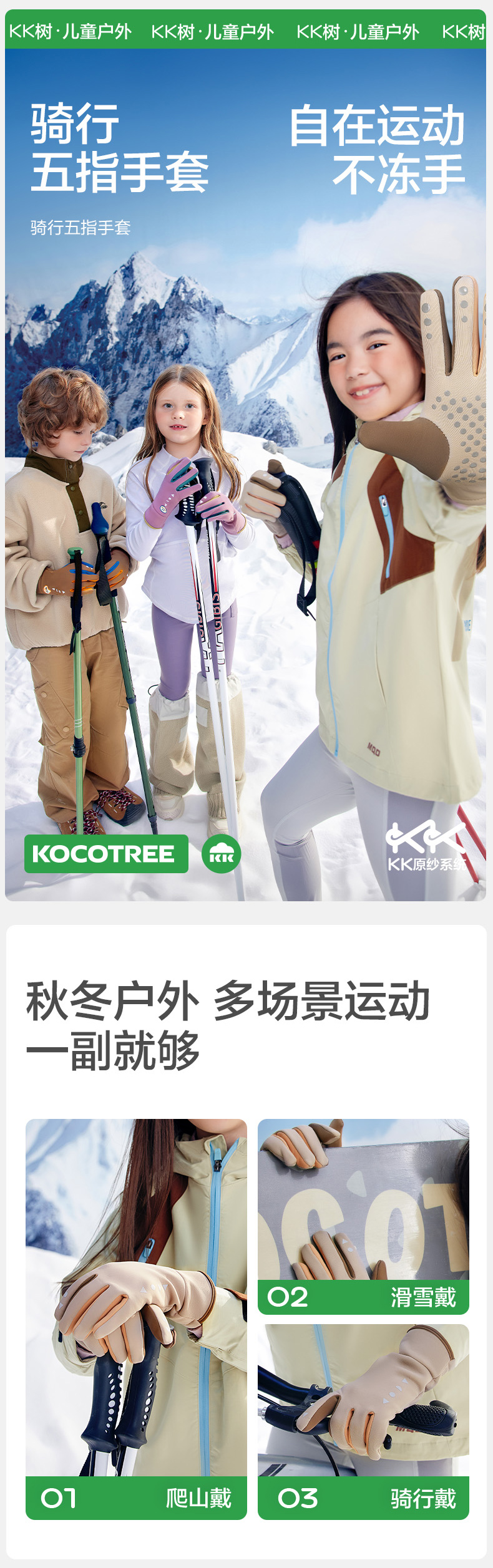 [屁侠推荐]KK树儿童手套秋冬季加绒保暖男童女孩户外运动骑行防风防滑抗静电骑行五指手套