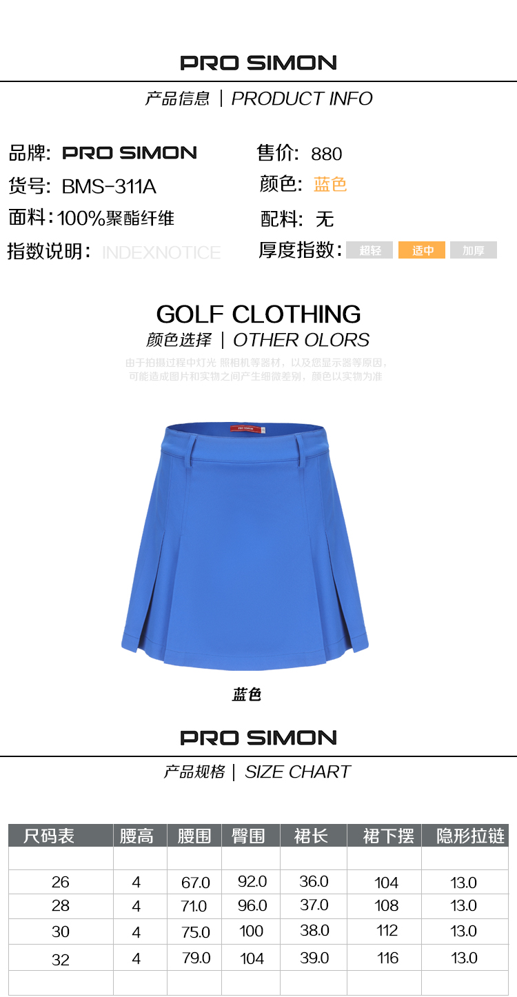 BMS-311A(PROSIMON高尔服装女短裙夏季运动简约百褶裙)