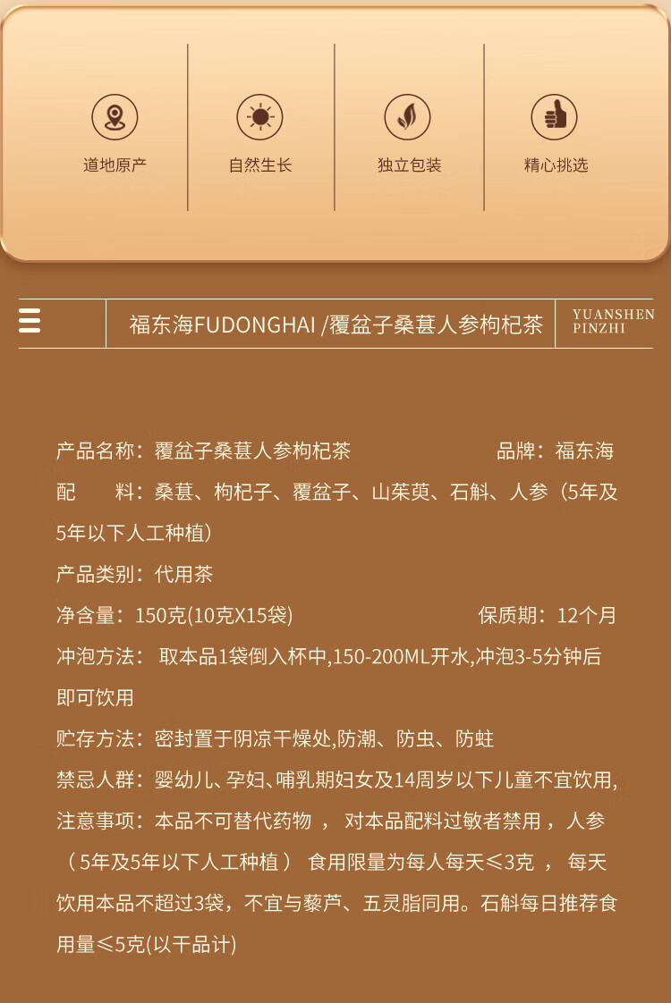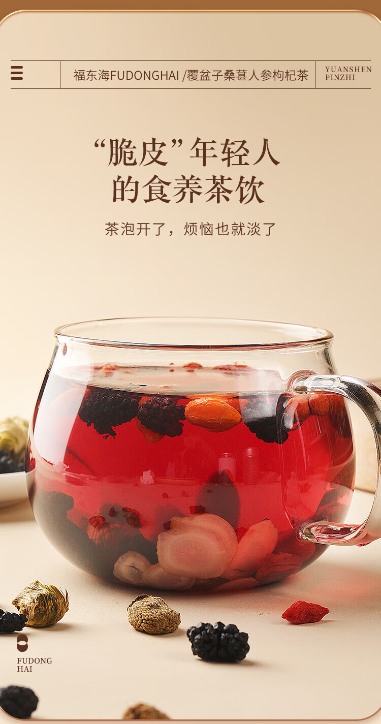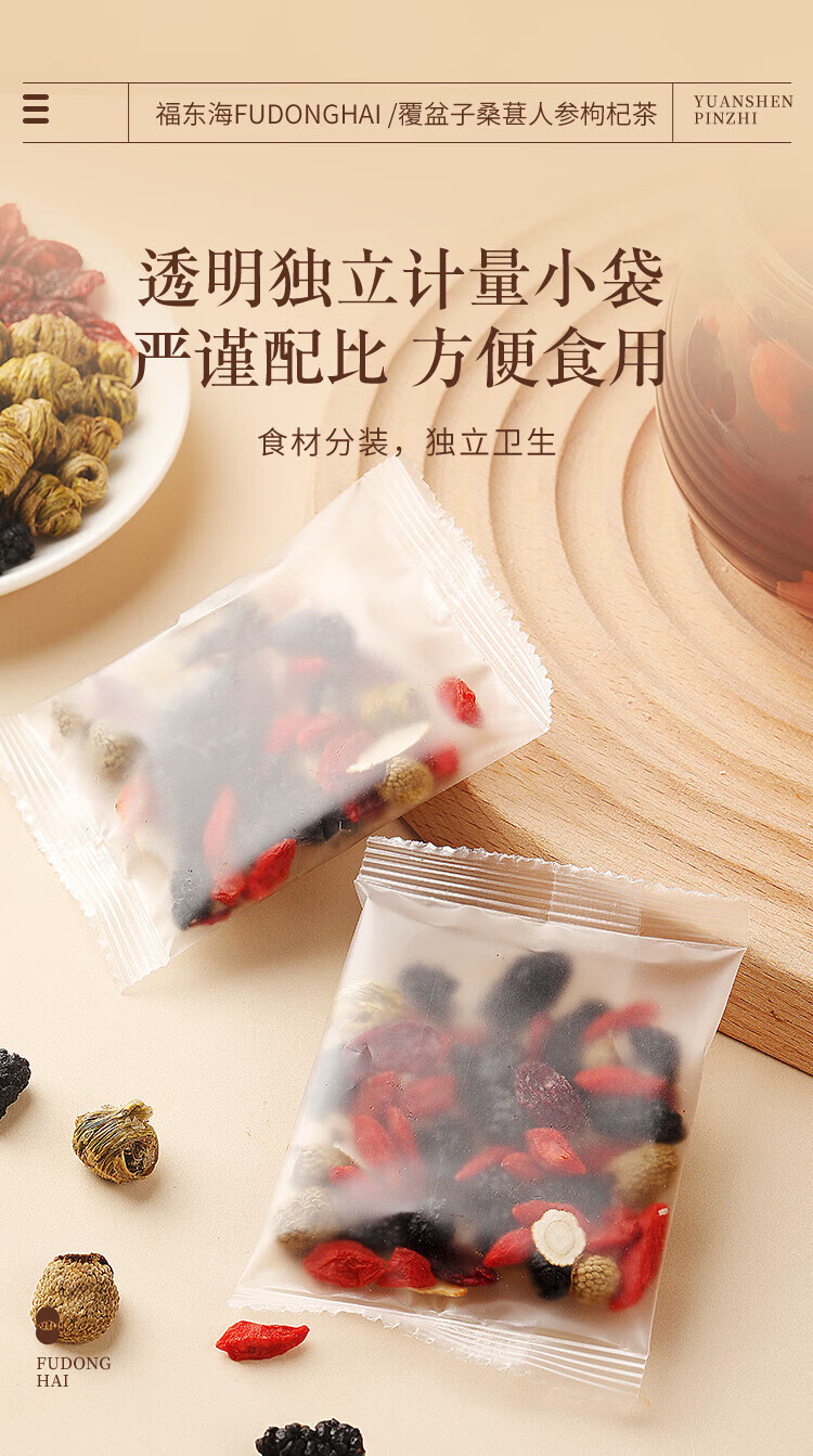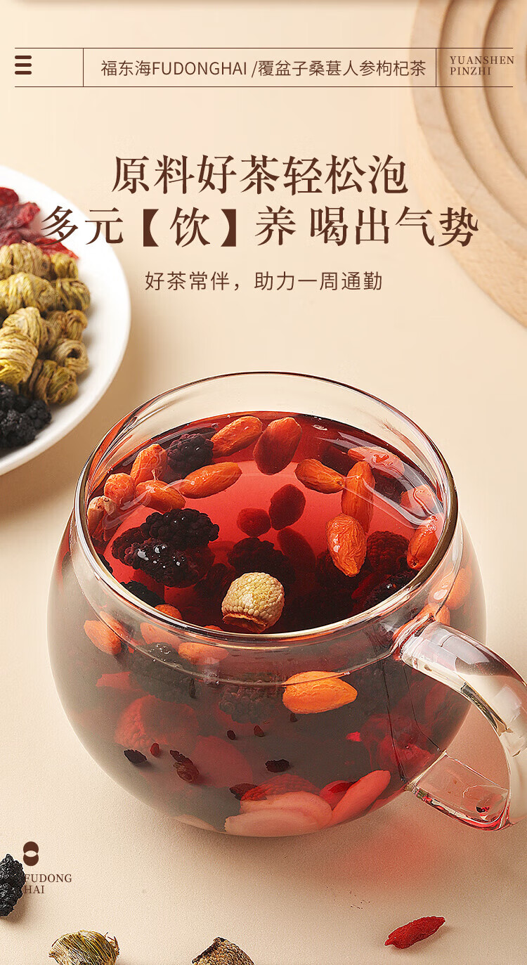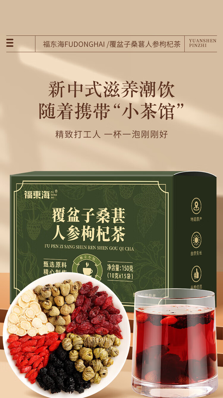 福东海 覆盆子桑葚人参枸杞茶150克(10克x15袋)/盒