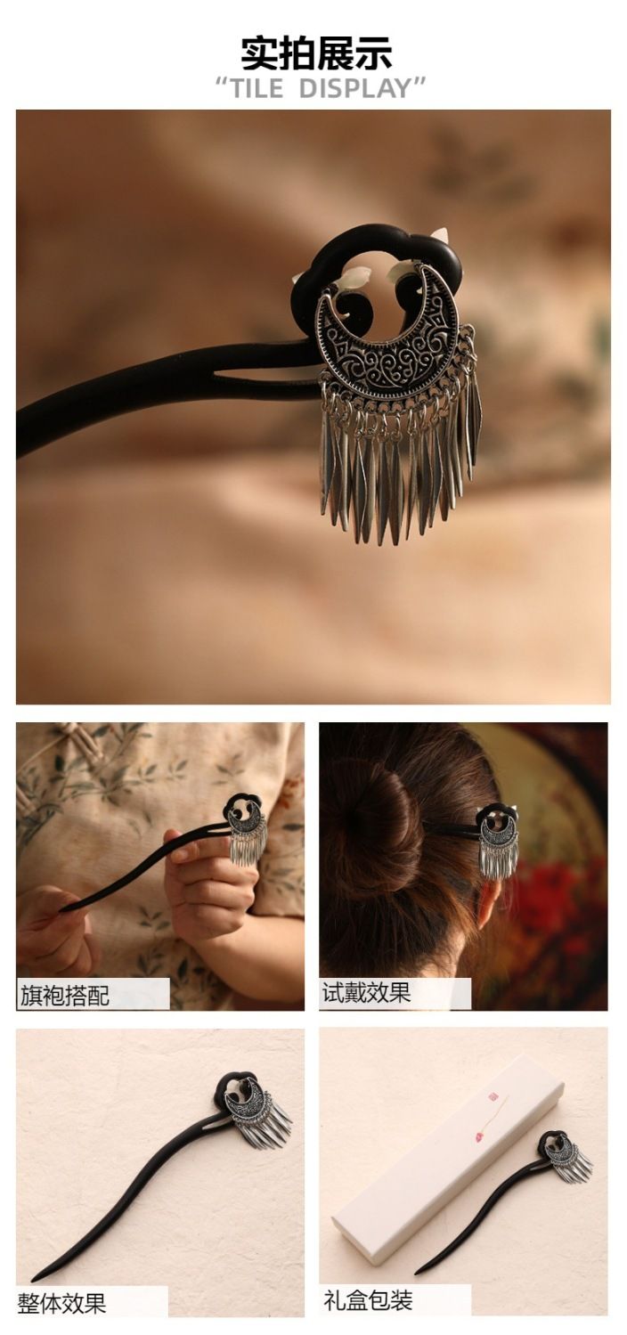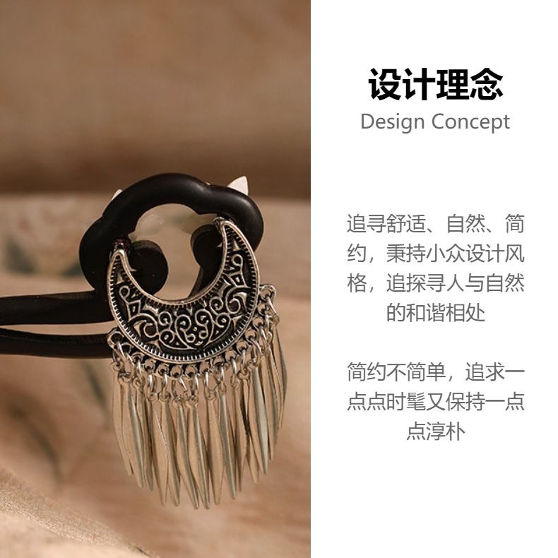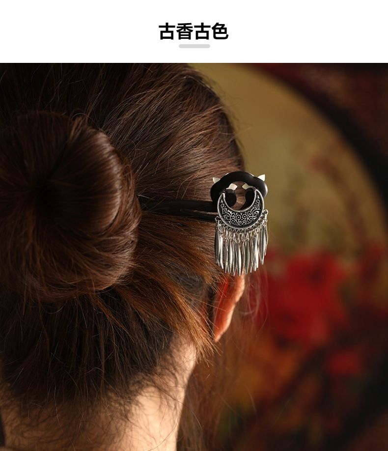 古风简约发簪子女月牙流苏木簪子丸子头配饰古装汉服发饰配饰簪子