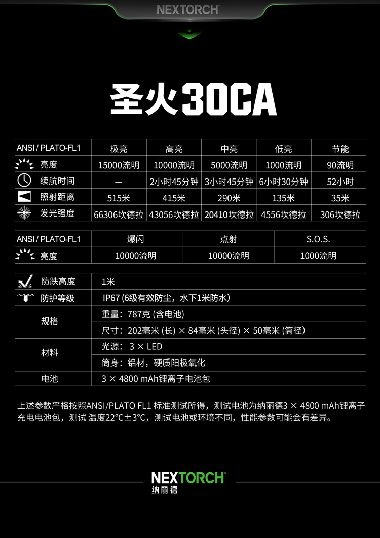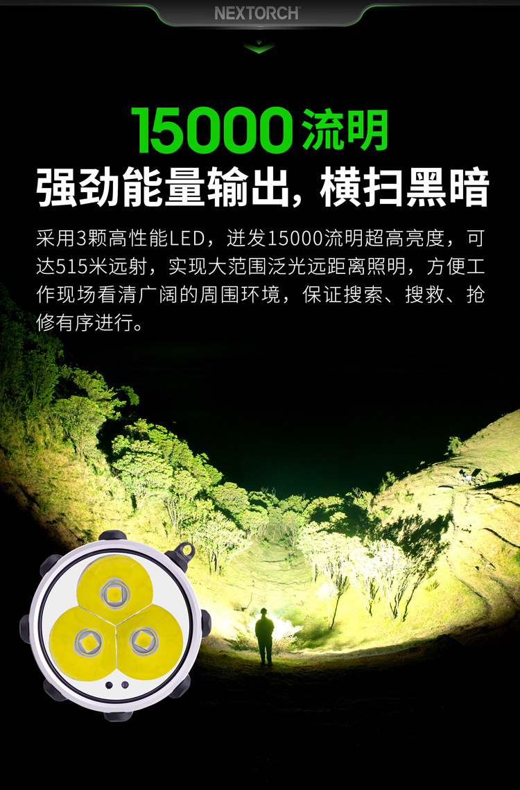 圣火30CA超高亮大范围搜索手电探险抢修应急救援手提探照灯