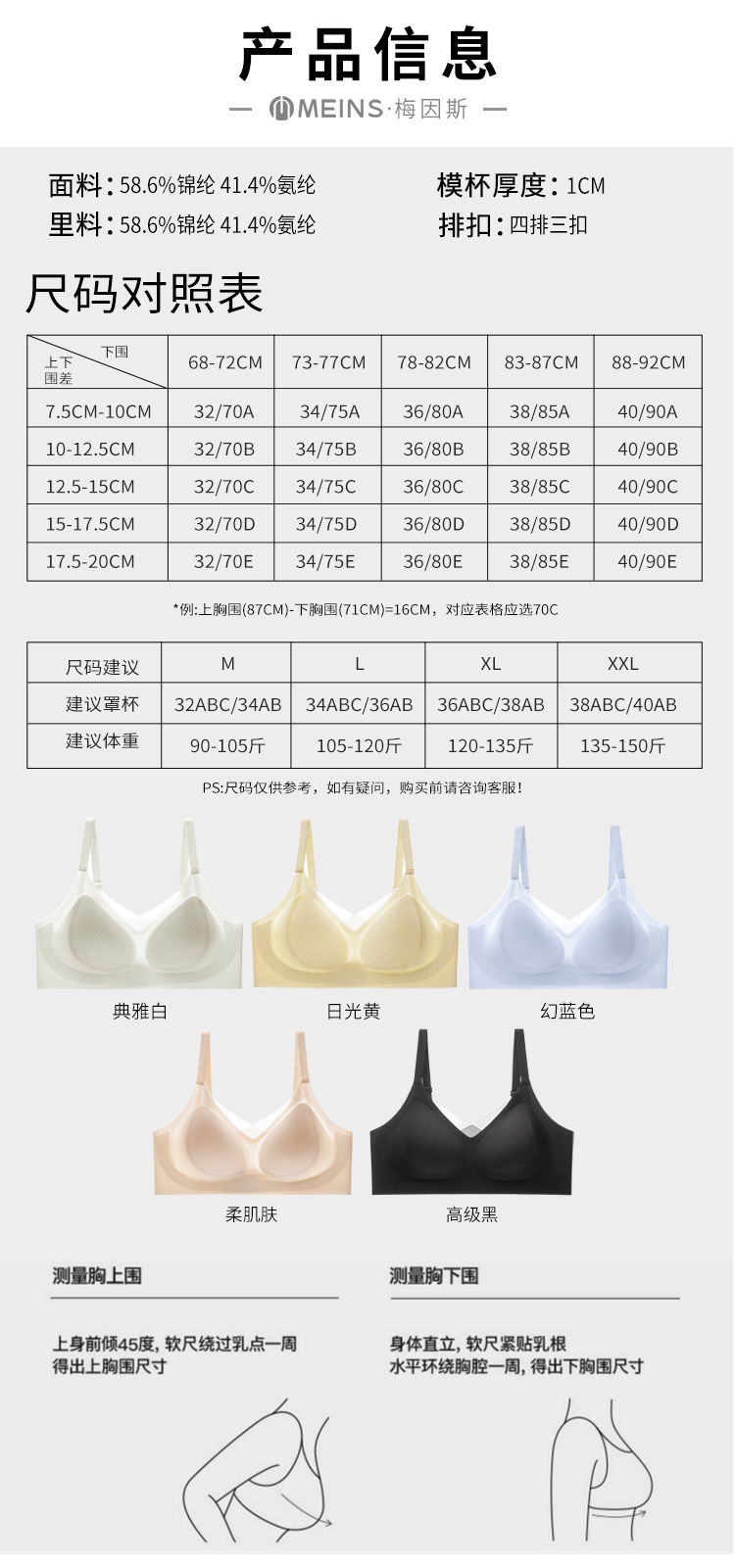 【品名】意大利梅因斯 蜜桃撑 冰肌BRA 女士内衣 裸感塑性 5色可选 【规格】典雅白、柔肌肤、高级黑、幻蓝色、日光黄 【尺码】M-2XL 【产地】国内 【材质】 面料:锦纶58.6% 氨纶41.4% 里料:锦纶58.6% 氨纶41.4% 【发货包装】独立包装 【发货地】浙江 【发货快递】申通、圆通随机发 【补邮费地区】新疆、西藏+10元 【发货时效】48-72小时,周末节假日顺延 |