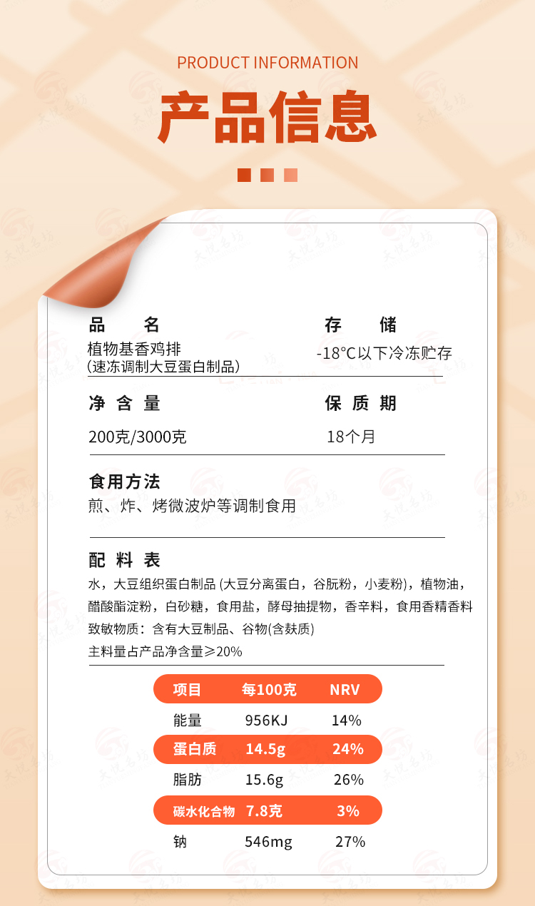 素香鸡排【冷冻素食】非转基因大豆蛋白植物肉