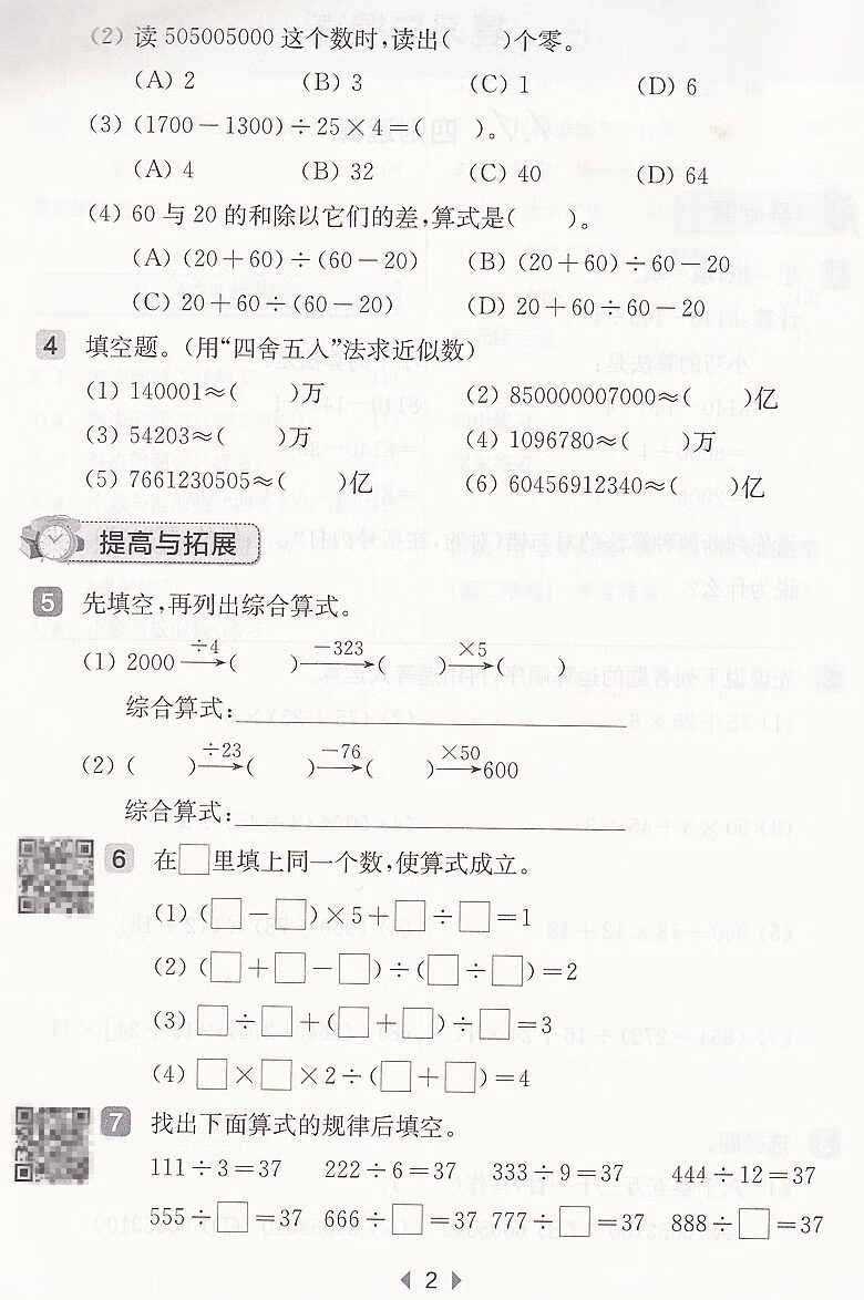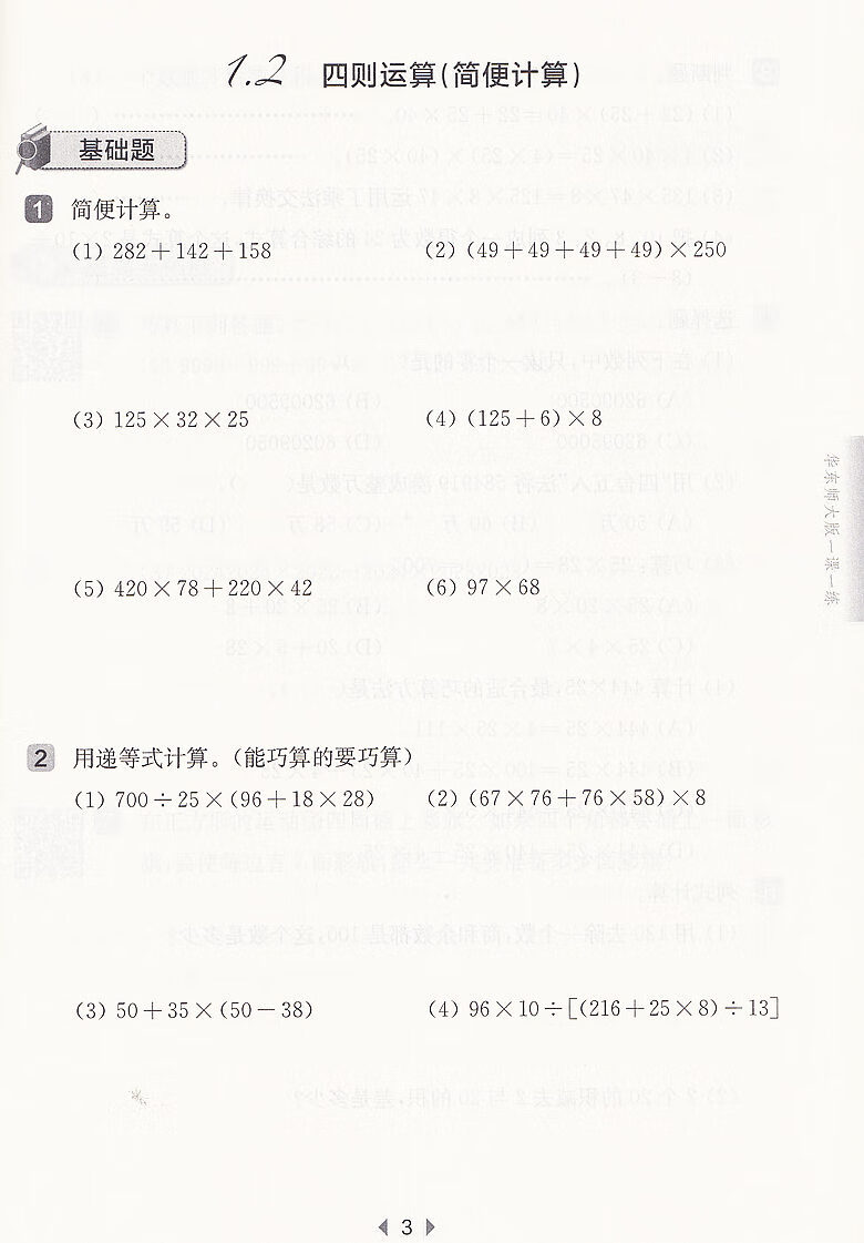 华东师大版一课一练.四年级数学(第二学期)(上海学生适用)