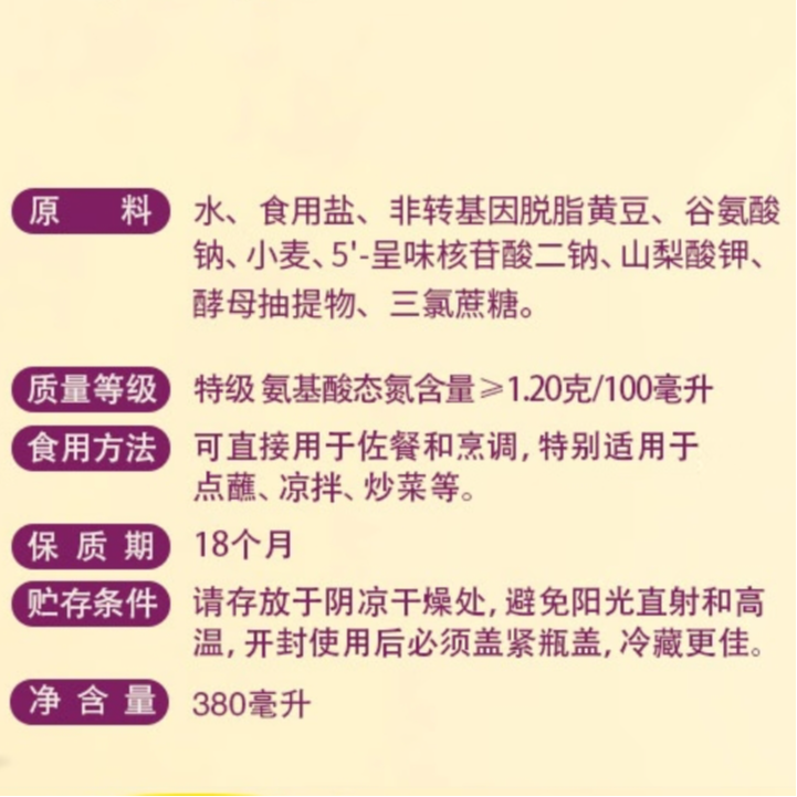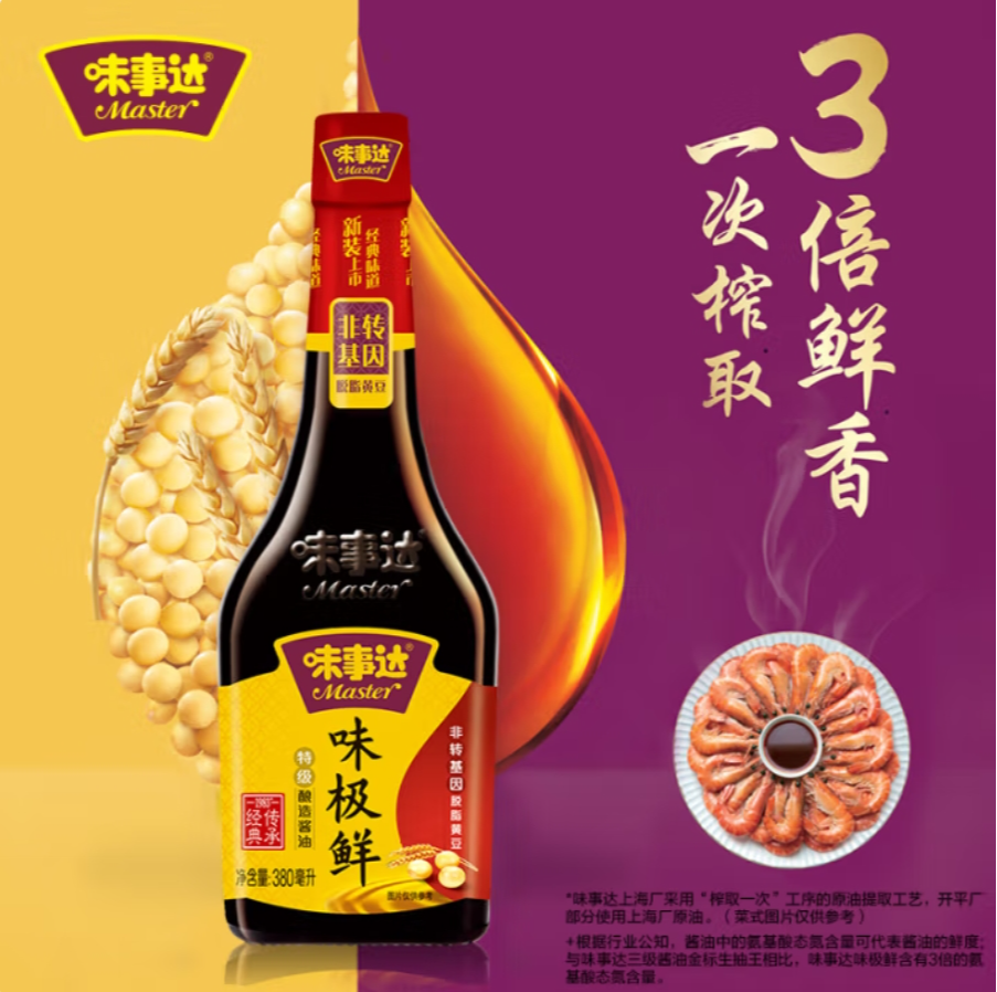 味事达 味极鲜特级酿造酱油 (小)380ml/瓶
