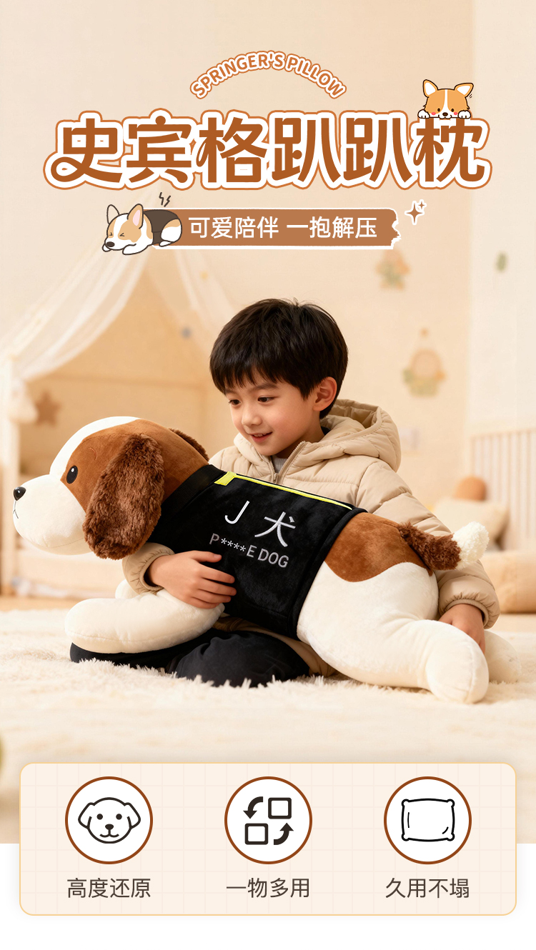 【史宾格趴趴枕】创意狗狗玩偶抱枕日用靠枕靠垫一枕多用