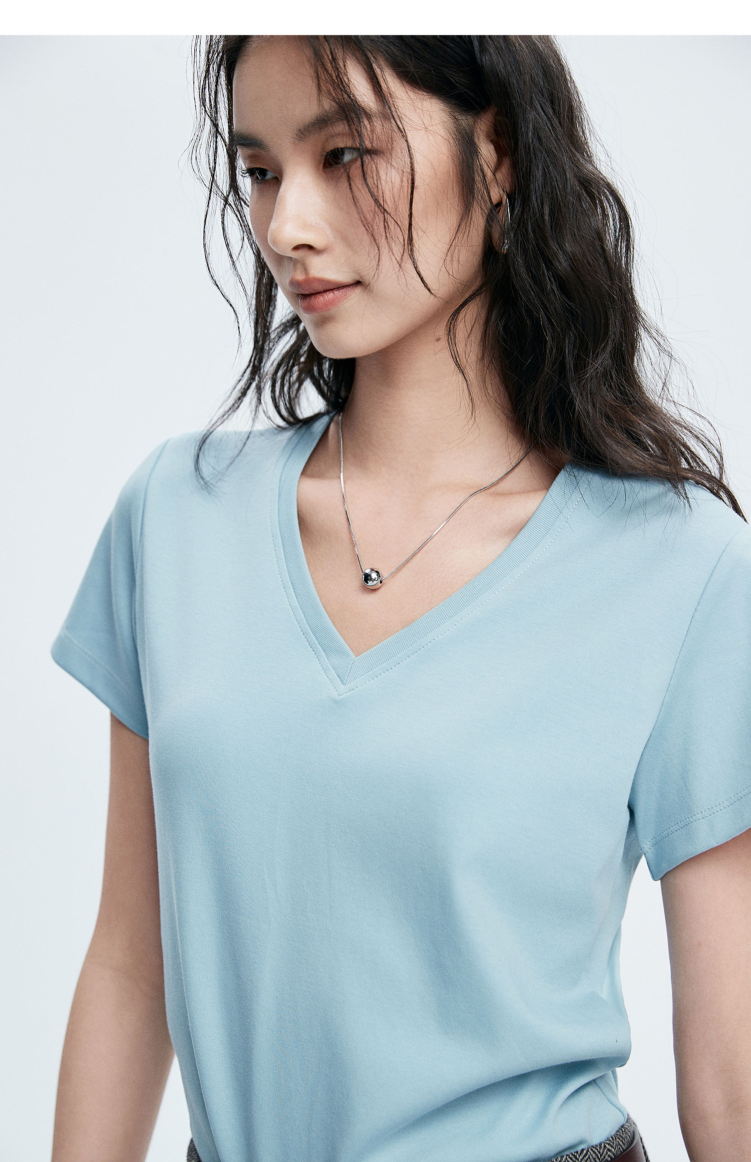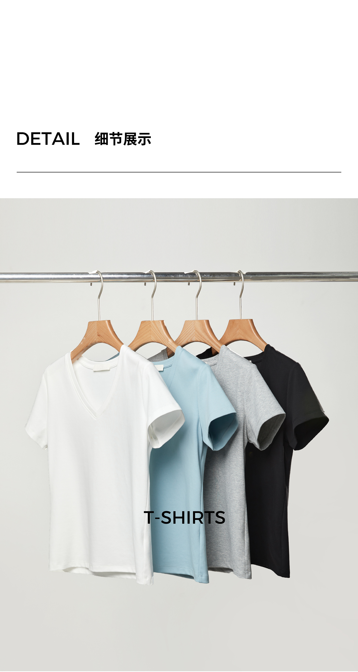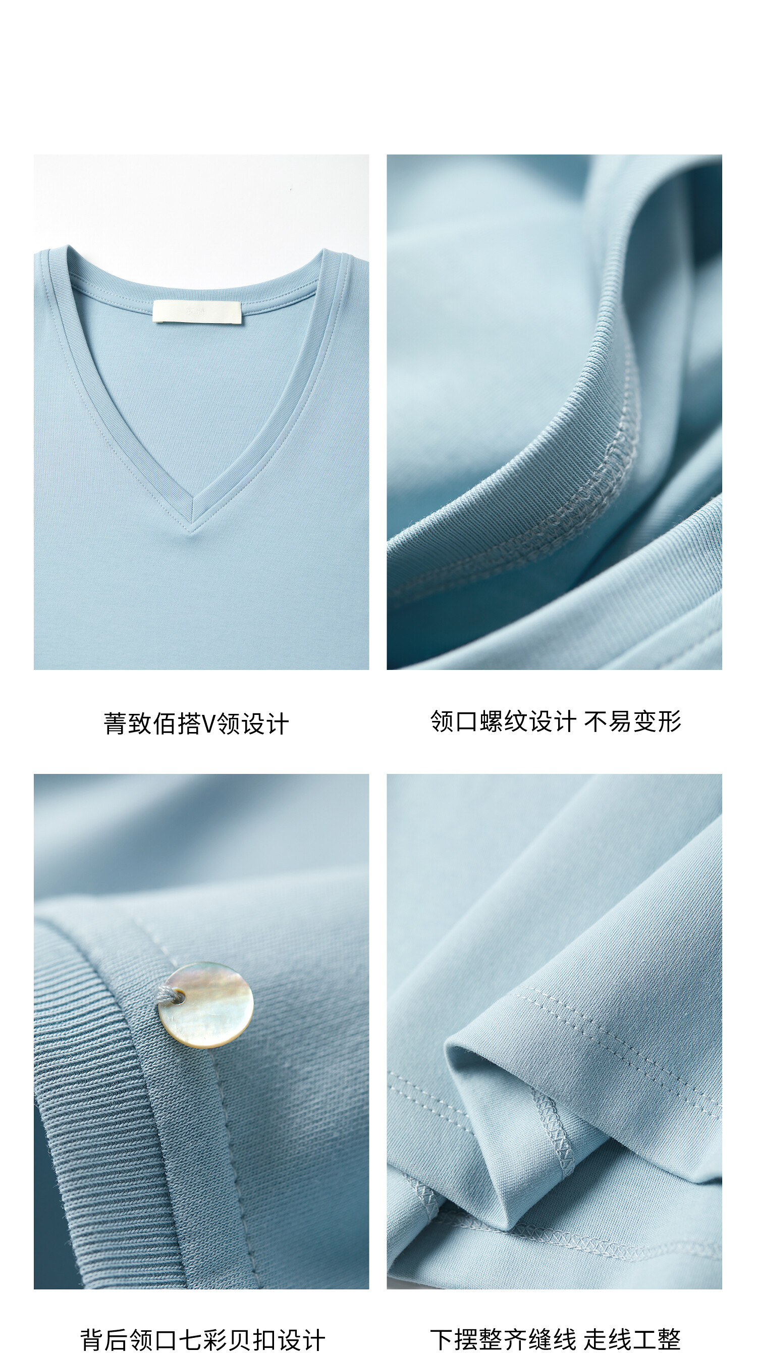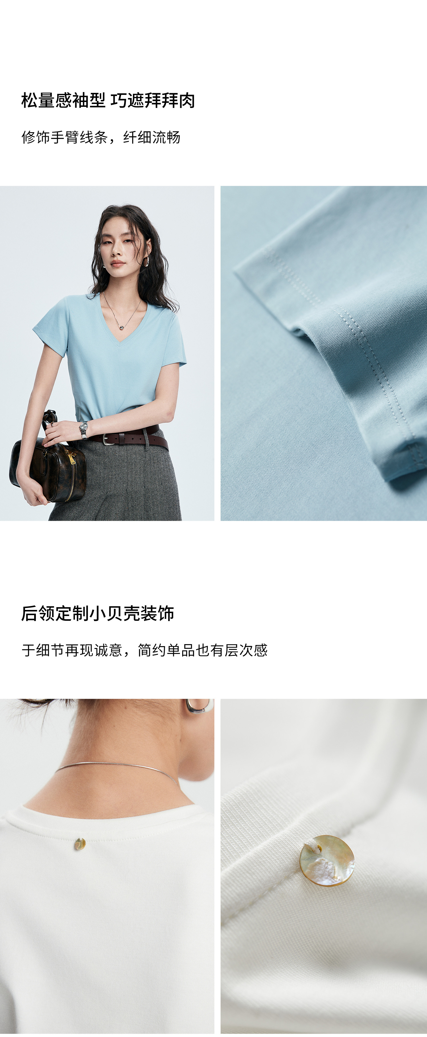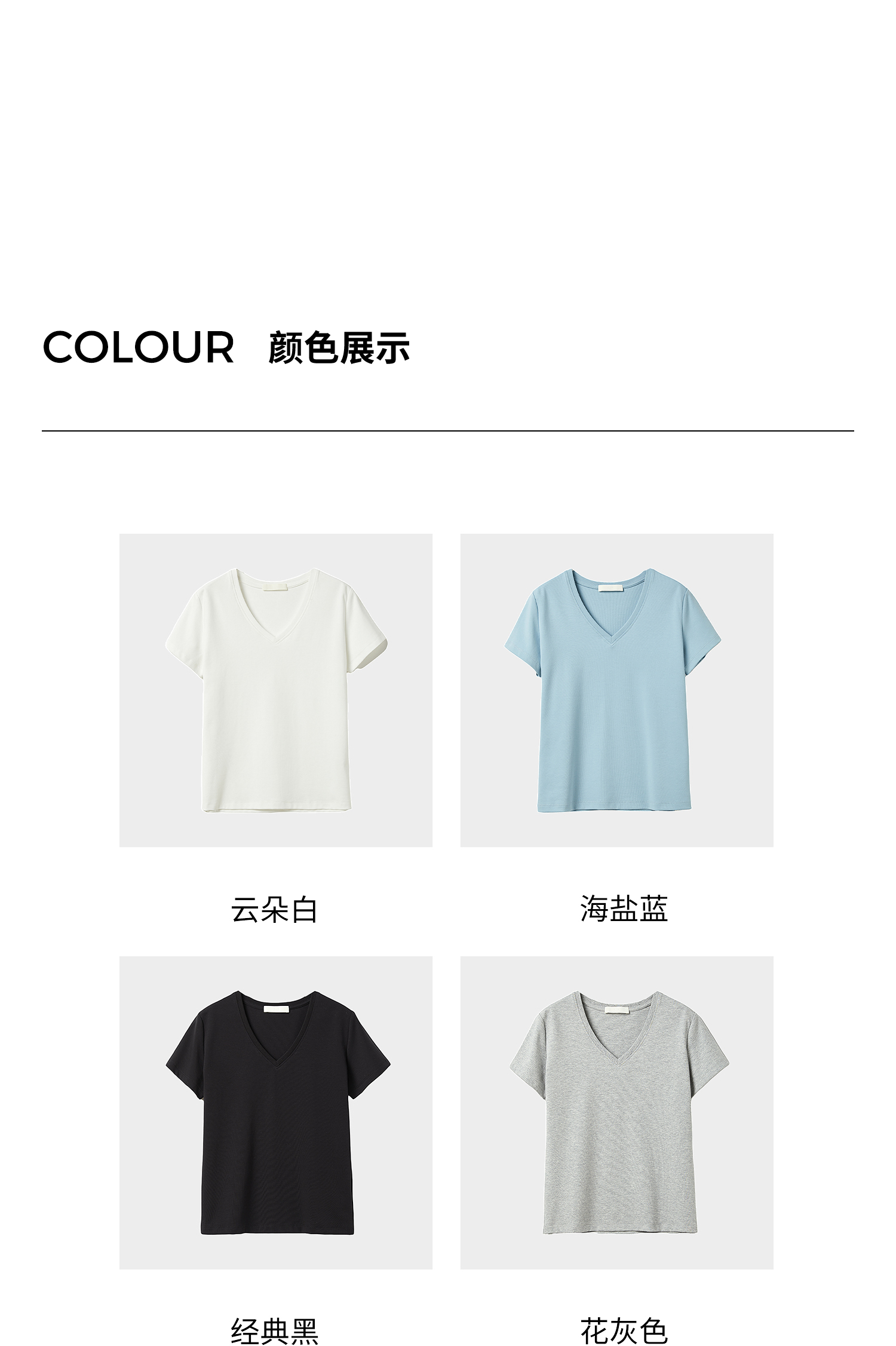 棉仓363601006-初棉丝柔棉简约V领正肩短袖T
