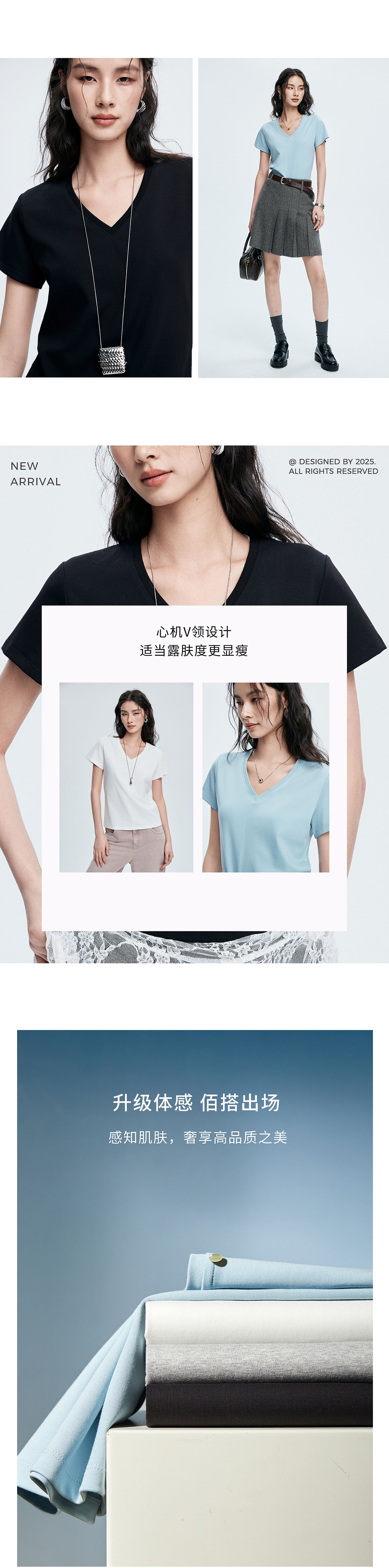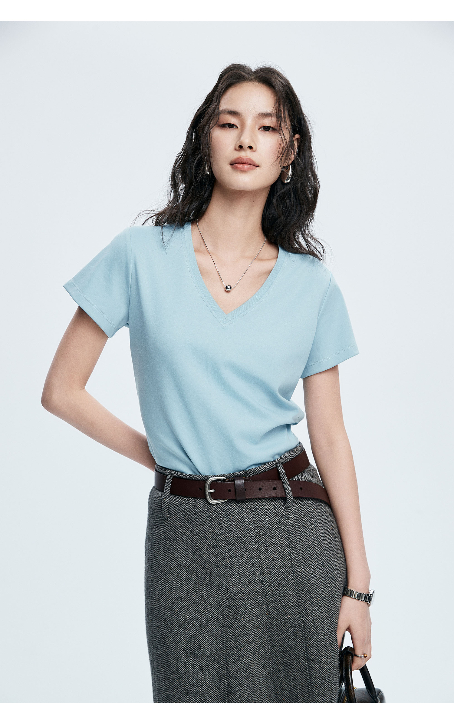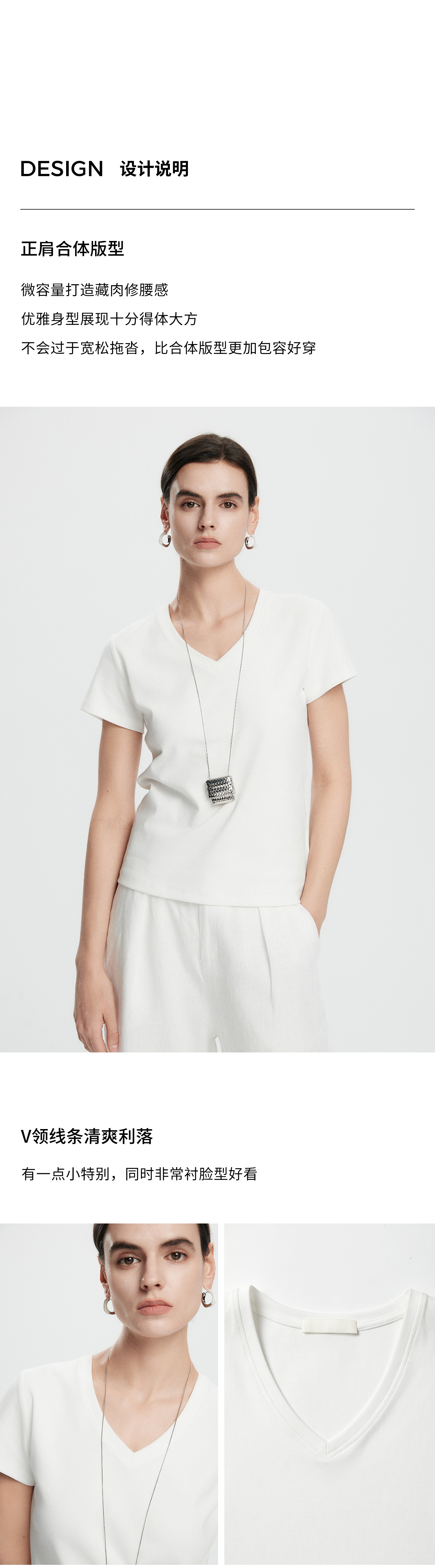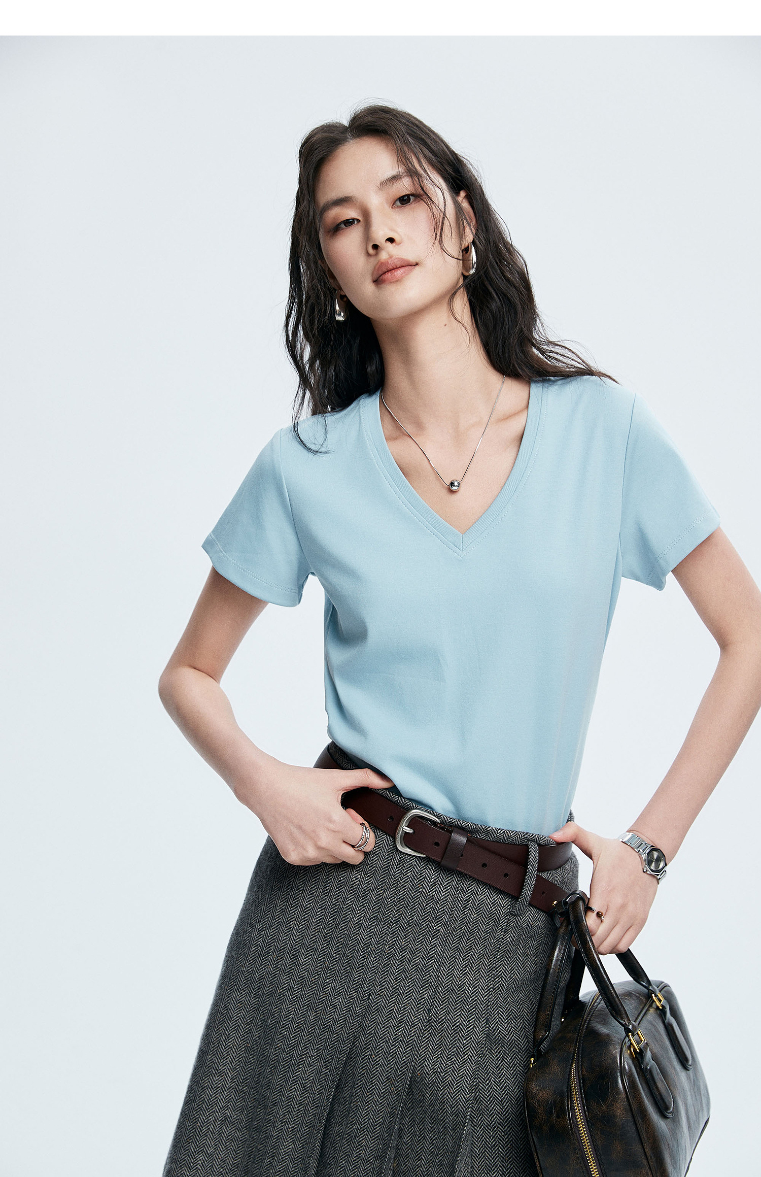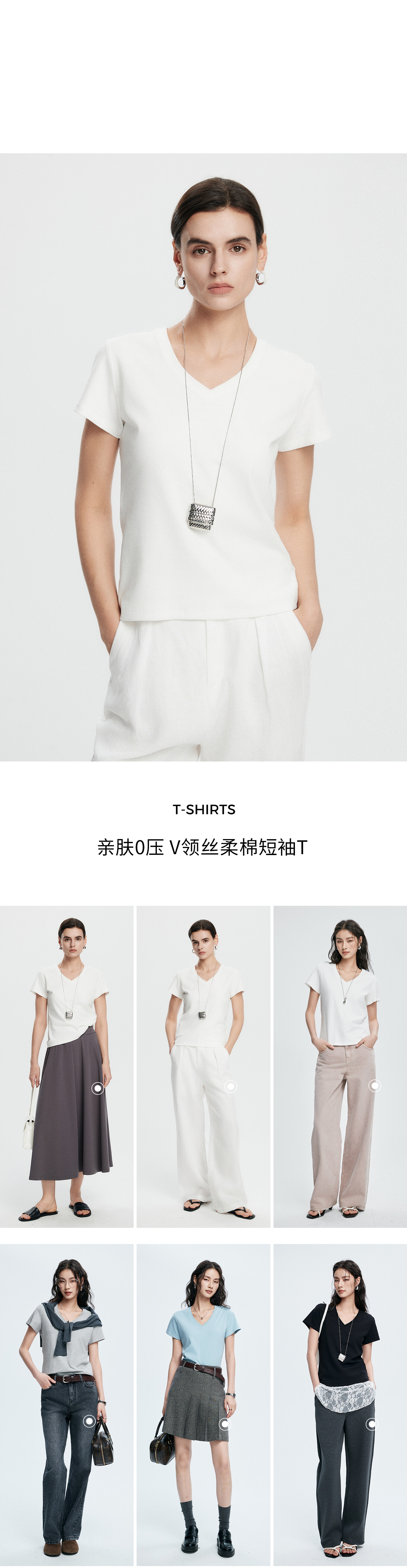 棉仓363601006-初棉丝柔棉简约V领正肩短袖T