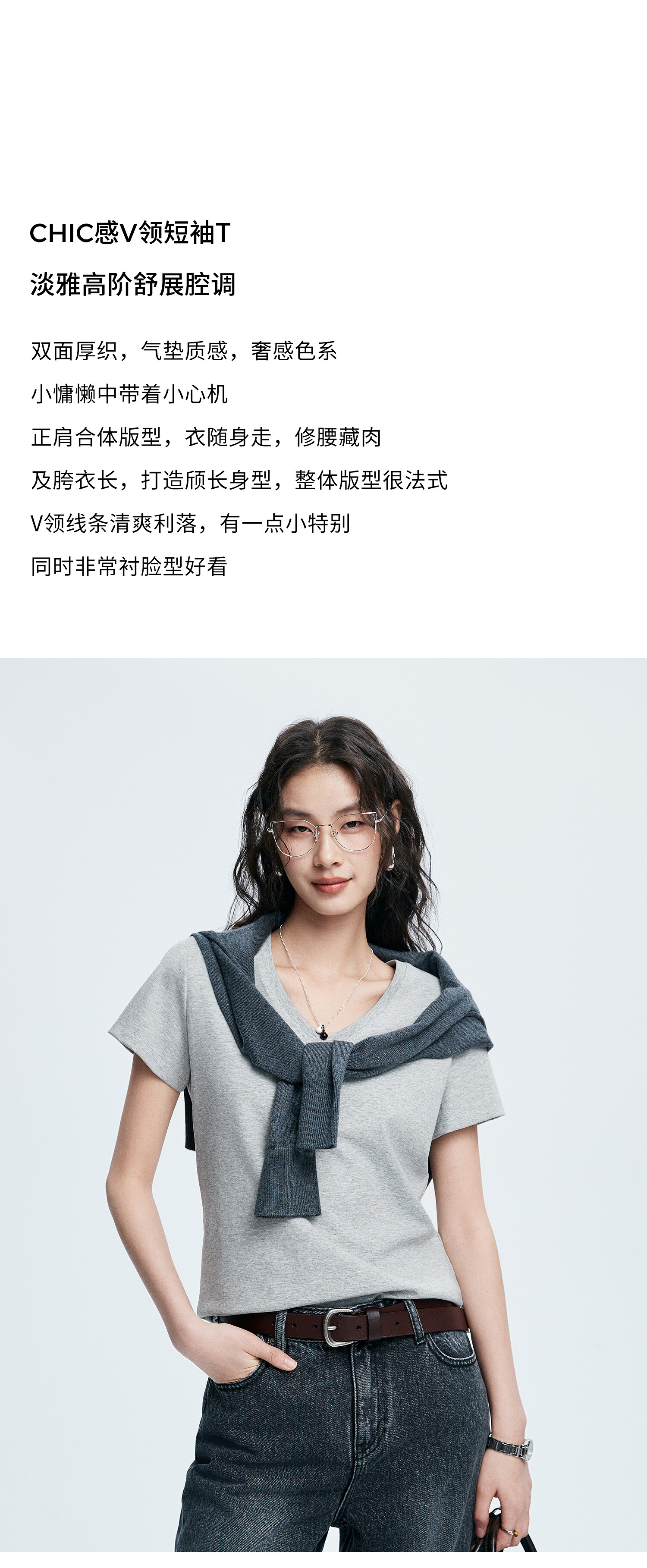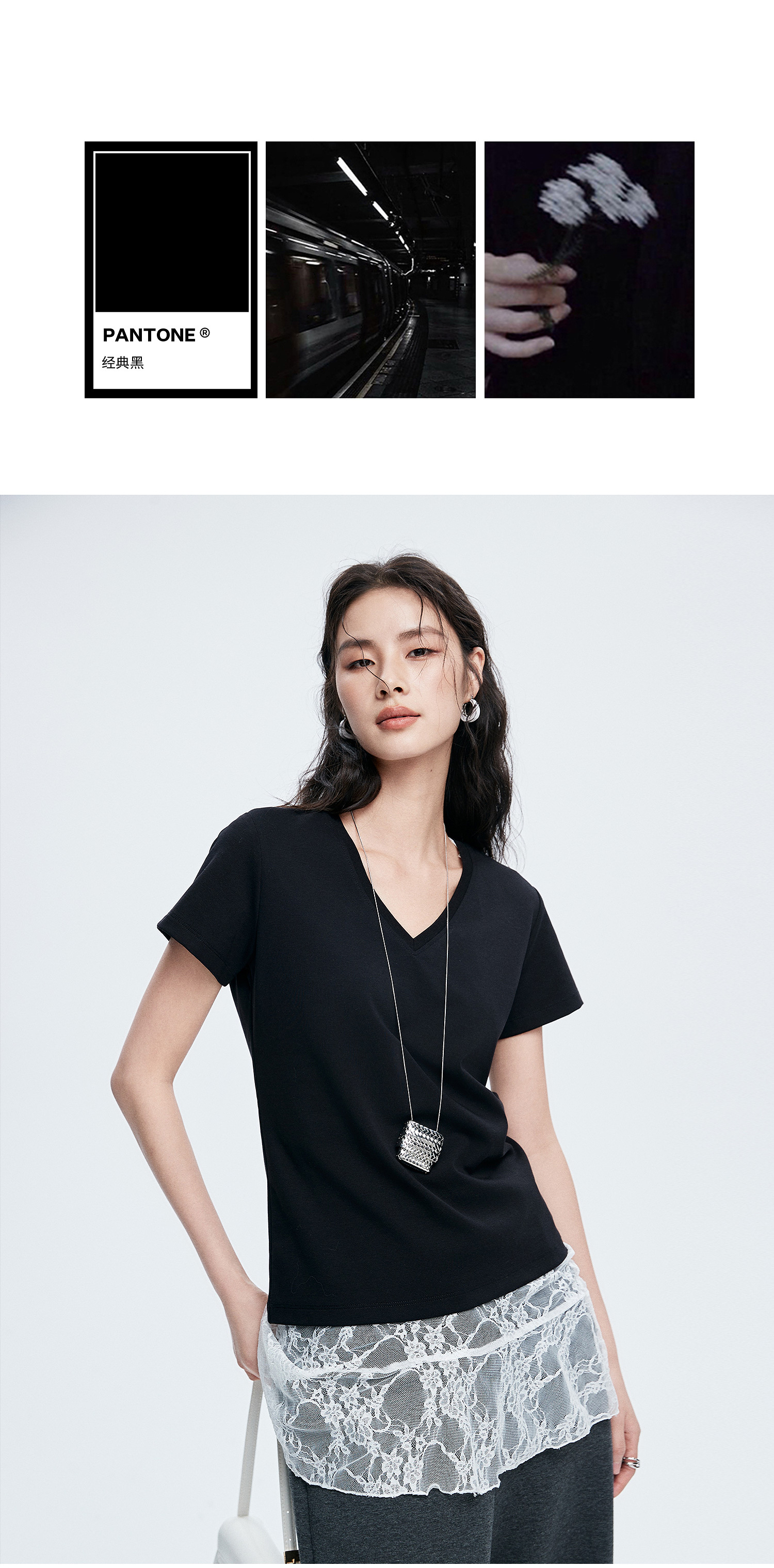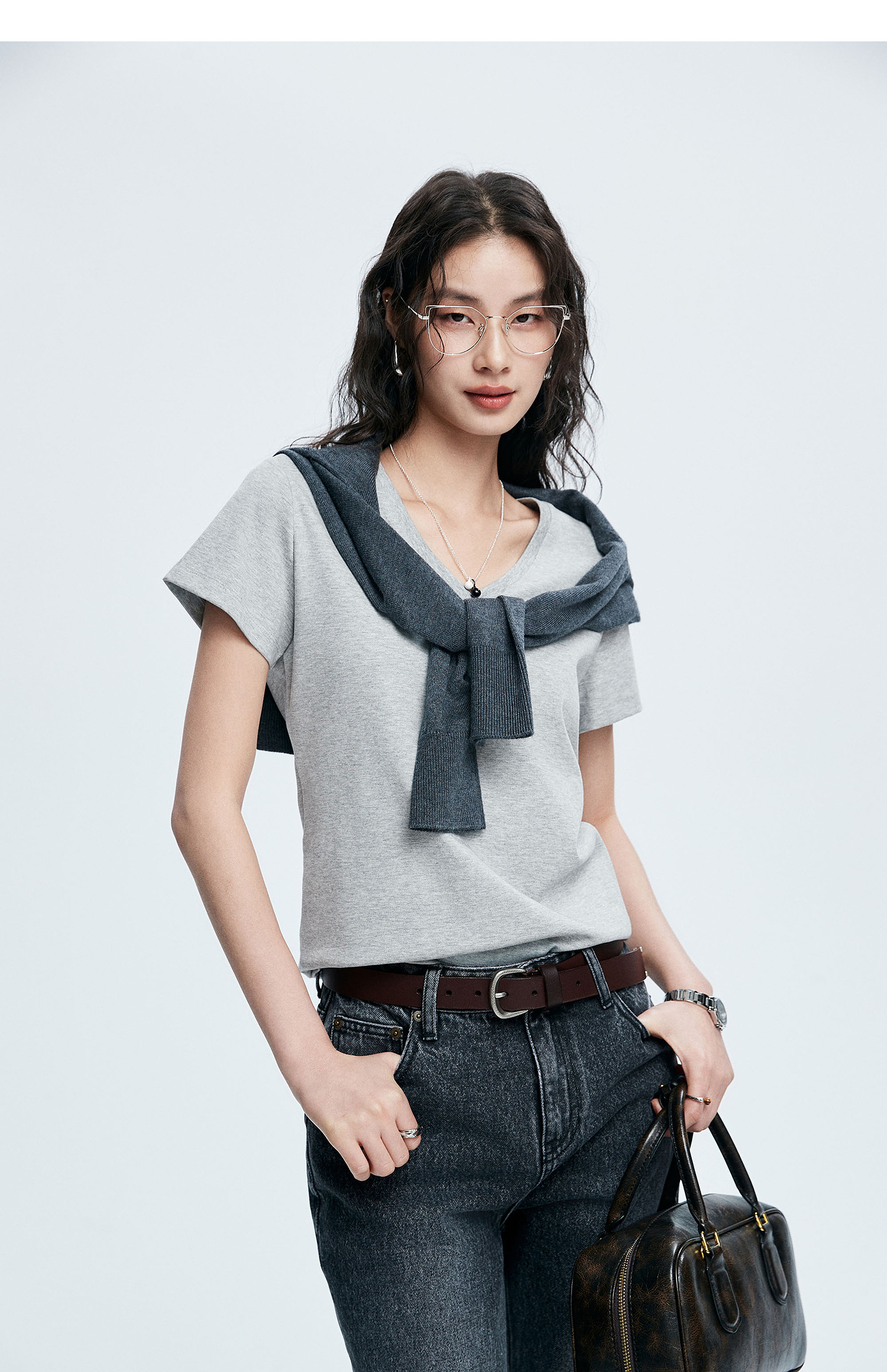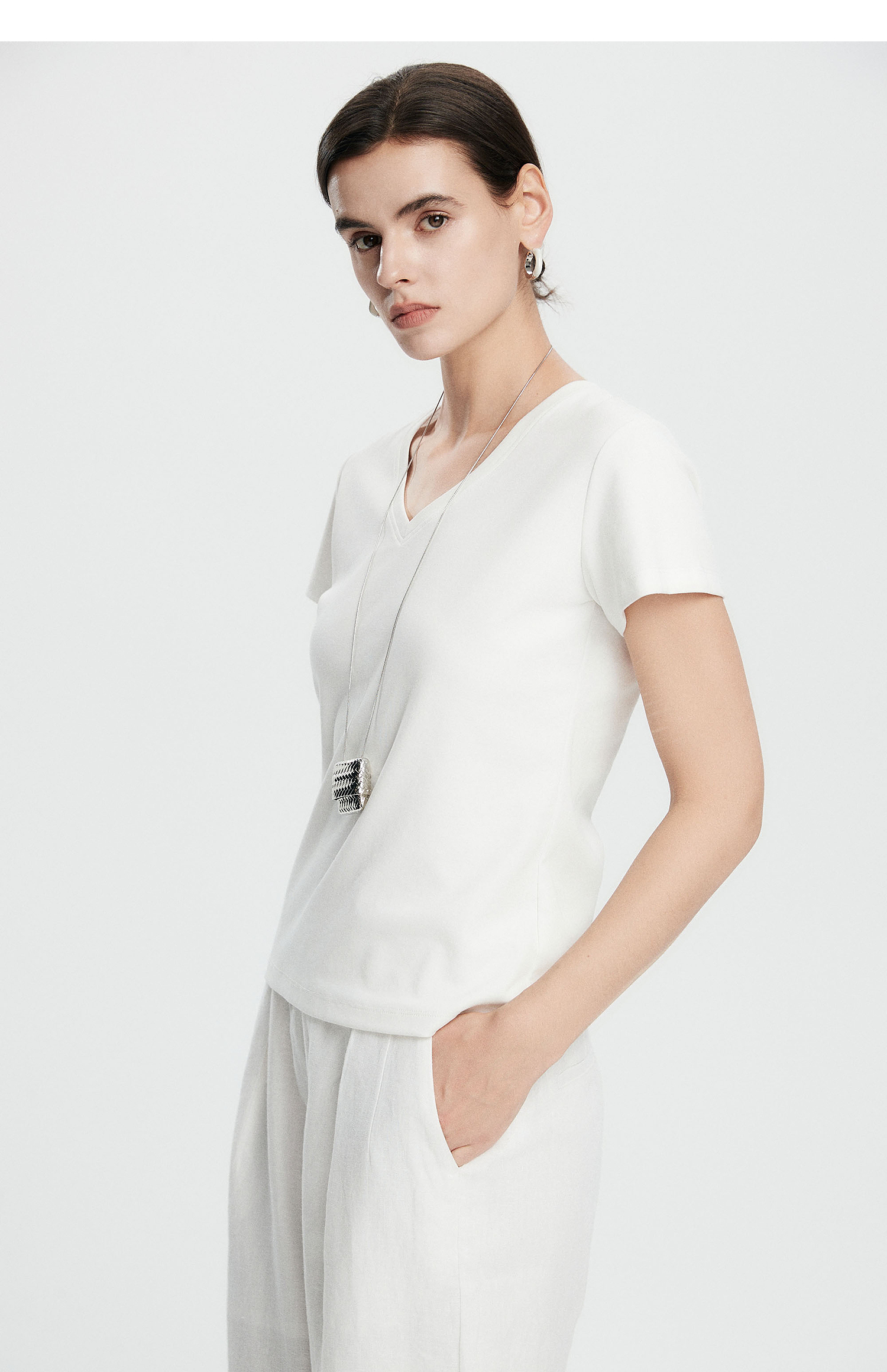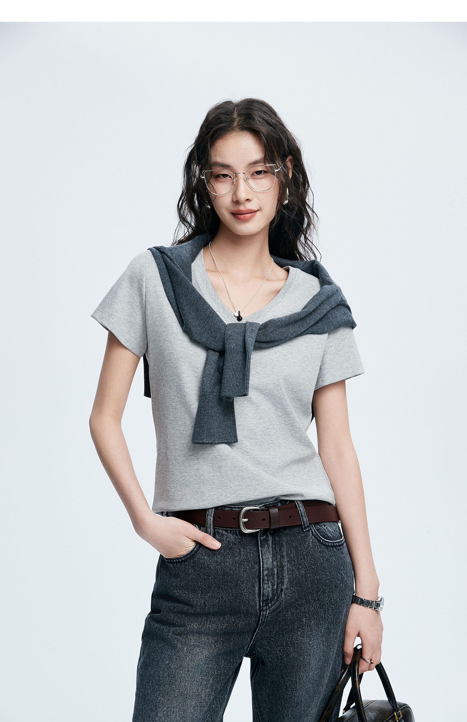 棉仓363601006-初棉丝柔棉简约V领正肩短袖T