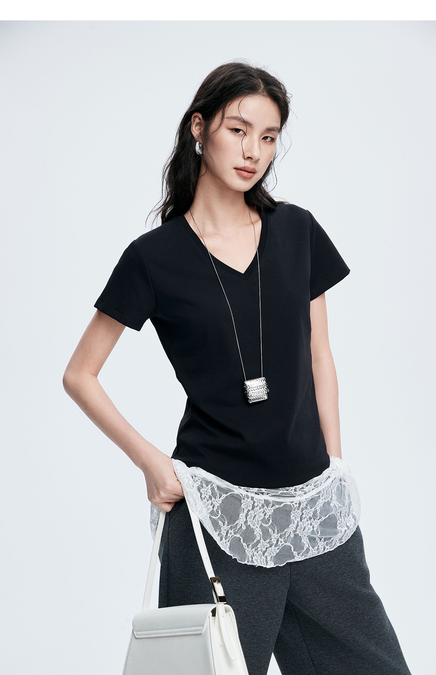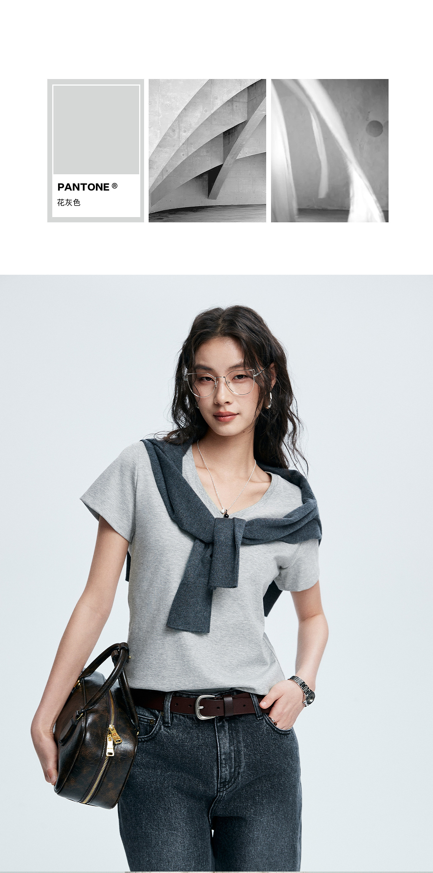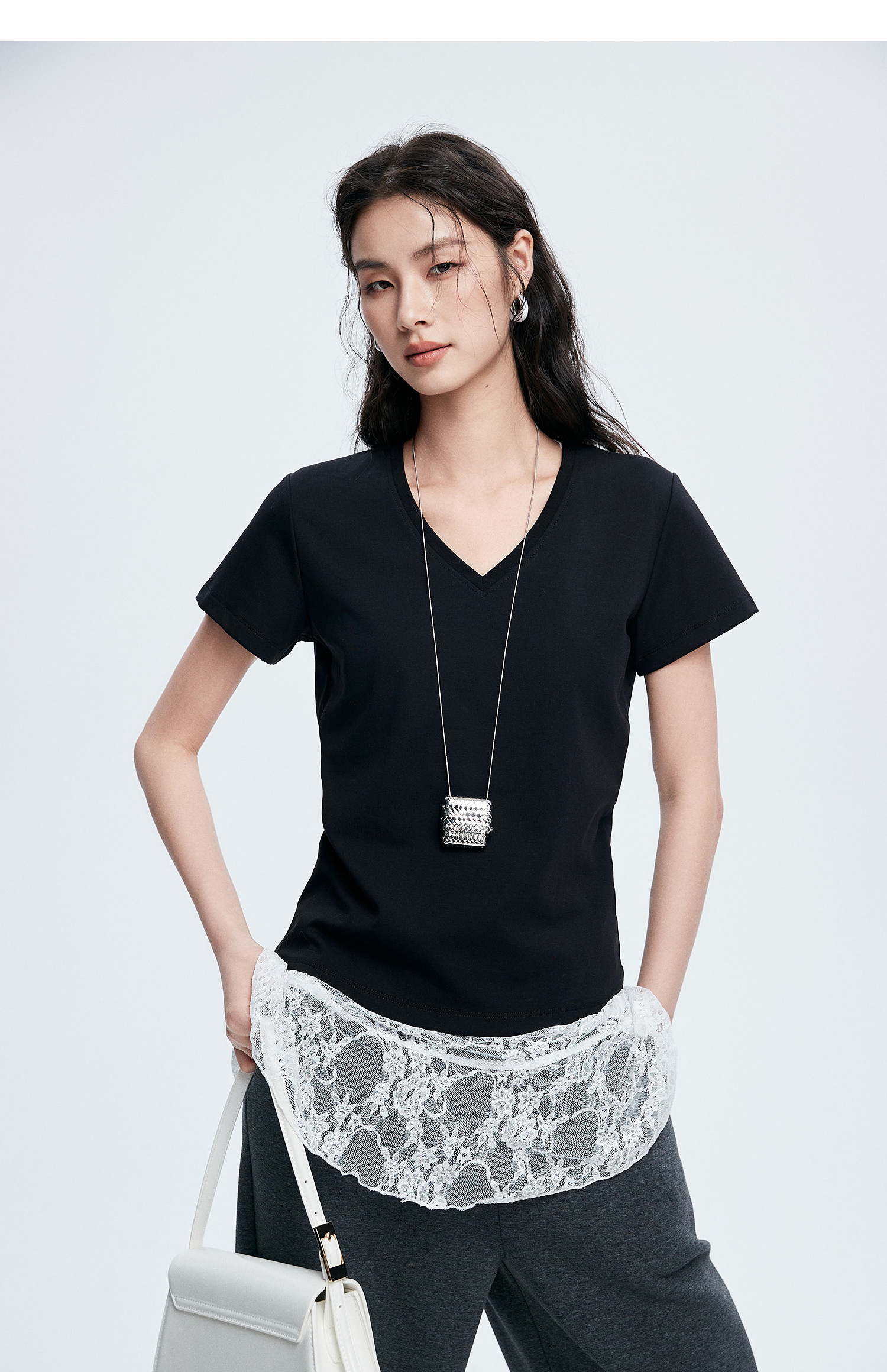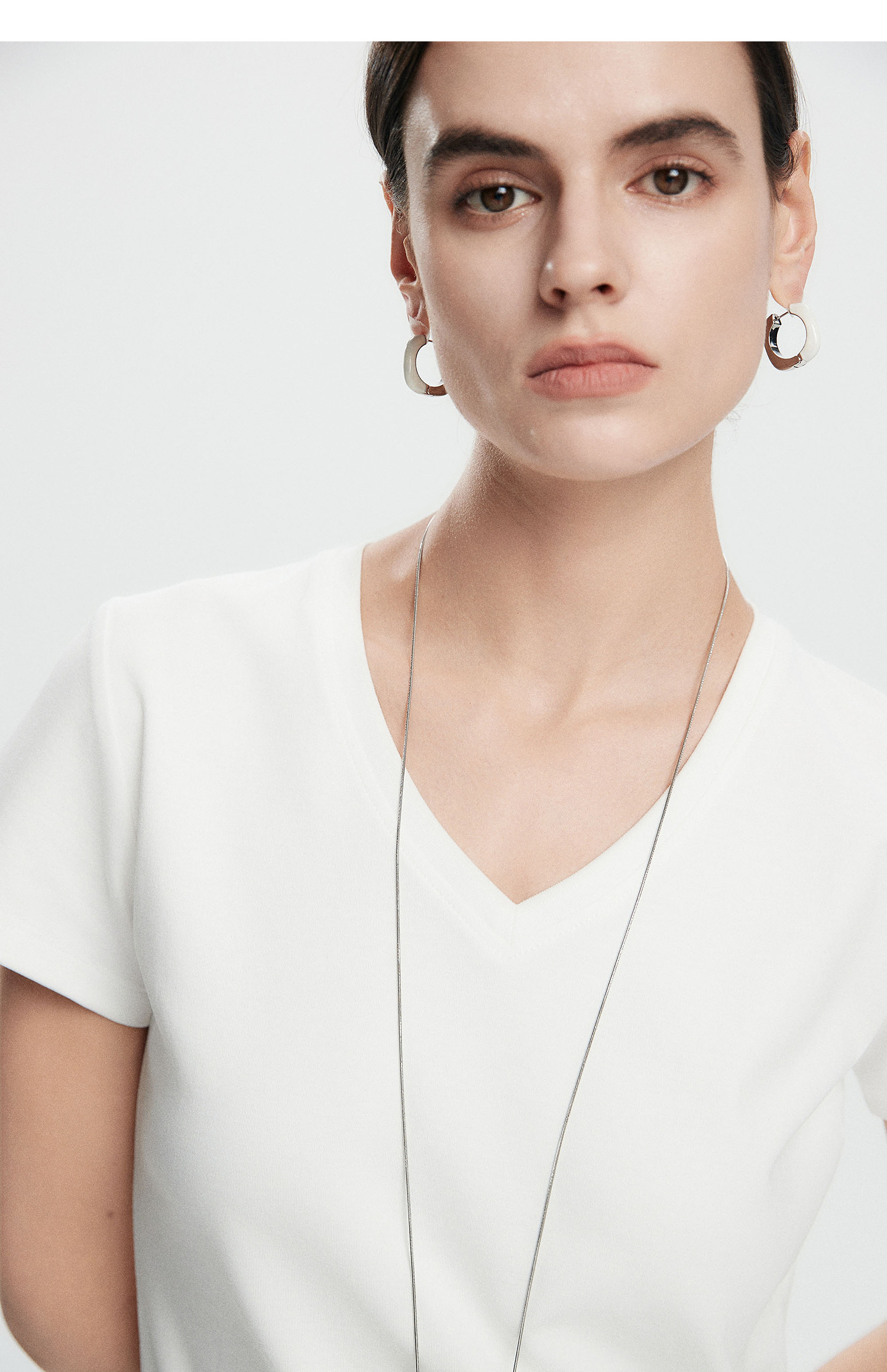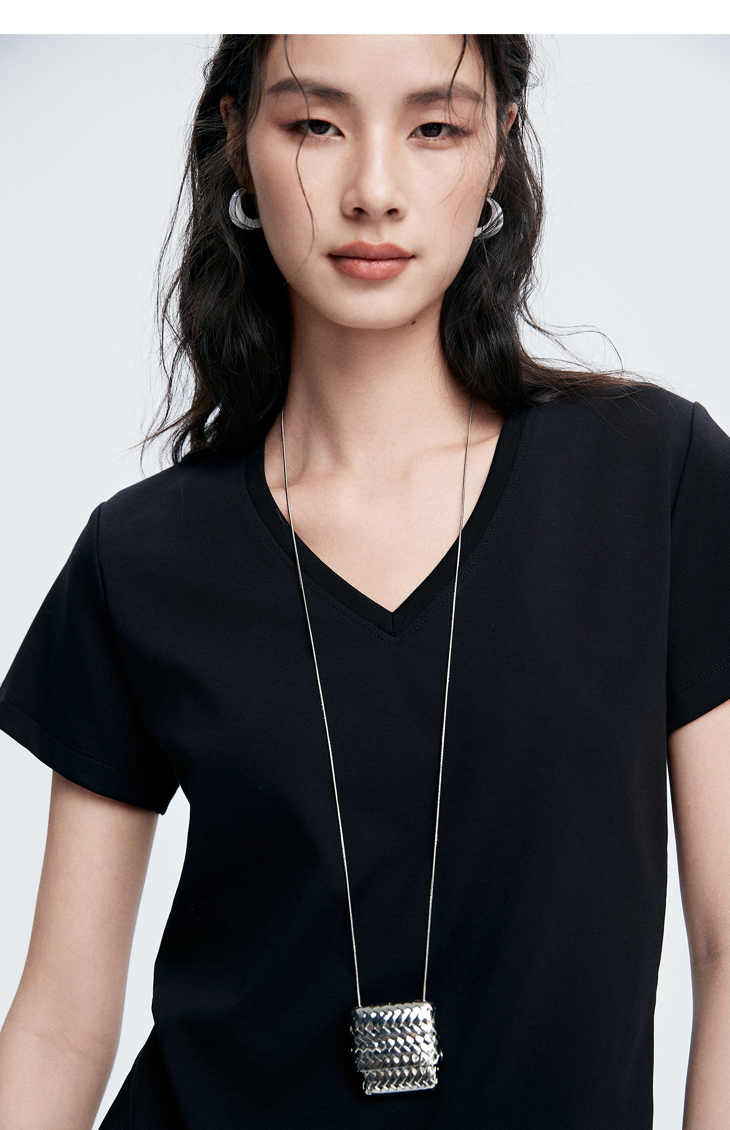 棉仓363601006-初棉丝柔棉简约V领正肩短袖T