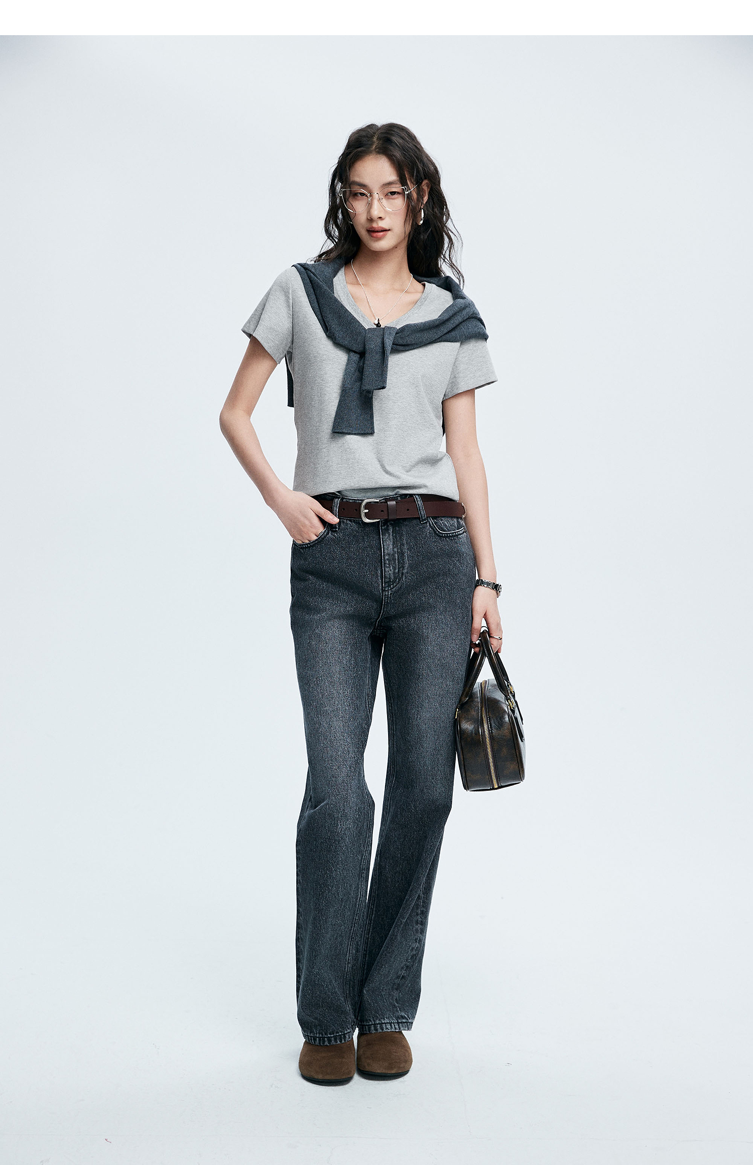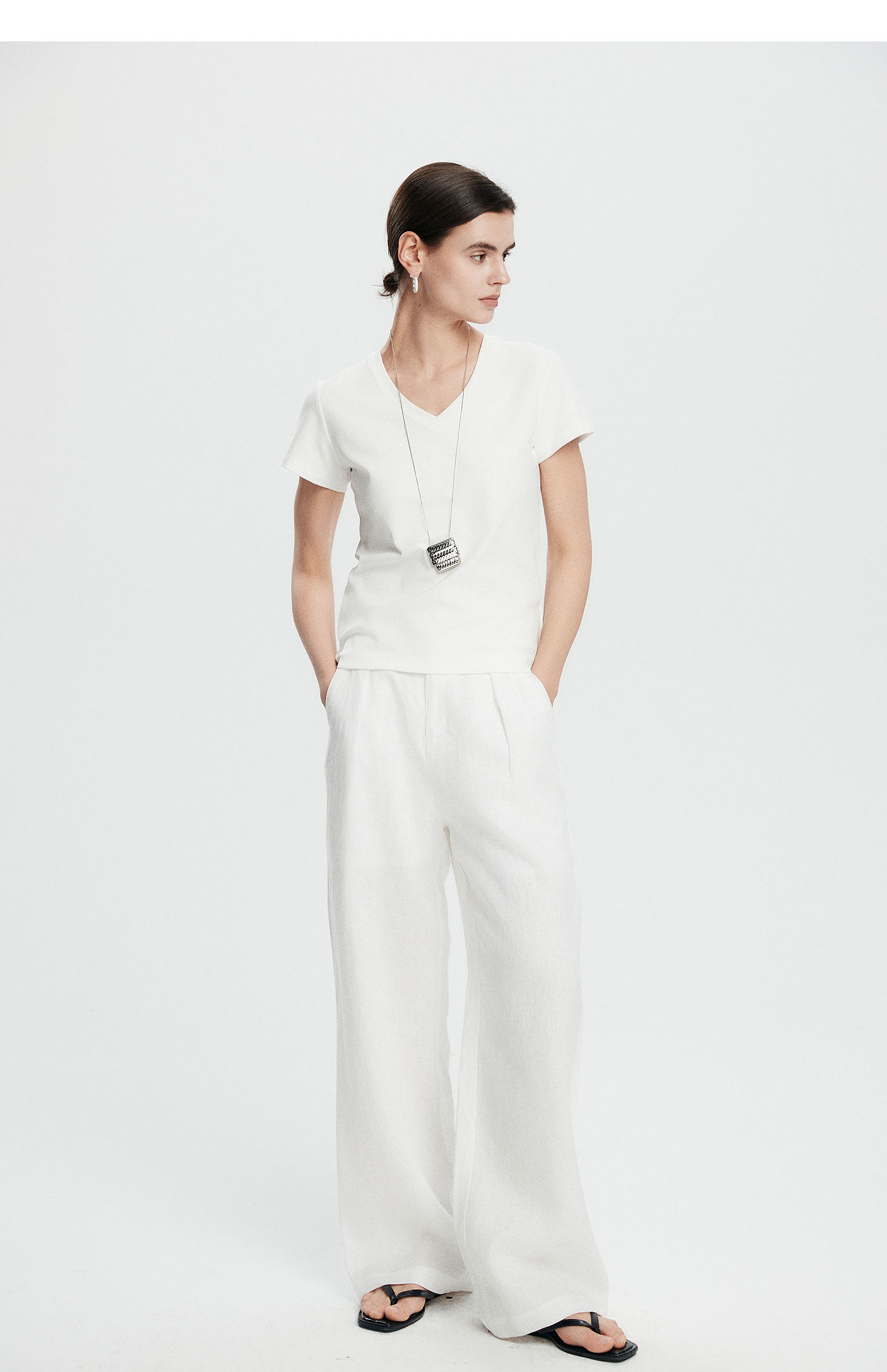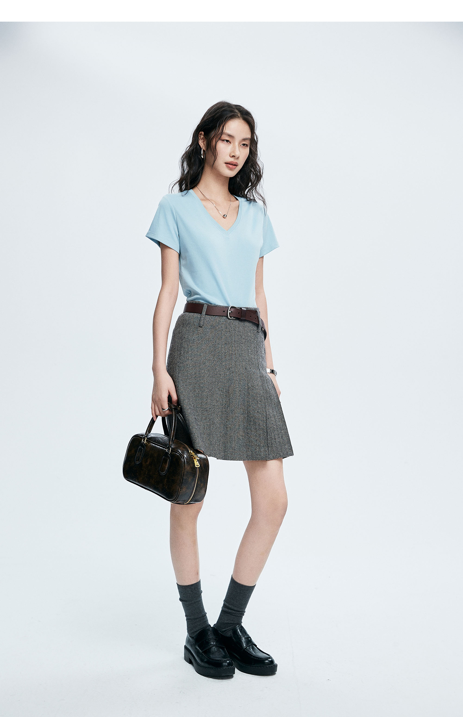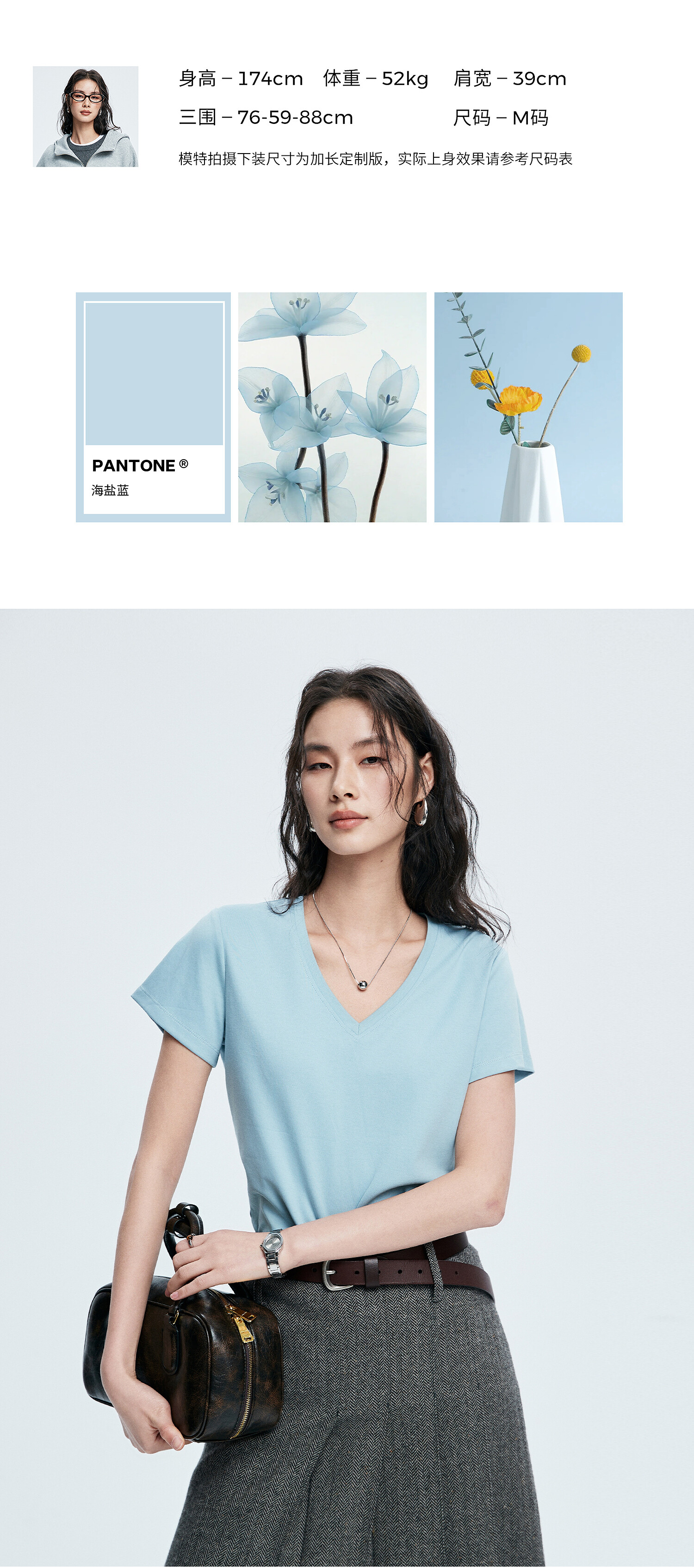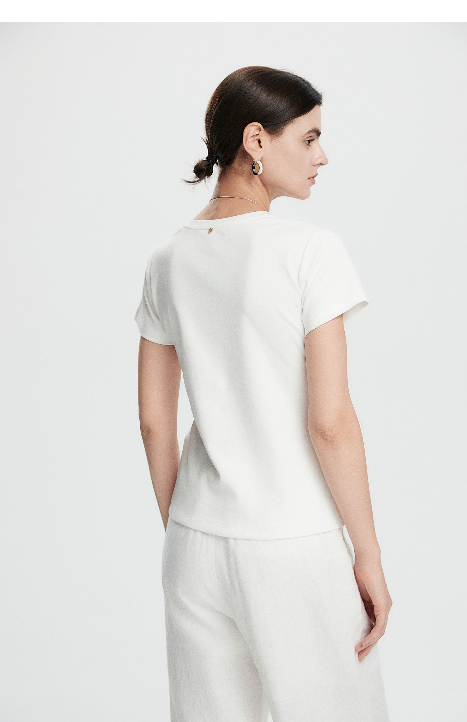 棉仓363601006-初棉丝柔棉简约V领正肩短袖T