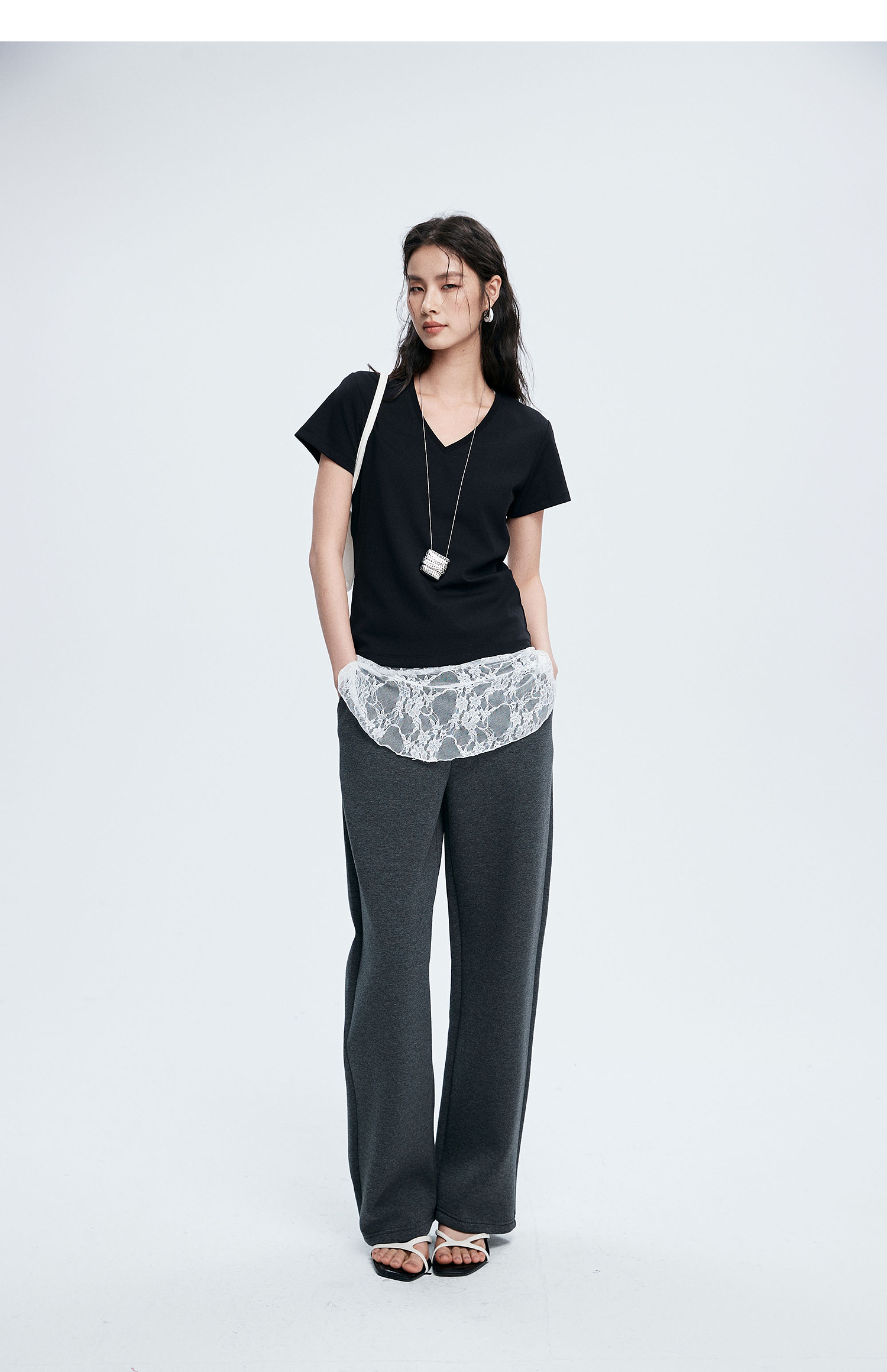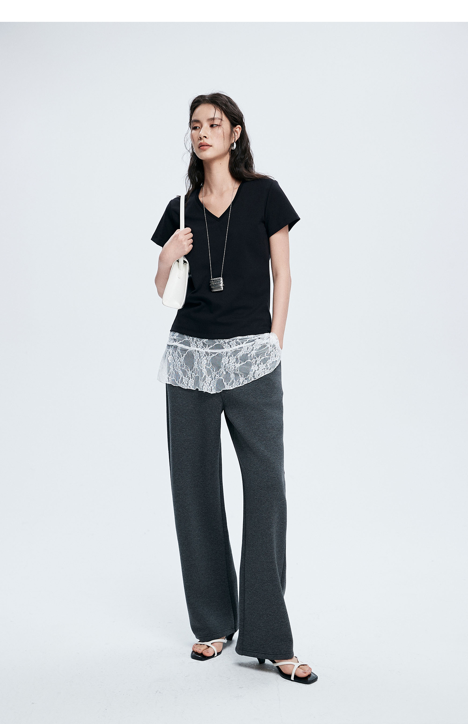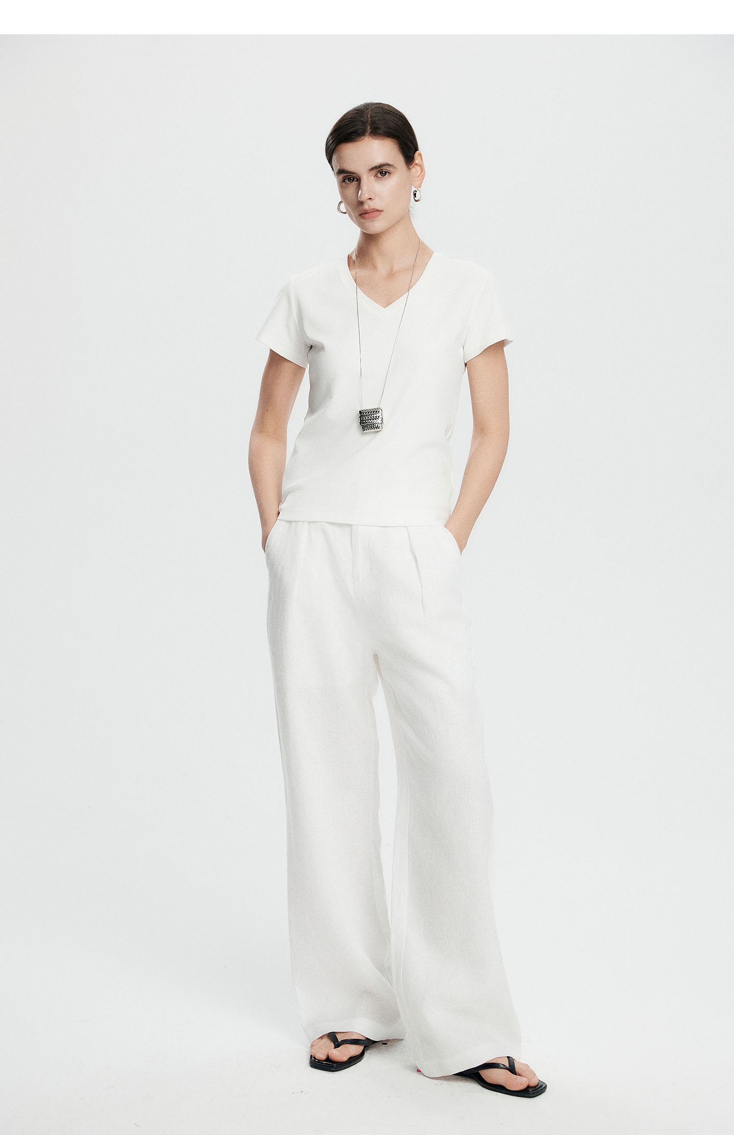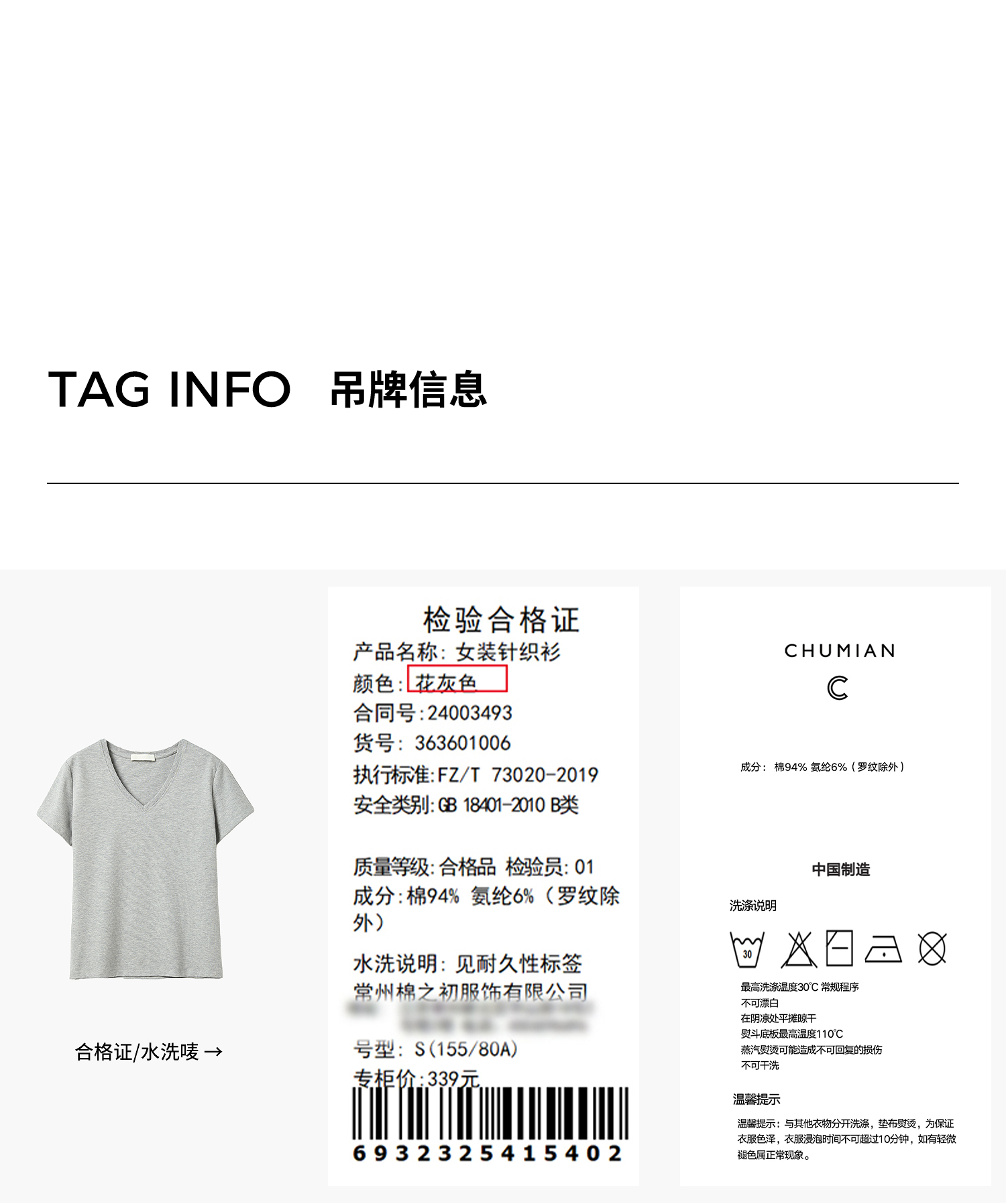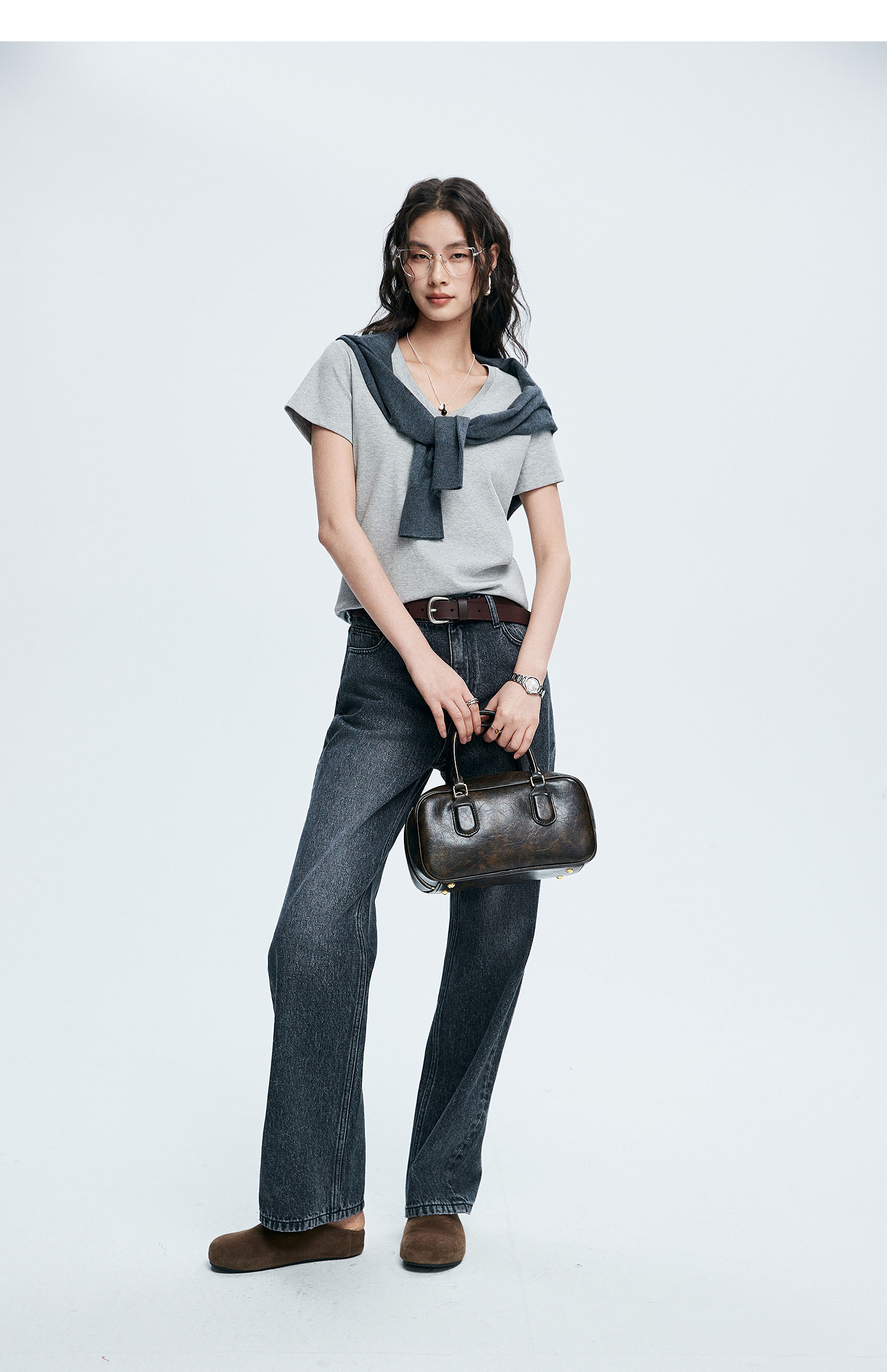 棉仓363601006-初棉丝柔棉简约V领正肩短袖T