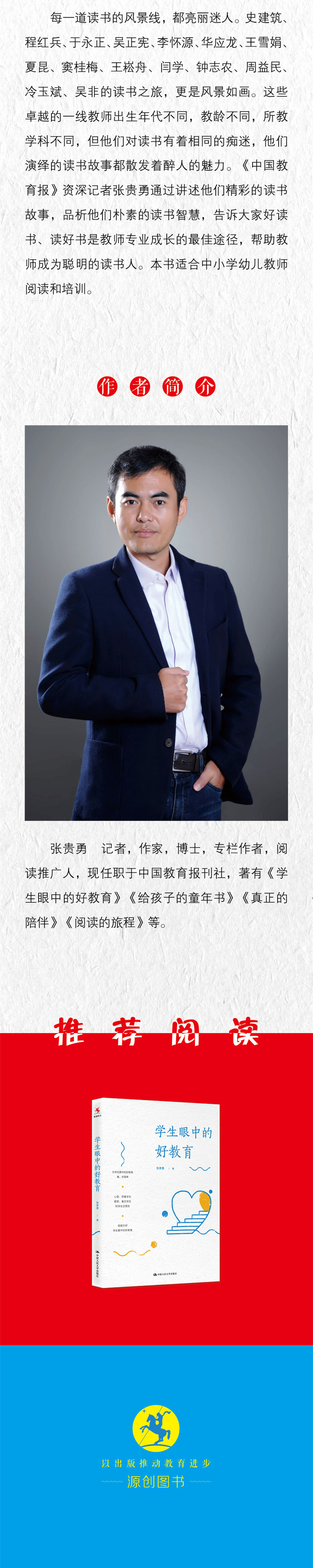 张贵勇:记者,作家,博士,专栏作者,阅读推广人,现任职于中国教育报刊社,著有《学生眼中的好教育》《给孩子的童年书》《真正的陪伴》《阅读的旅程》等。