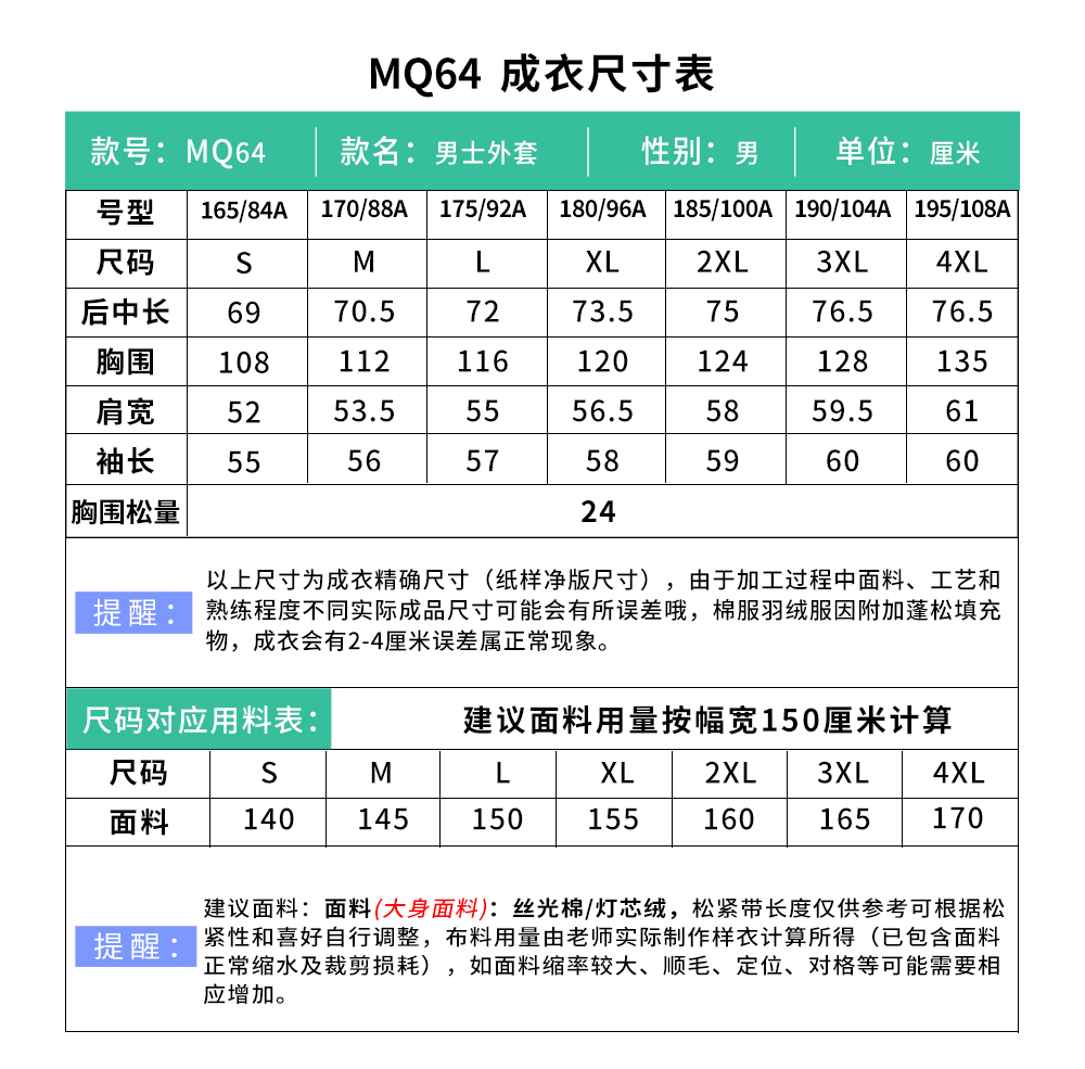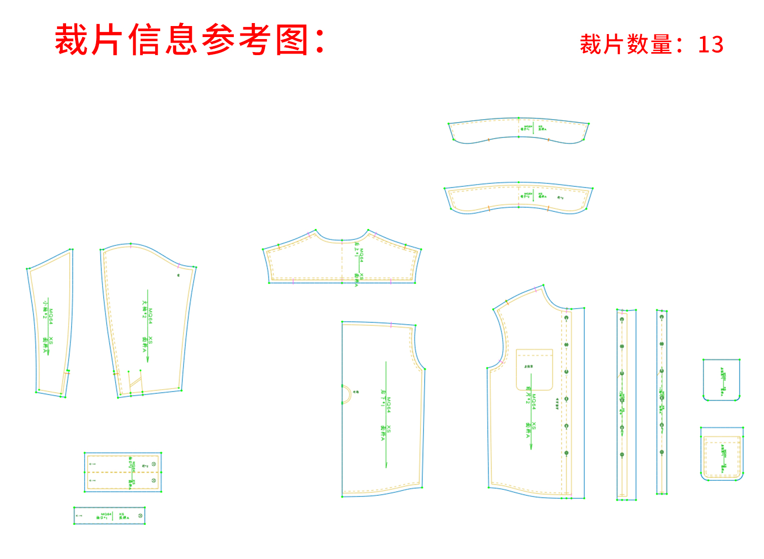 裁缝学苑MQ64翻领男士衬衫纸样男装衬衣上衣外套样板图纸版型