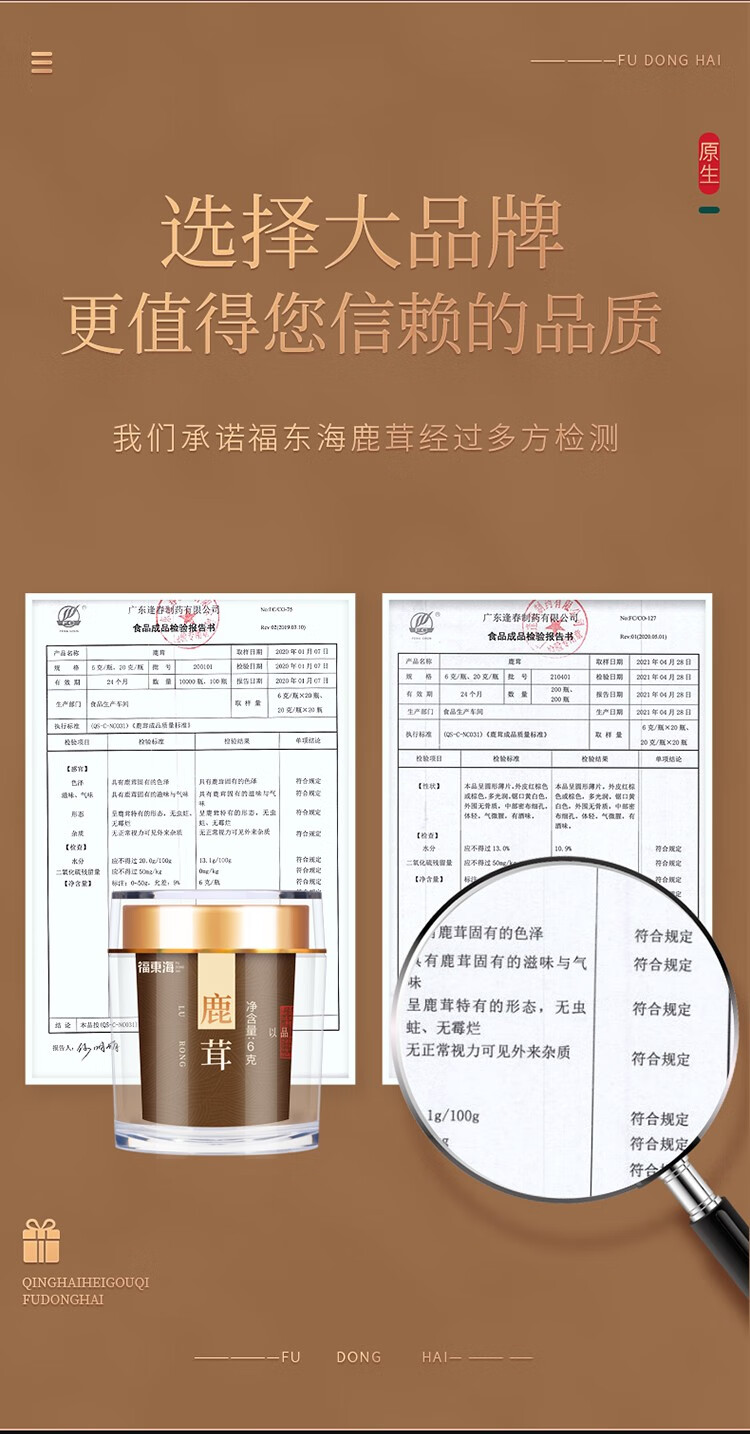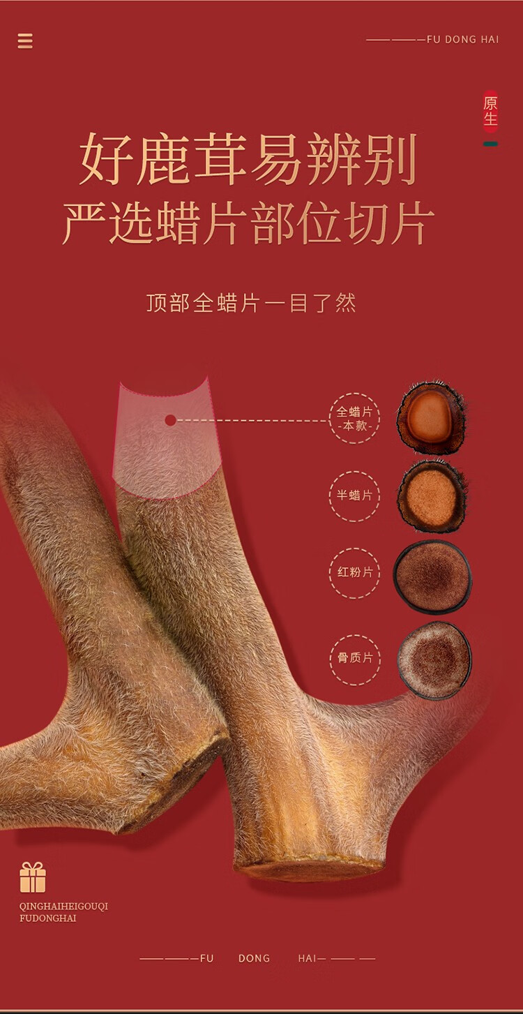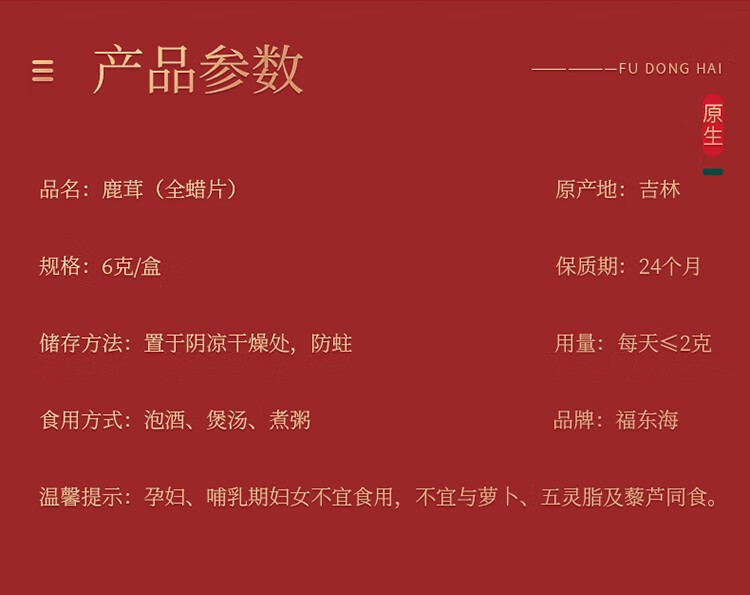 福东海 鹿茸片 鹿茸全蜡片 6克/瓶