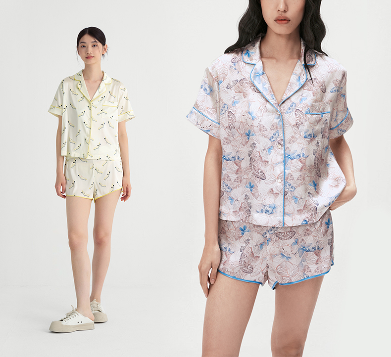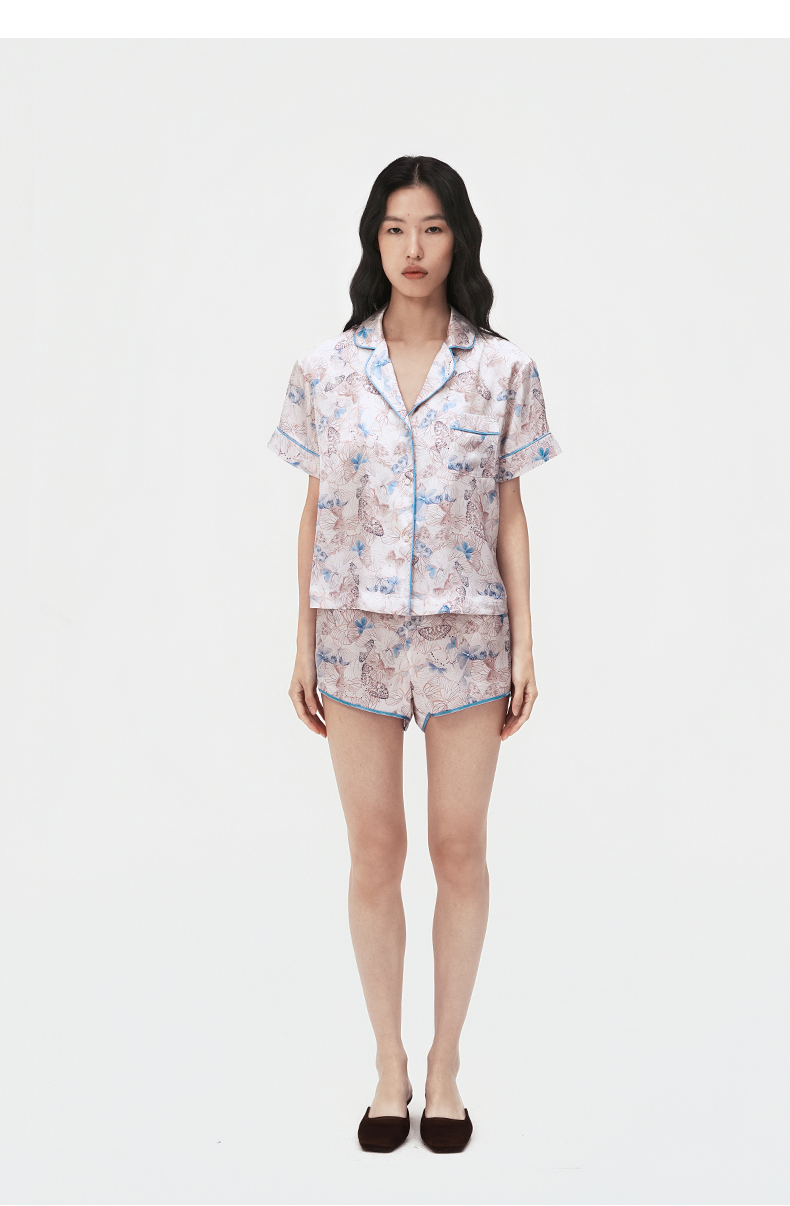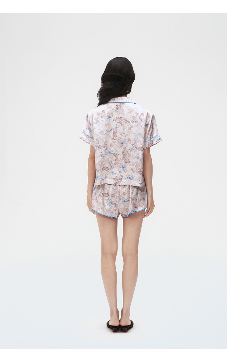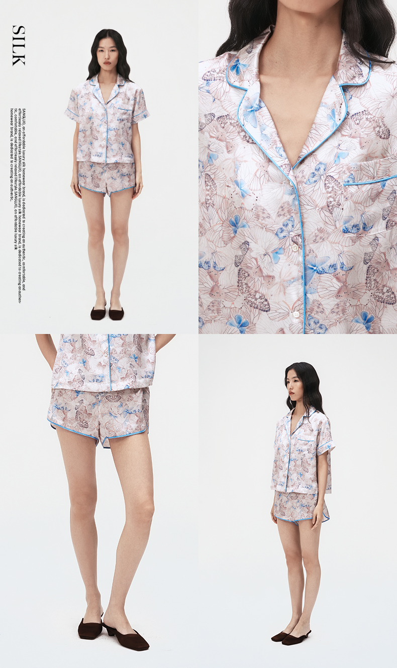 时髦印花』桑罗短袖睡衣套装桑蚕丝女休闲家居服可外穿