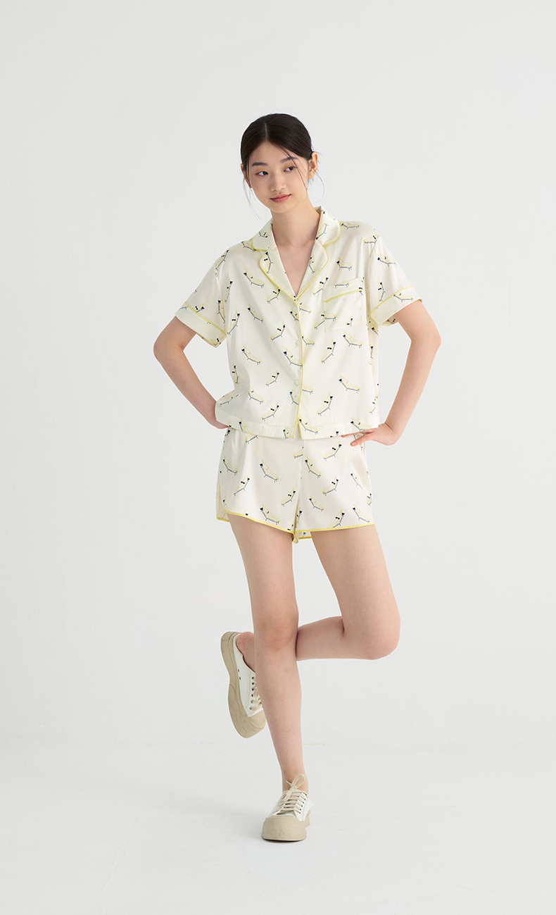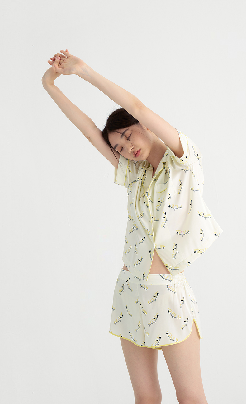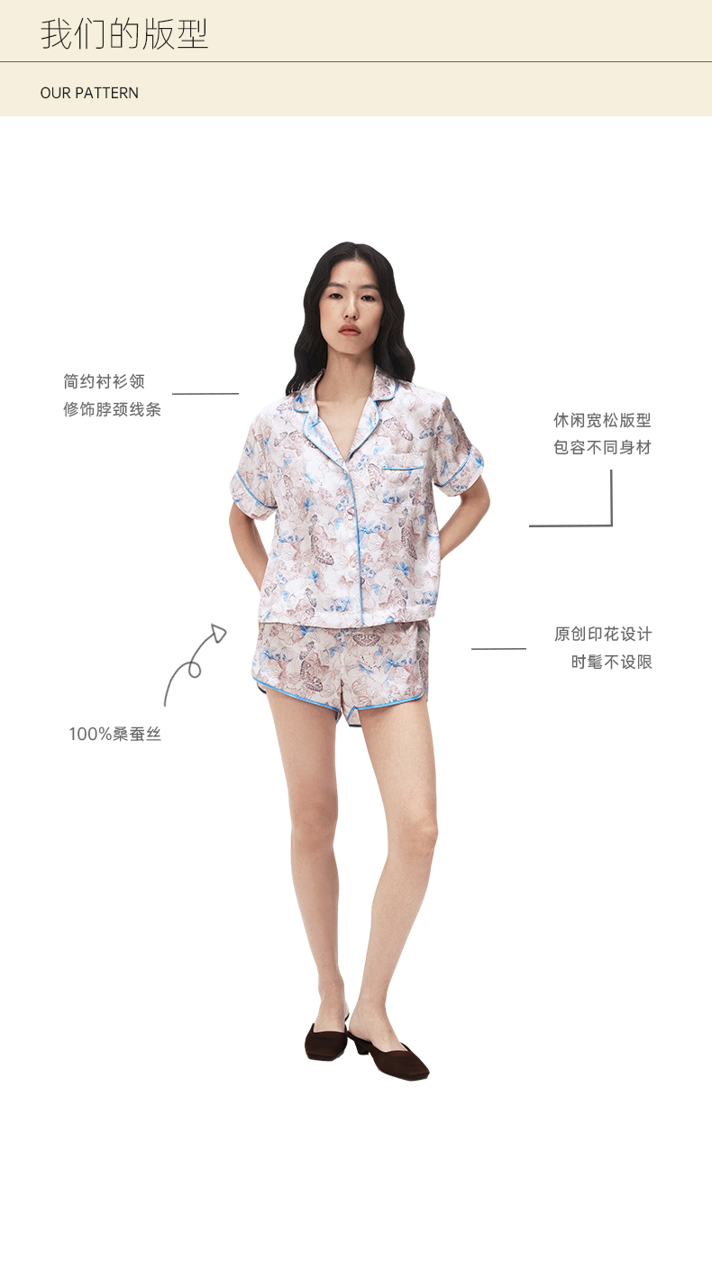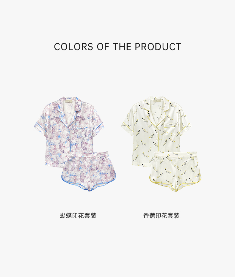 时髦印花』桑罗短袖睡衣套装桑蚕丝女休闲家居服可外穿
