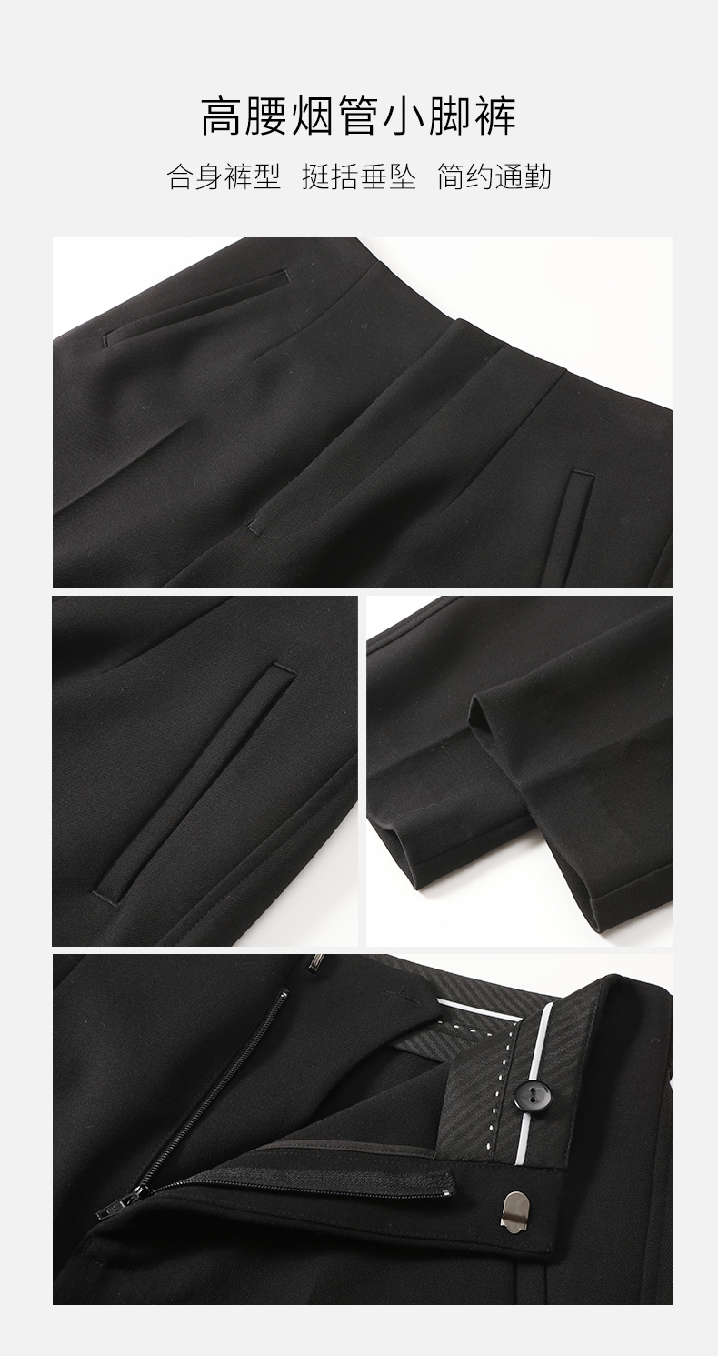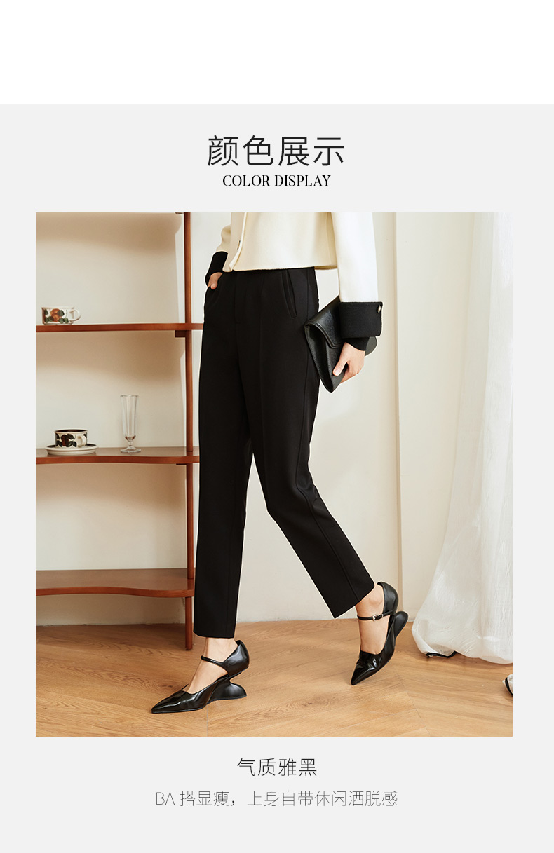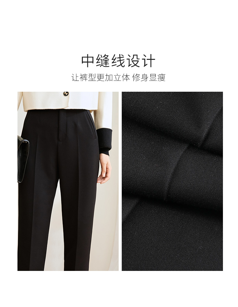 玳莎冬季新款黑色休闲烟管裤女高腰显瘦垂感通勤直筒西装裤 DC36308