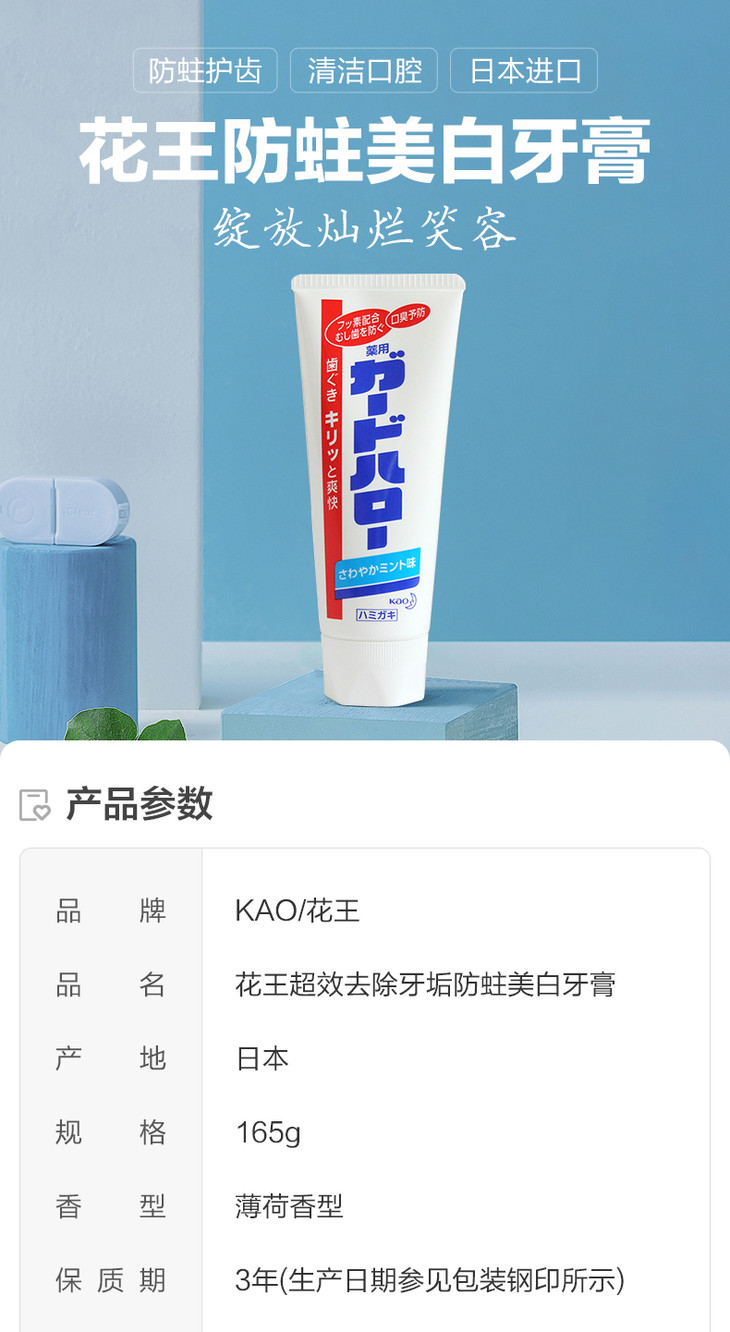 花王超效去除牙垢防蛀美白牙膏165g(21001205)【21001205】