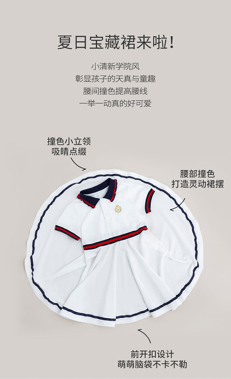 贝贝怡甜美短袖连衣裙女童时尚白色2022年夏季新款女宝高档公主裙