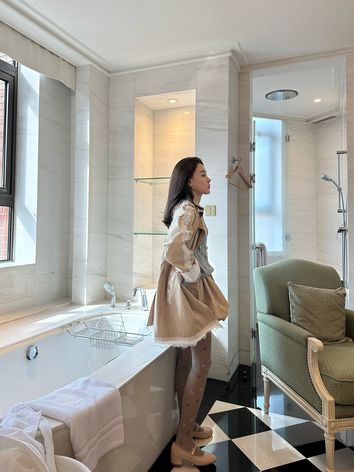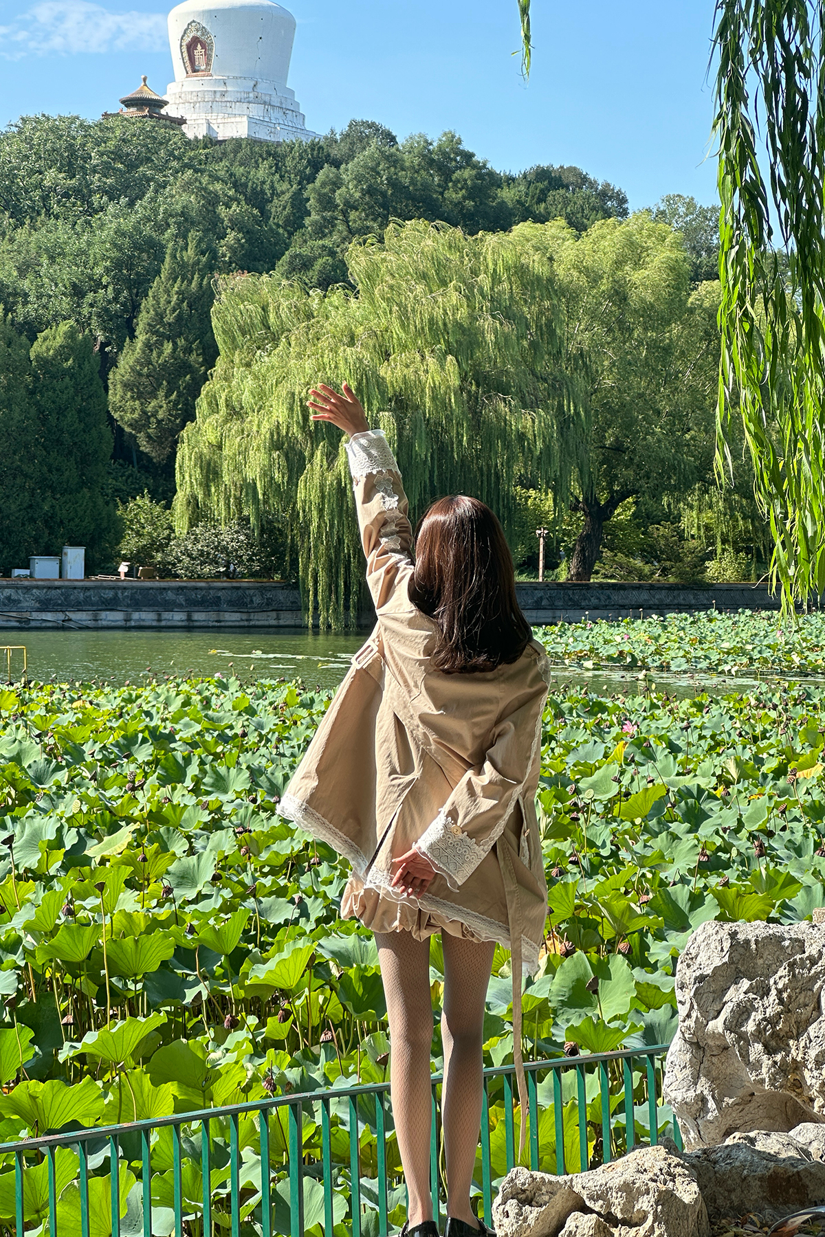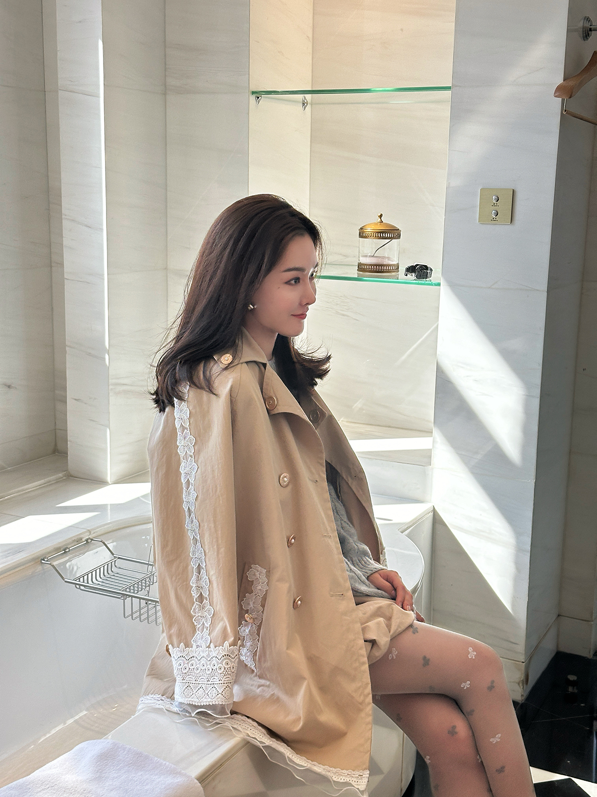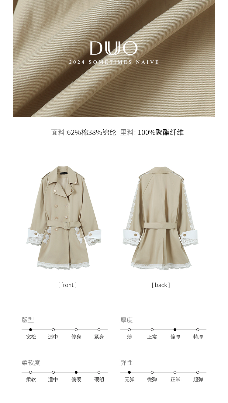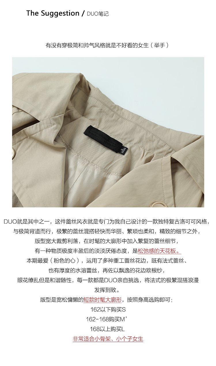 DUO智仙生 黑标 华丽洛可可法式混搭蕾丝花边慵懒浪漫zhong工风衣