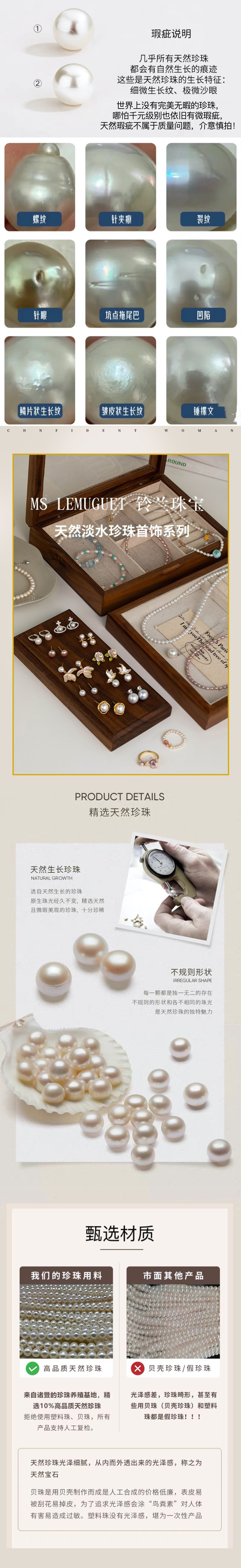 天然淡水珍珠属于自然生长的珍珠即便是千元万元的产品也不可避免会有生长纹、斑点、螺纹等小瑕疵,请和产品价值对等看待,没有完美无瑕的珍珠,除非人造珍珠;