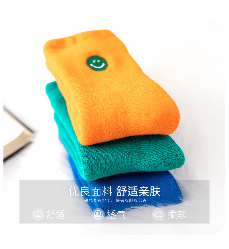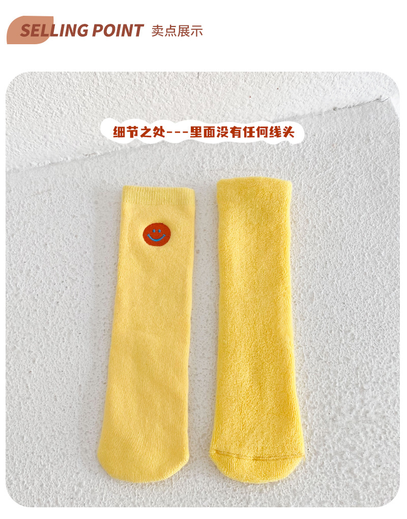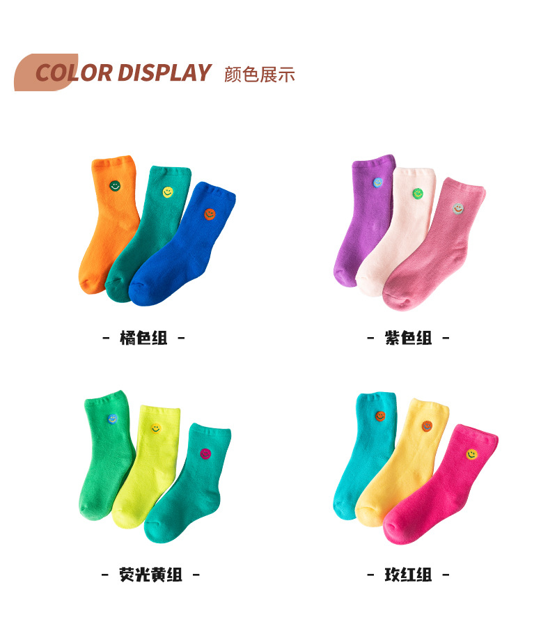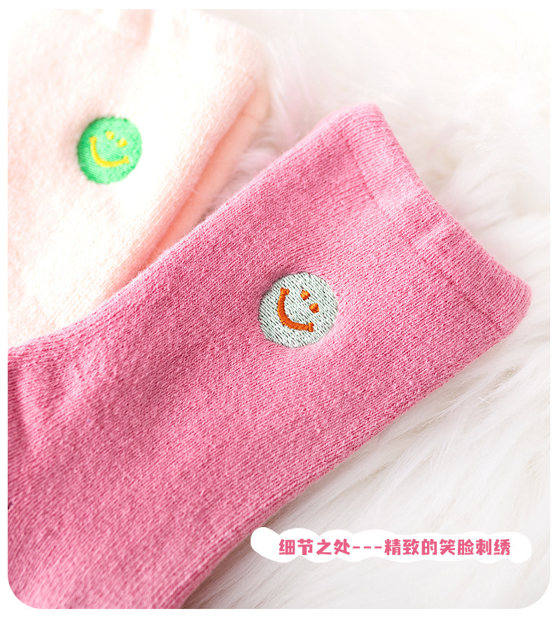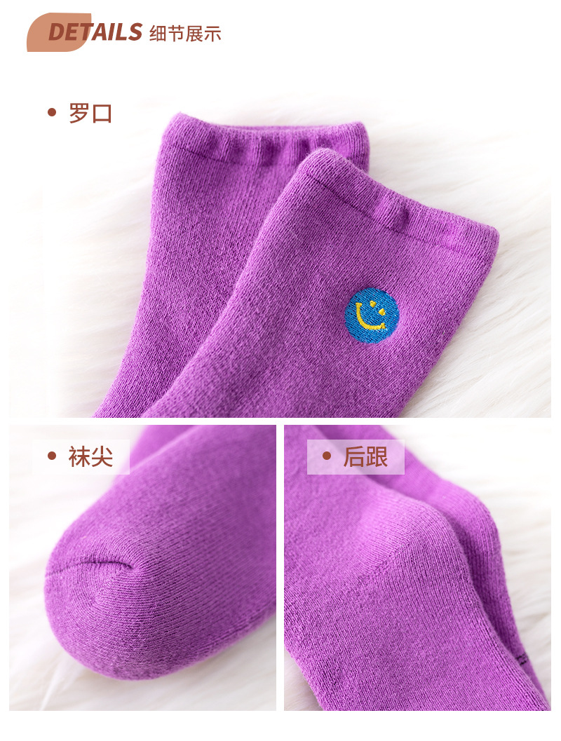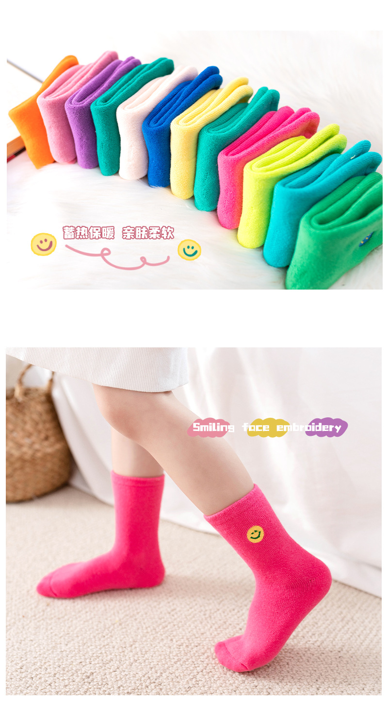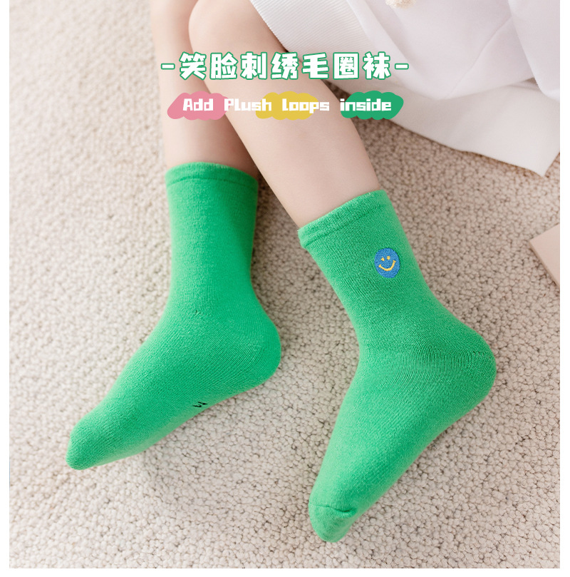 【3双装 蓄热保暖 多彩柔软无线头】刺绣笑脸儿童袜子秋冬儿童中筒袜 男童女童童袜 加厚毛圈儿童袜子