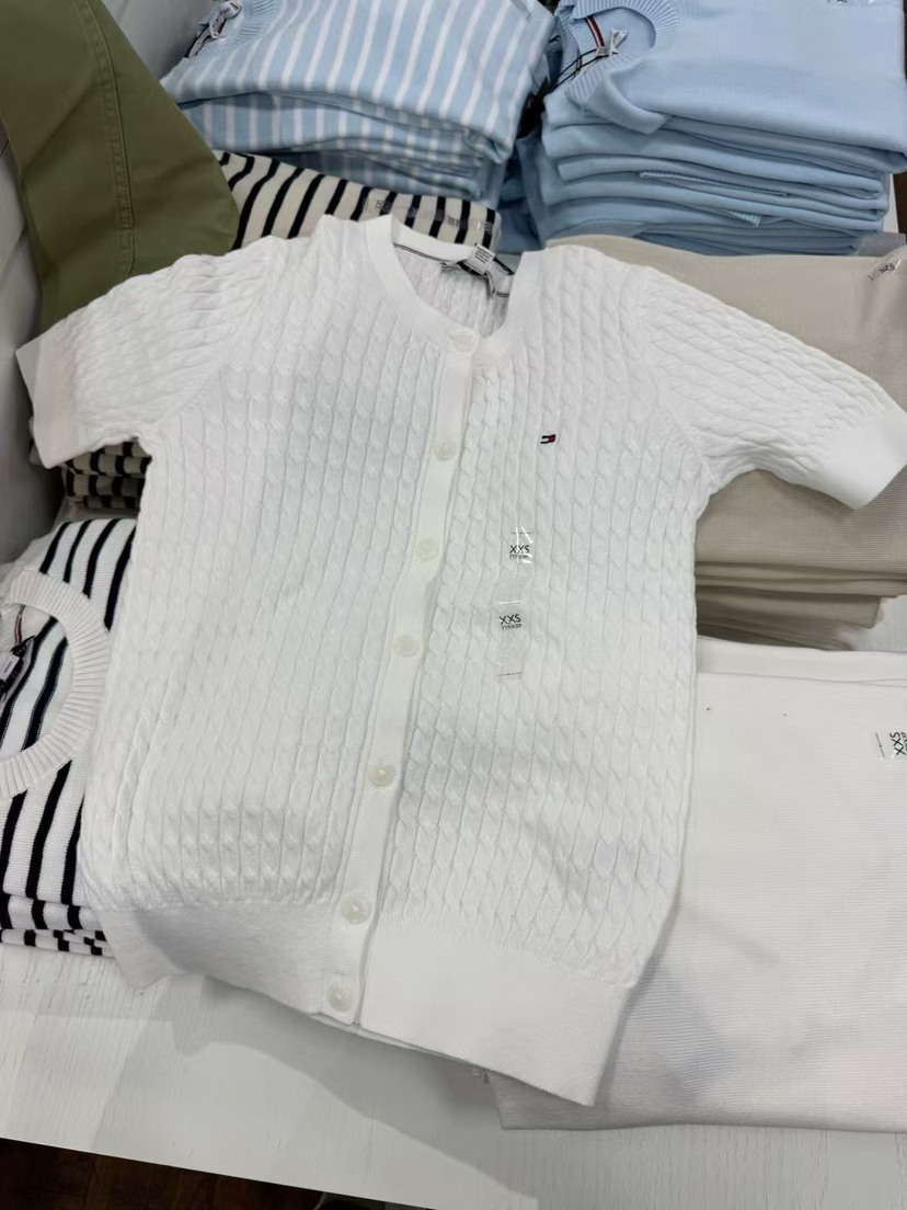 终于有折💰399元直邮🇺🇸Tommy女款短麻花开衫,纯棉材质质感柔软,新款的半袖毛衣真好看🔥都是白扣,有一些羊毛混纺