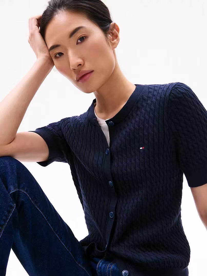 新款上架🇺🇸Tommy女款短麻花开衫,纯棉材质质感柔软,今年的半袖毛衣真的好🔥啊,3色可选