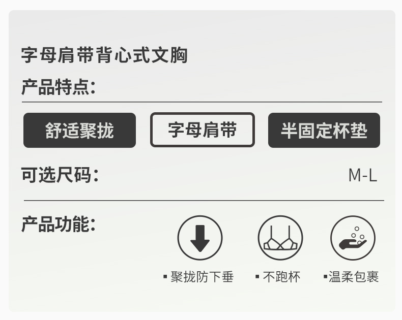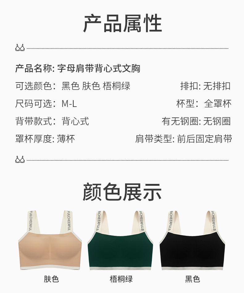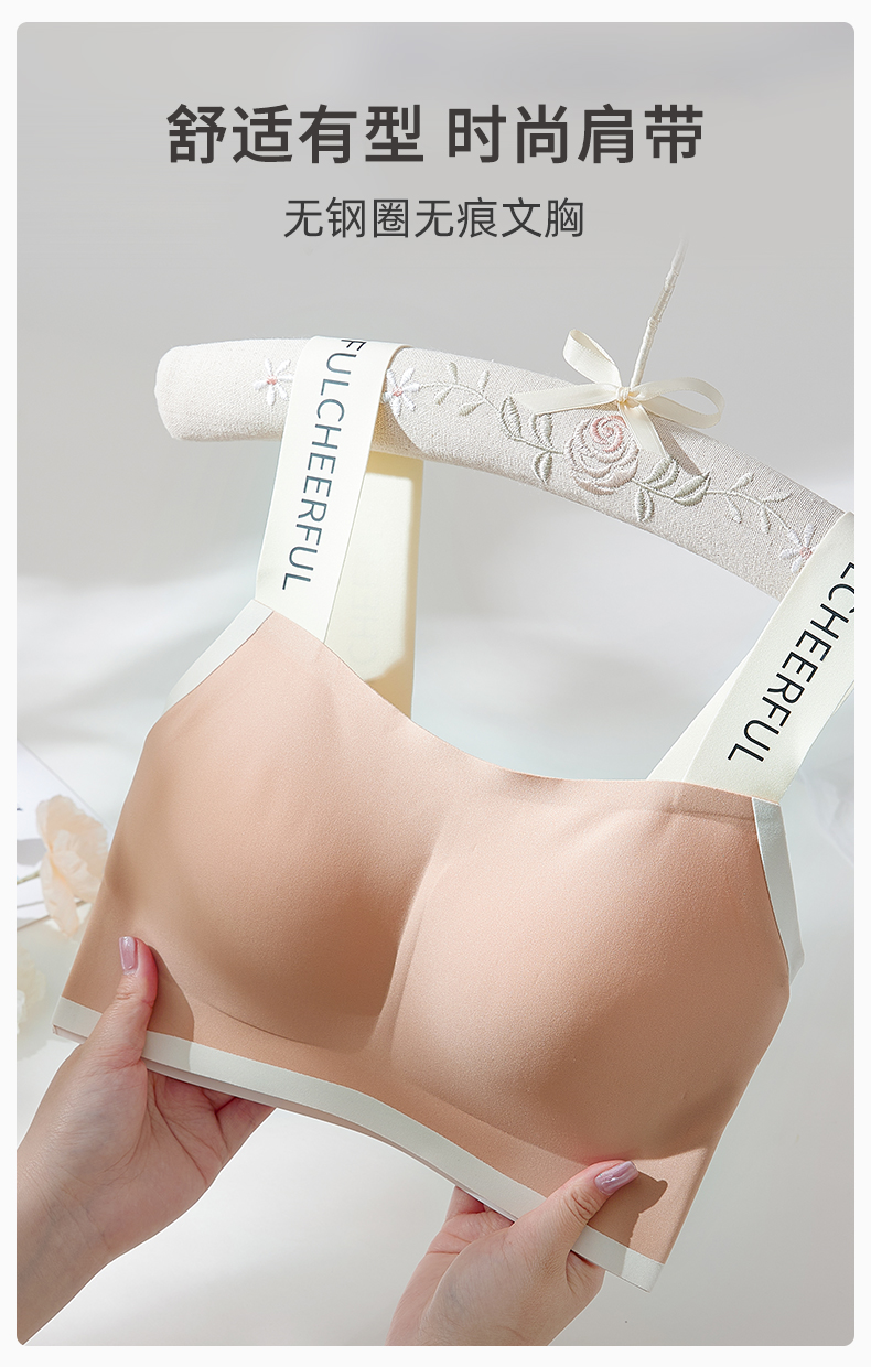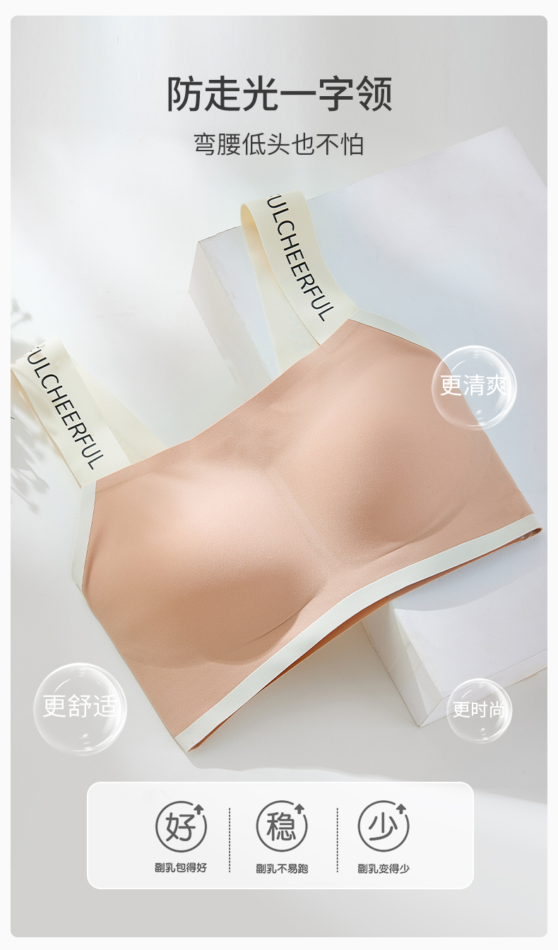 雅黛俪内衣女时尚字母肩带舒适有型无痕聚拢一字领抹胸运动型文胸