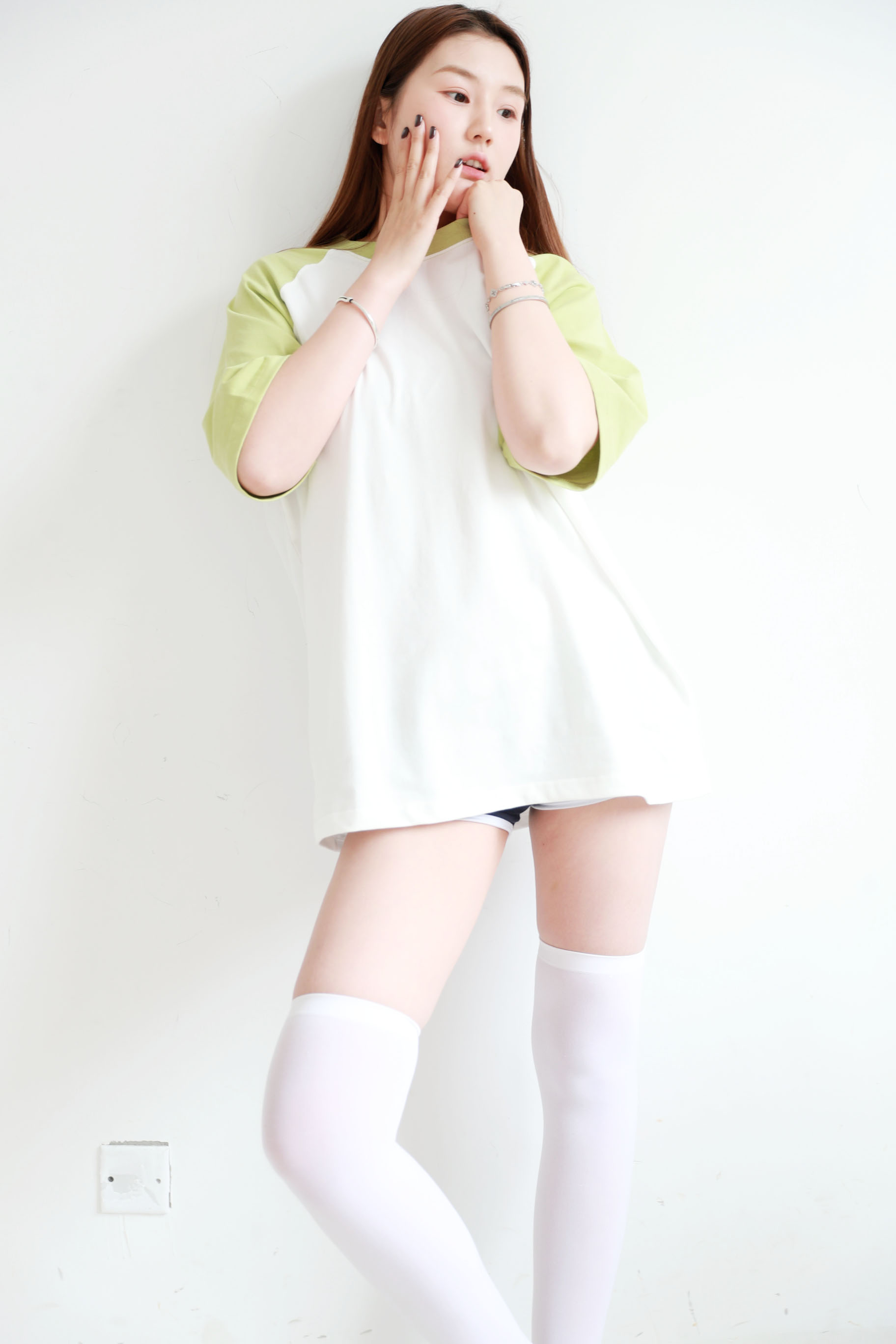 Oversize手编刺绣tee,牛油果配色。宽松风格纯棉基础t恤E032668