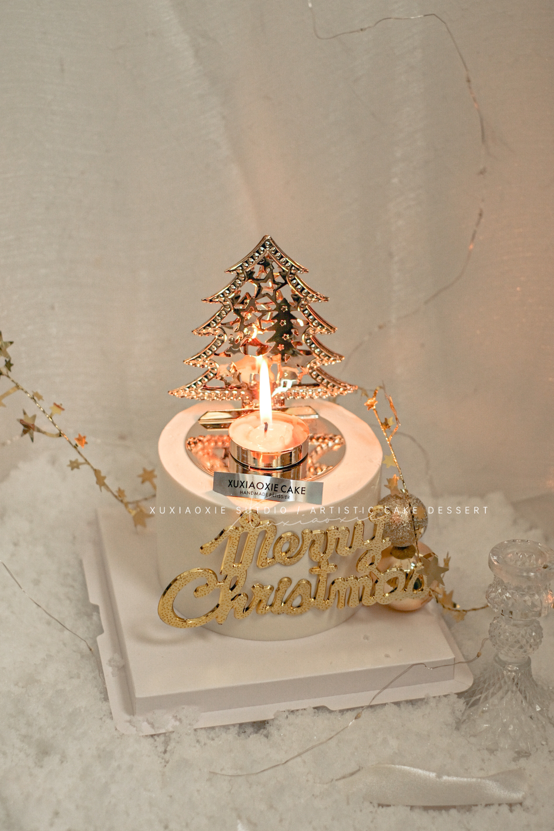 圣诞限定|金色圣诞树蛋糕,草莓夹心,奶油抹面