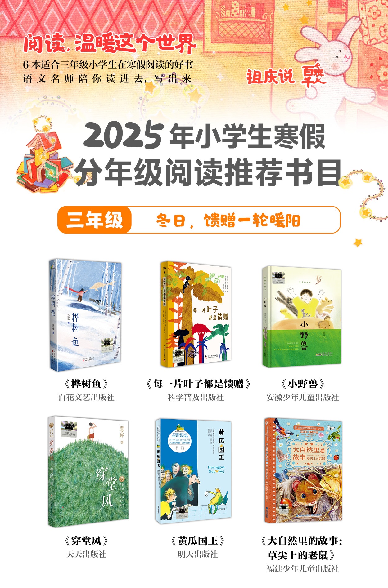 祖庆说|百班千人2025寒假书单三年级:桦树鱼 每一片叶子都是馈赠生命的院子小野兽 穿堂风 黄瓜国王 大自然里的故事草尖上的老鼠(按需自选加入购物车)