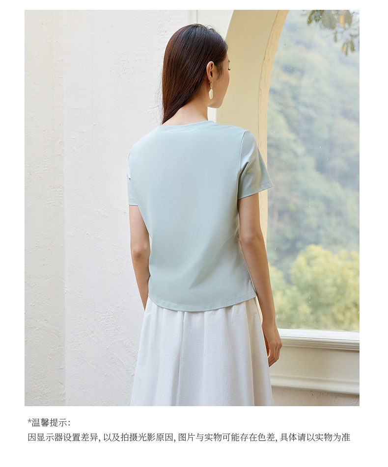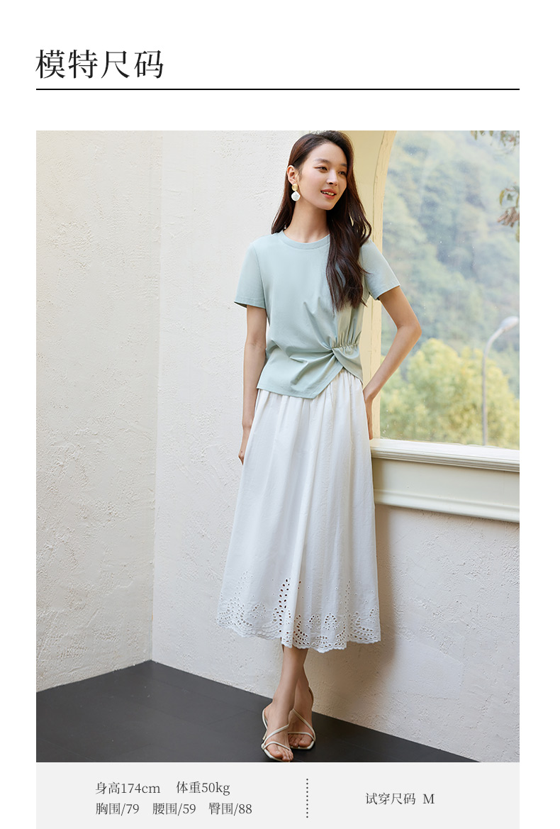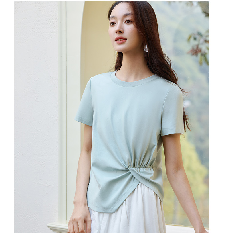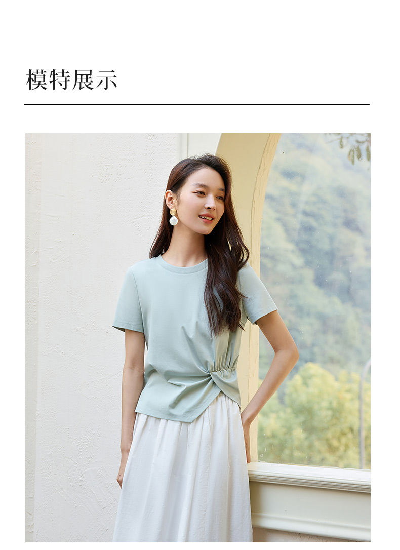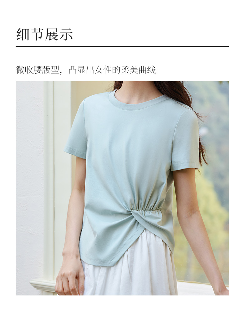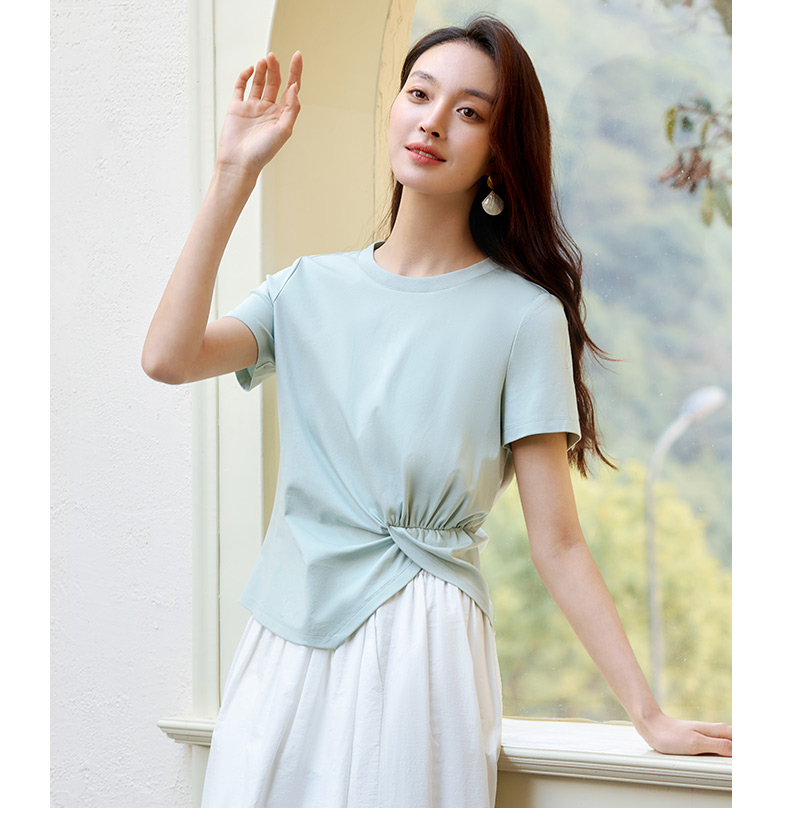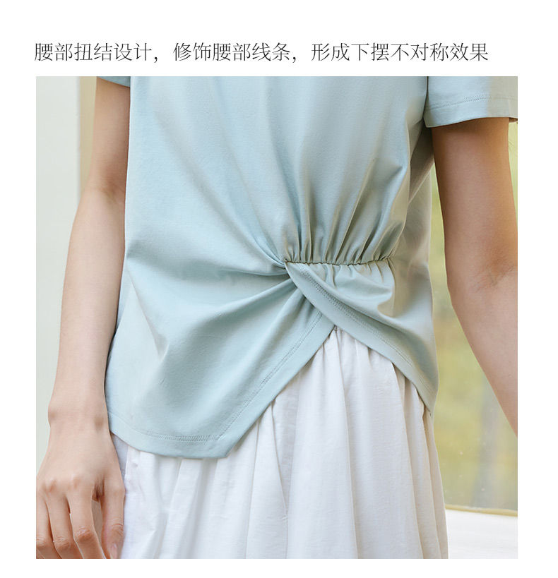 玳莎扭结收腰正肩T恤女2025年夏季新款设计感不规则别致短袖上衣 FB32101