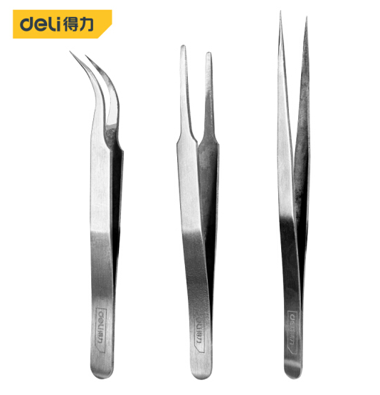 得力DL396003B镊子不锈钢3件套(银)