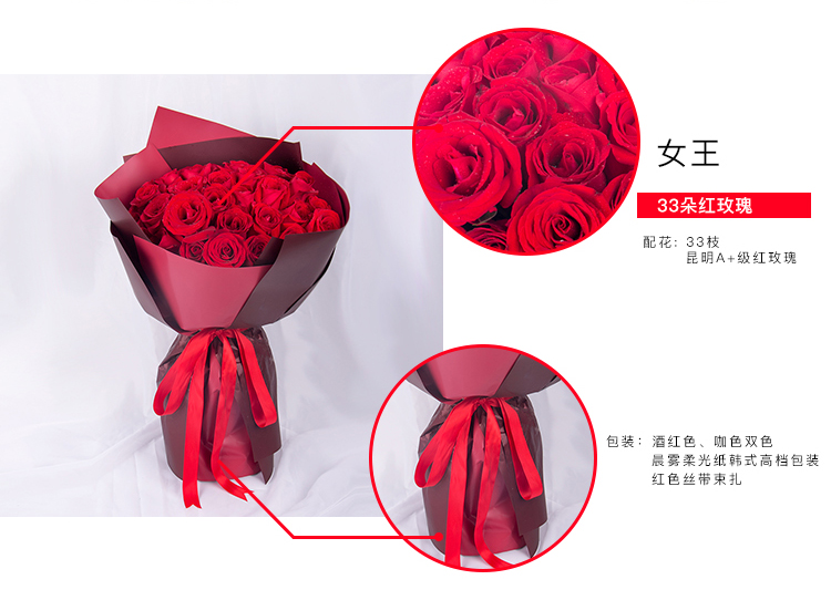 花材:33支红玫瑰。