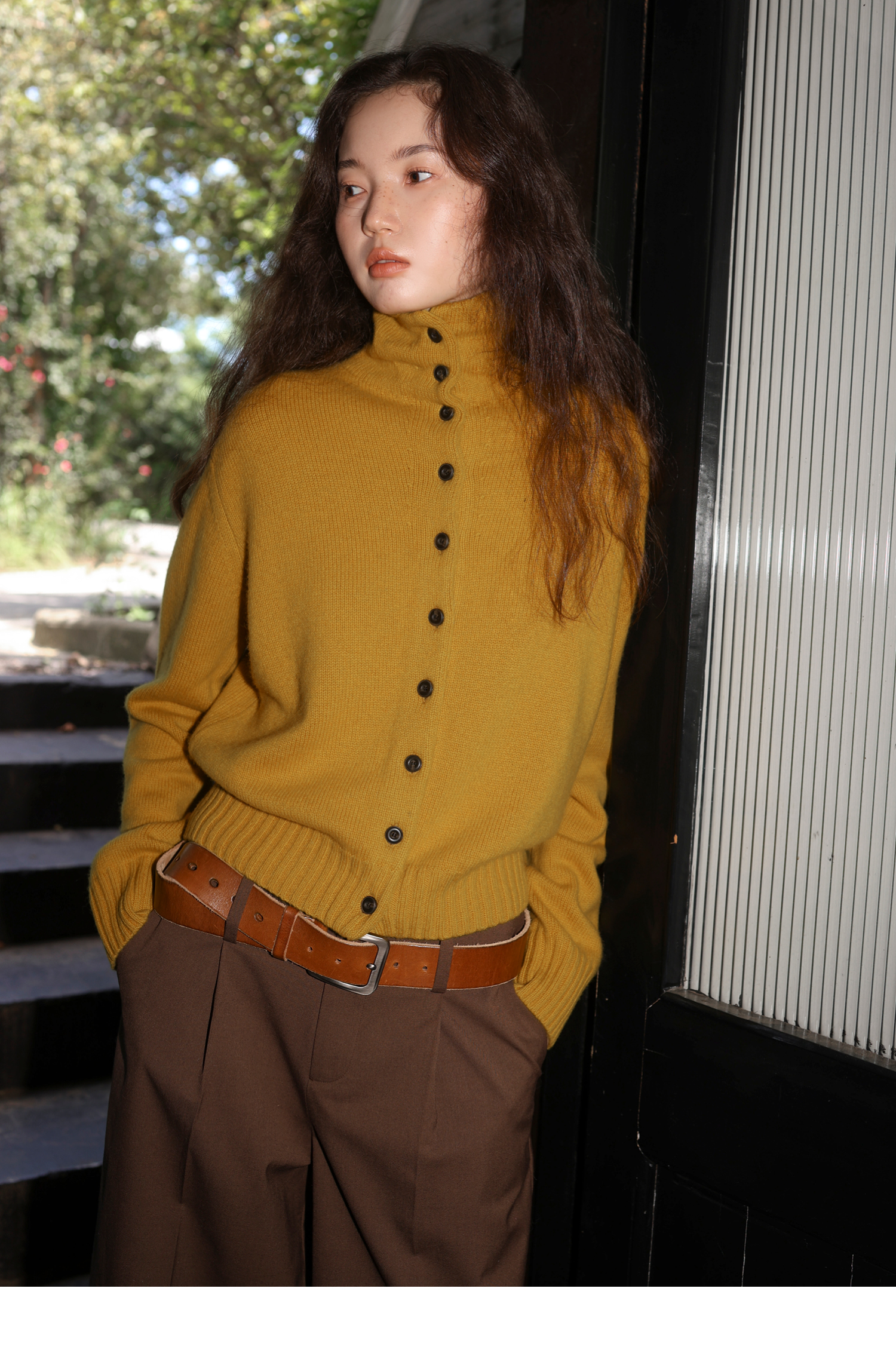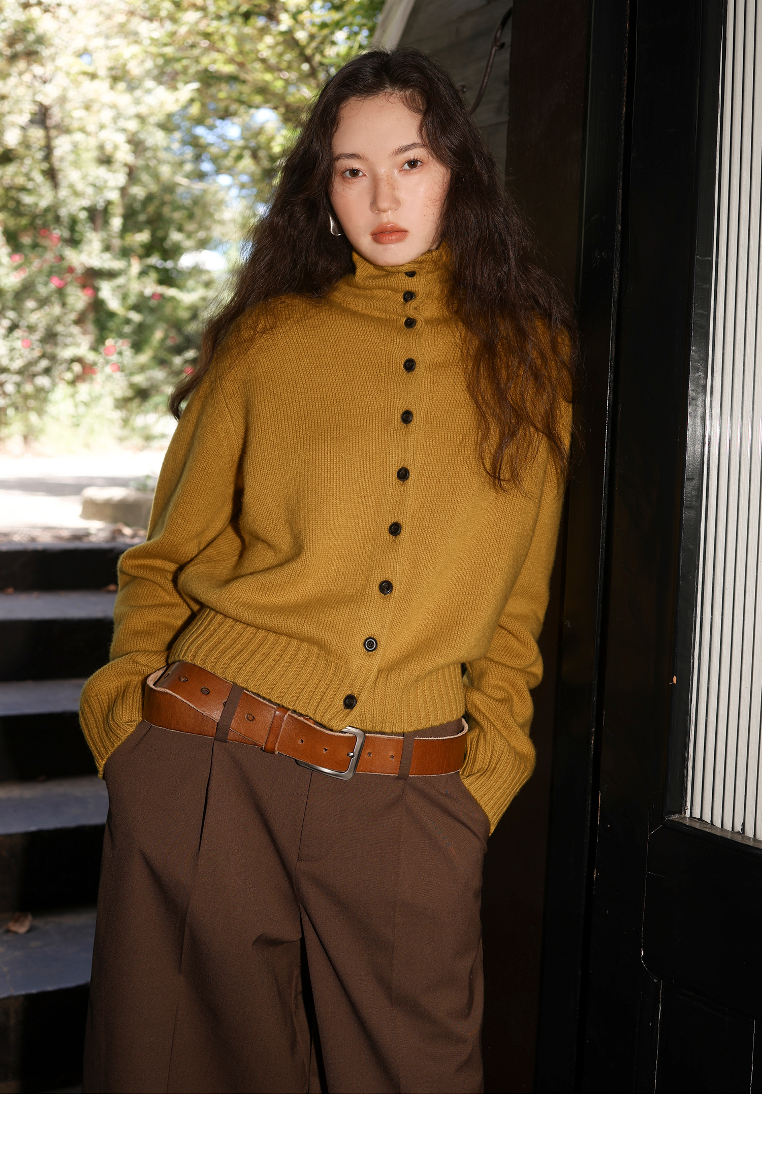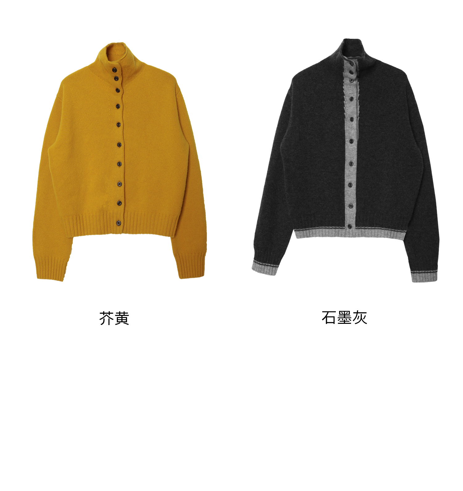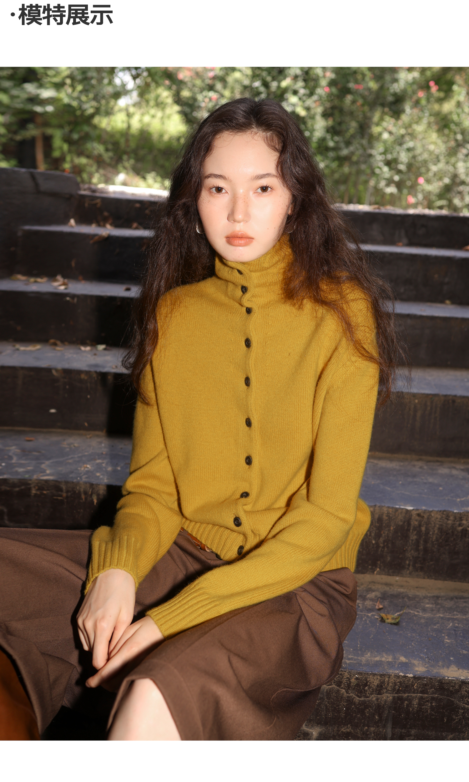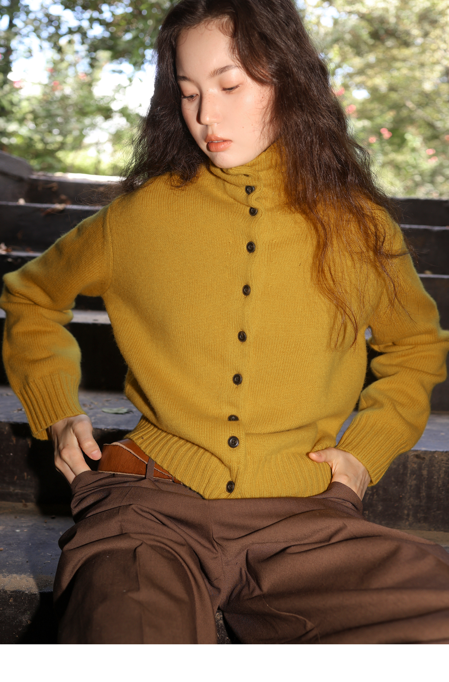素舶 澳洲美丽奴亲肤柔软双门襟多粒扣高领全羊毛针织开衫毛衣