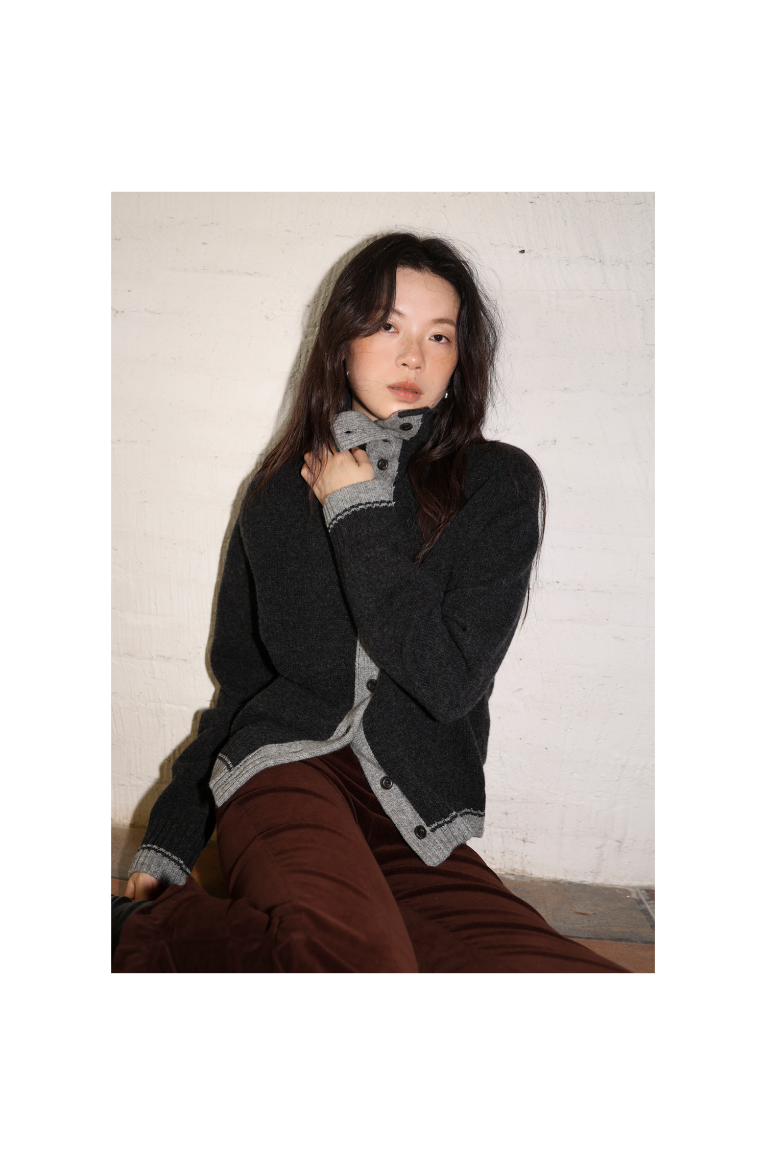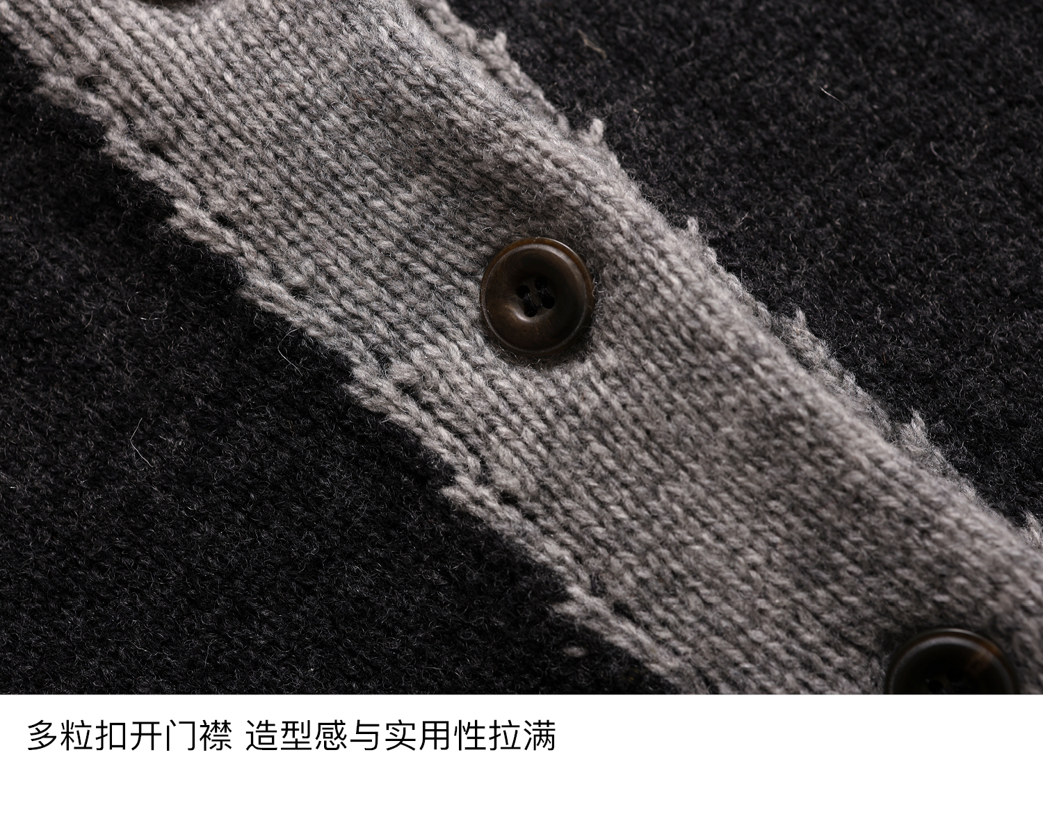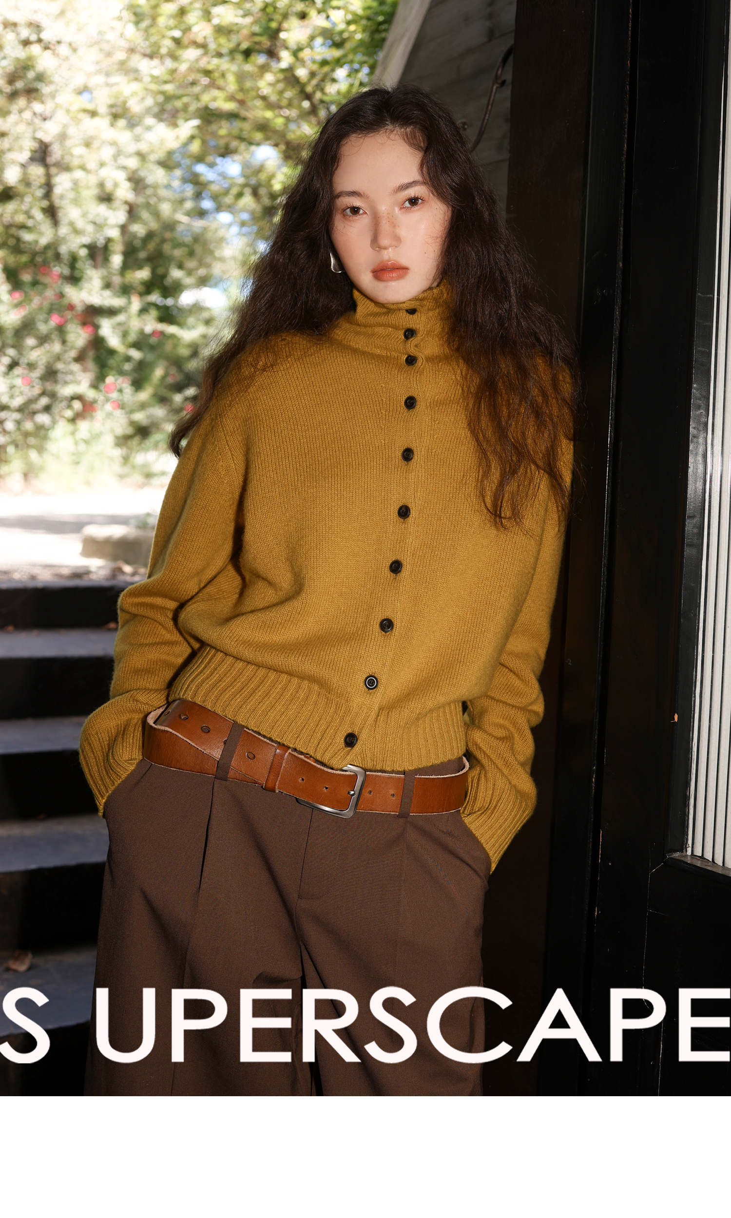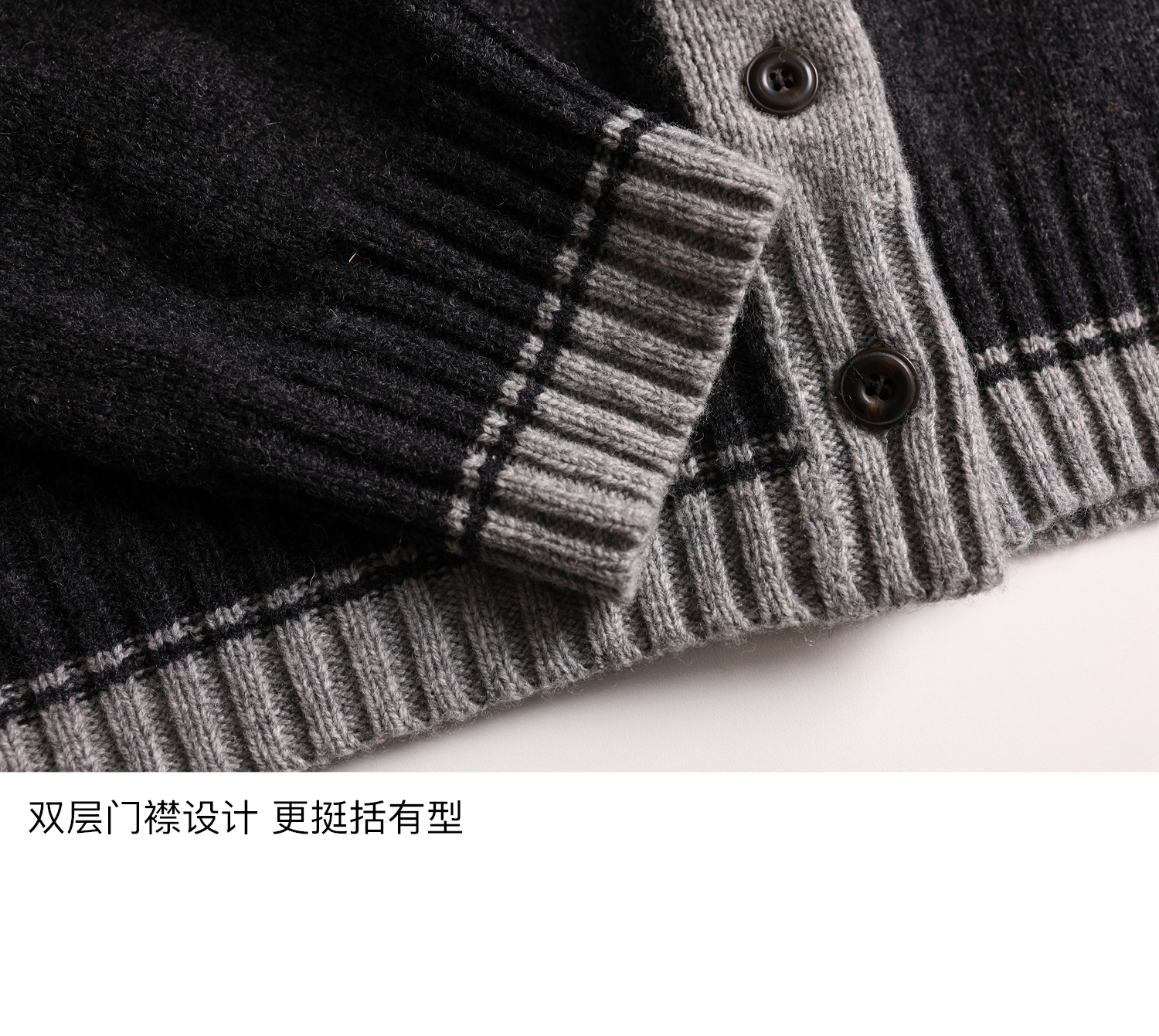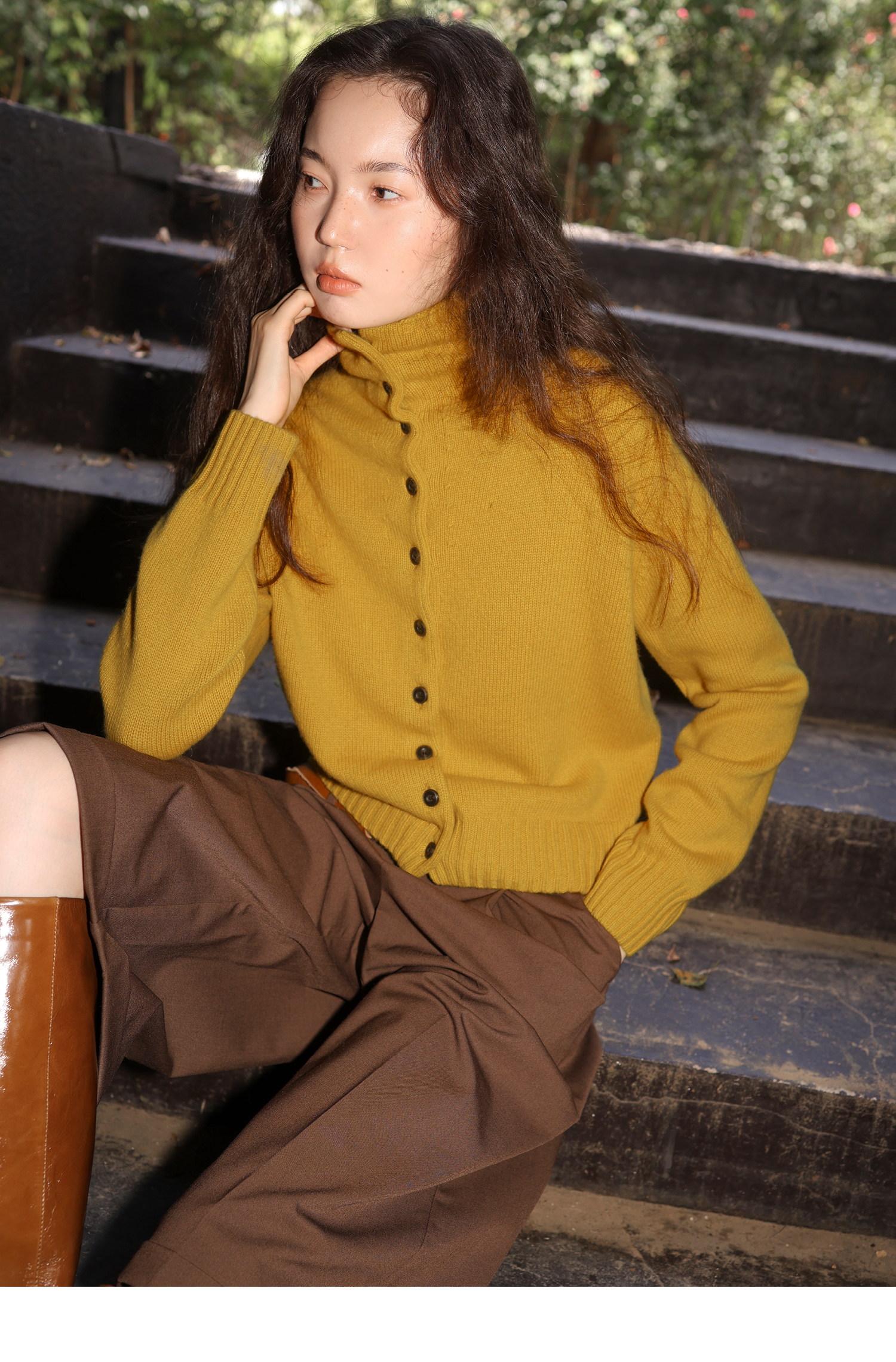 素舶 澳洲美丽奴亲肤柔软双门襟多粒扣高领全羊毛针织开衫毛衣